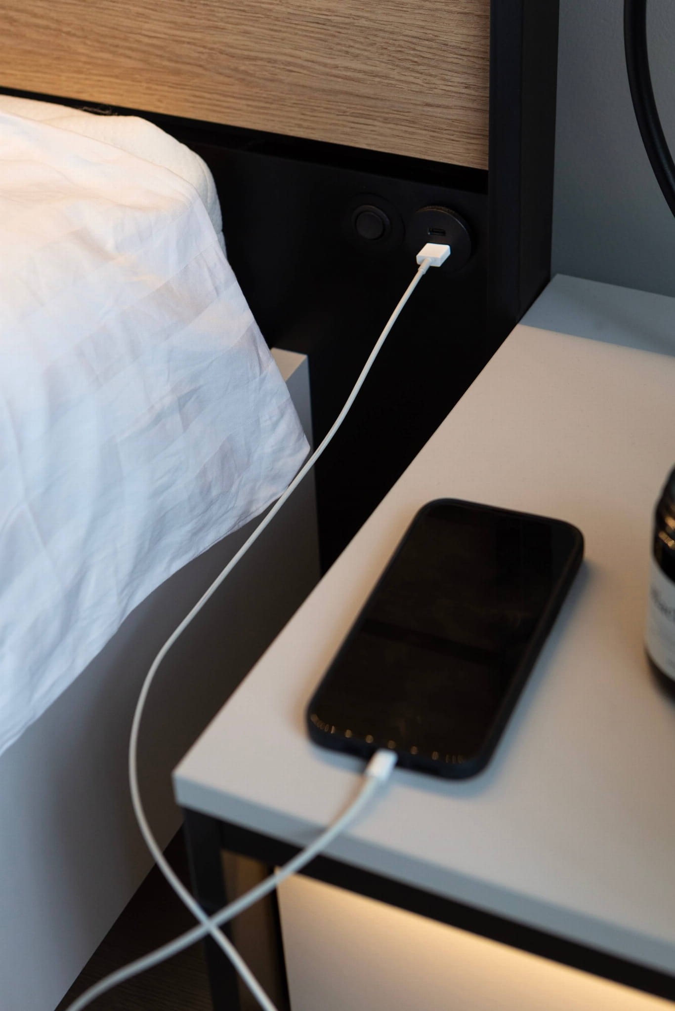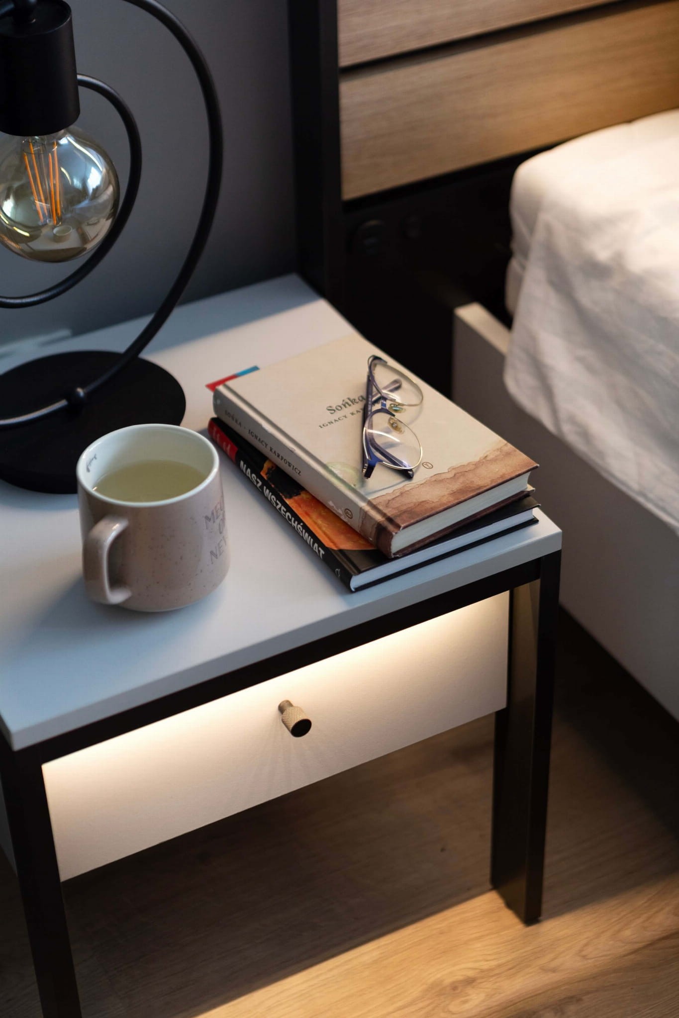 Nowoczesny stolik nocny z szufladą i oświetleniem LED