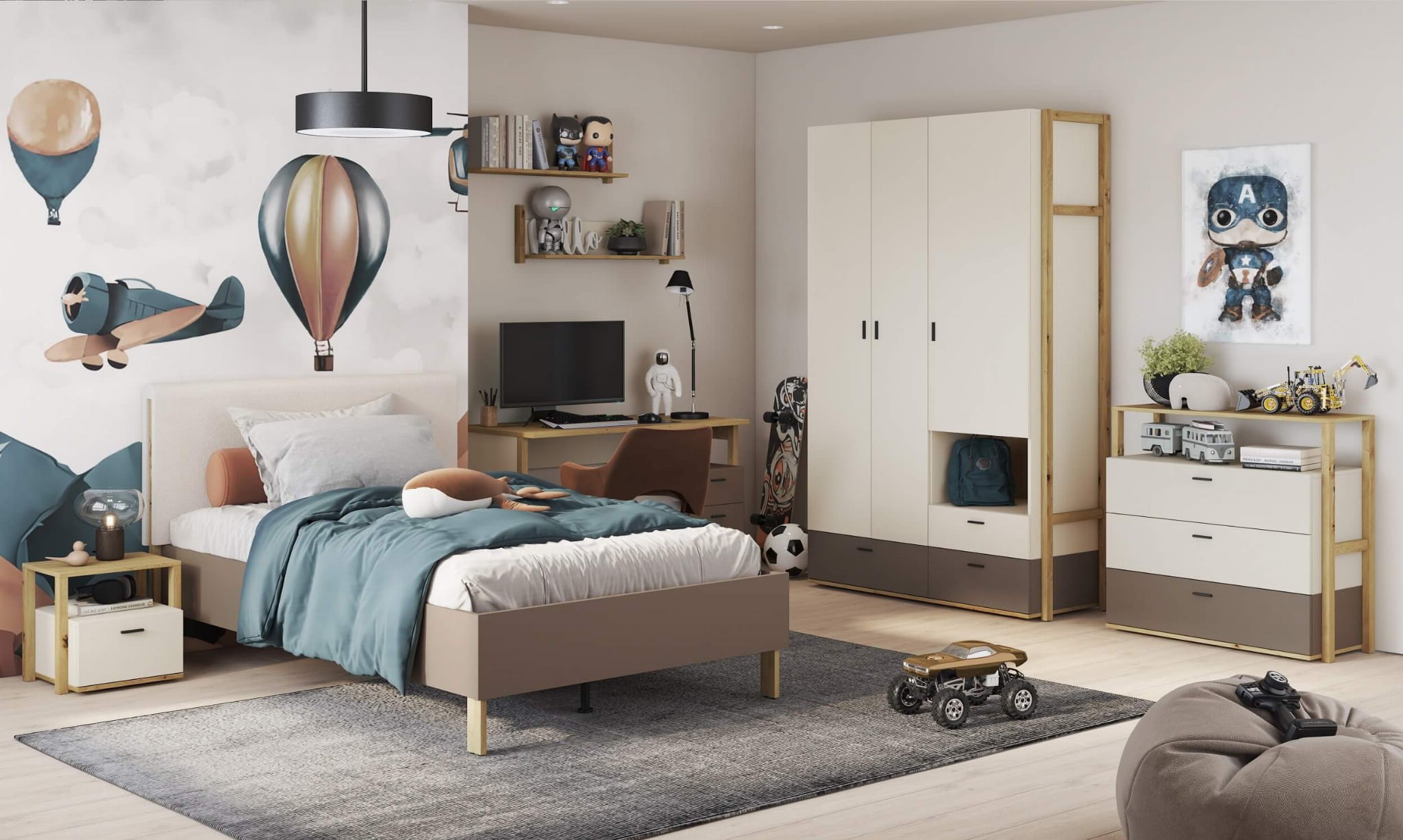 Meble młodzieżowe z kolekcji LENNY to propozycja zarówno do pokoju dziewczynki, jak i chłopca. Magiczne połączenie beżu piaskowego, truflowego i wstawek w odcieniu dąb artisan będzie sprzyjać pobudzeniu wyobraźni, nauce i regeneracji. Jedną z popularnych brył jest szafka nocna z szufladą LY-07, dzięki której odnajdziesz sporo dodatkowego miejsca do przechowywania, zwłaszcza w obrębie łóżka. Spory blat wykorzystasz do ustawienia lampki nocnej, budzika lub szklanki z wodą, a pakowna szufladka będzie świetna na książkę i ulubione drobiazgi pociechy.