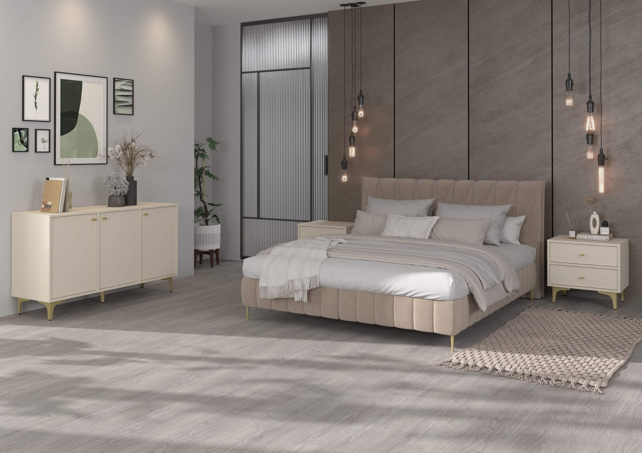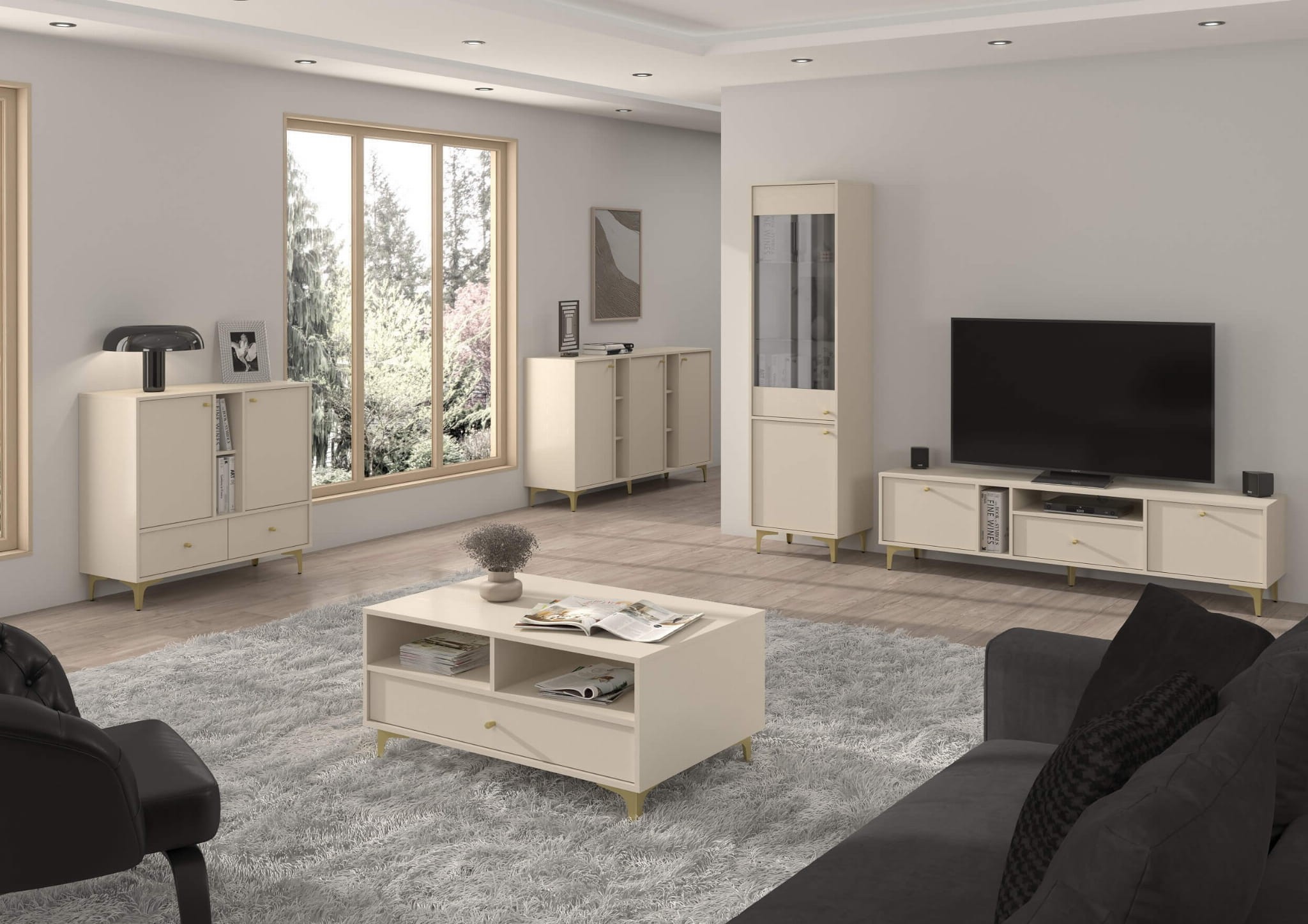 Stolik nocny TOKYO 1 2S | Typ 801 | Beż piaskowy | Złote nogi | SZYBKA WYSYŁKA