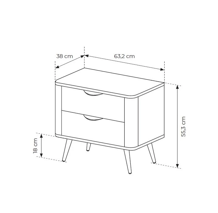 Stolik nocny VERIS w kolorze dąb dunin z czarnymi akcentami to idealne połączenie funkcjonalności i nowoczesnego designu, które wprowadzi do Twojej sypialni elegancję oraz wygodę na co dzień. Solidny korpus wykonany z wysokiej jakości płyty meblowej gwarantuje trwałość i stabilność, a wykończone w dekorze drewnopodobnym fronty nadają mu wyjątkowo stylowy charakter. Dwie pojemne szuflady zapewniają praktyczne miejsce na przechowywanie drobiazgów, które chcesz mieć zawsze pod ręką, a ich płynne i ciche działanie podnosi komfort użytkowania. Całość wspierają stabilne, metalowe nogi malowane proszkowo na czarno, które nie tylko dodają lekkości formie, ale również podkreślają nowoczesny styl mebla. Delikatnie zaokrąglone krawędzie nadają mu subtelnej elegancji, a jednocześnie zwiększają bezpieczeństwo użytkowania. Minimalistyczne, ergonomiczne uchwyty idealnie komponują się z całością, tworząc spójną i estetyczną formę. Harmonijne zestawienie ciepłego odcienia dąb dunin z kontrastującymi czarnymi elementami sprawia, że stolik nocny VERIS doskonale odnajdzie się w różnych aranżacjach – od klasycznych po nowoczesne. To wyjątkowy mebel, który łączy w sobie estetykę i praktyczność, tworząc przytulną i funkcjonalną przestrzeń w Twojej sypialni. Stolik nocny VERIS w kolorze dąb dunin z czarnymi akcentami to idealne połączenie funkcjonalności i nowoczesnego designu, które wprowadzi do Twojej sypialni elegancję oraz wygodę na co dzień. Solidny korpus wykonany z wysokiej jakości płyty meblowej gwarantuje trwałość i stabilność, a wykończone w dekorze drewnopodobnym fronty nadają mu wyjątkowo stylowy charakter. Dwie pojemne szuflady zapewniają praktyczne miejsce na przechowywanie drobiazgów, które chcesz mieć zawsze pod ręką, a ich płynne i ciche działanie podnosi komfort użytkowania. Całość wspierają stabilne, metalowe nogi malowane proszkowo na czarno, które nie tylko dodają lekkości formie, ale również podkreślają nowoczesny styl mebla. Delikatnie zaokrąglone krawędzie nadają mu subtelnej elegancji, a jednocześnie zwiększają bezpieczeństwo użytkowania. Minimalistyczne, ergonomiczne uchwyty idealnie komponują się z całością, tworząc spójną i estetyczną formę. Harmonijne zestawienie ciepłego odcienia dąb dunin z kontrastującymi czarnymi elementami sprawia, że stolik nocny VERIS doskonale odnajdzie się w różnych aranżacjach – od klasycznych po nowoczesne. To wyjątkowy mebel, który łączy w sobie estetykę i praktyczność, tworząc przytulną i funkcjonalną przestrzeń w Twojej sypialni.