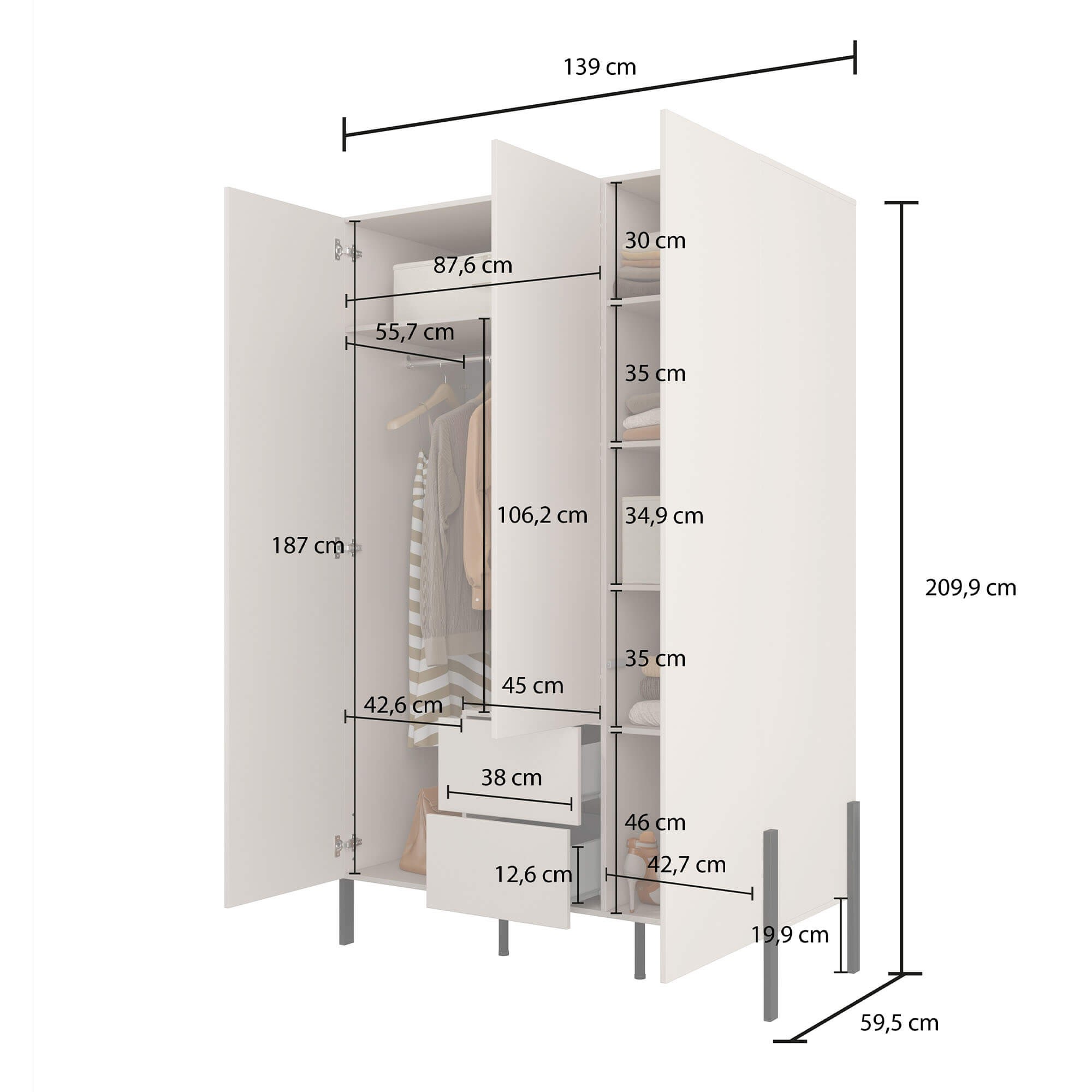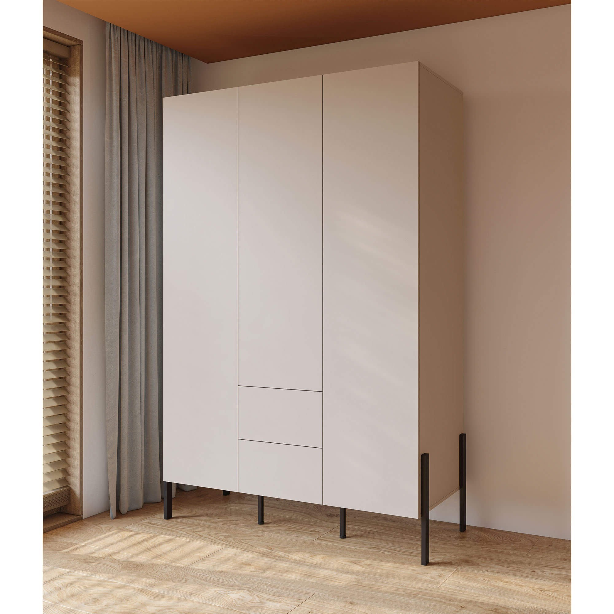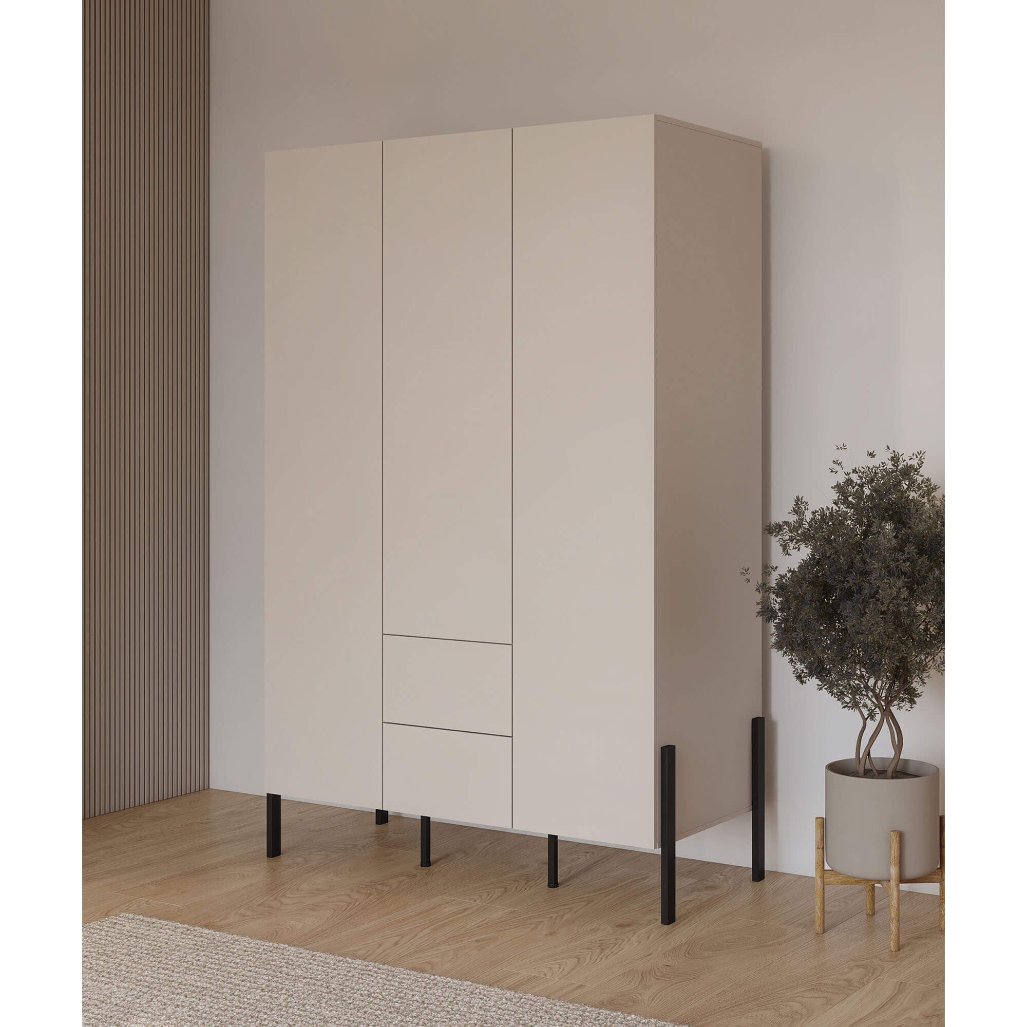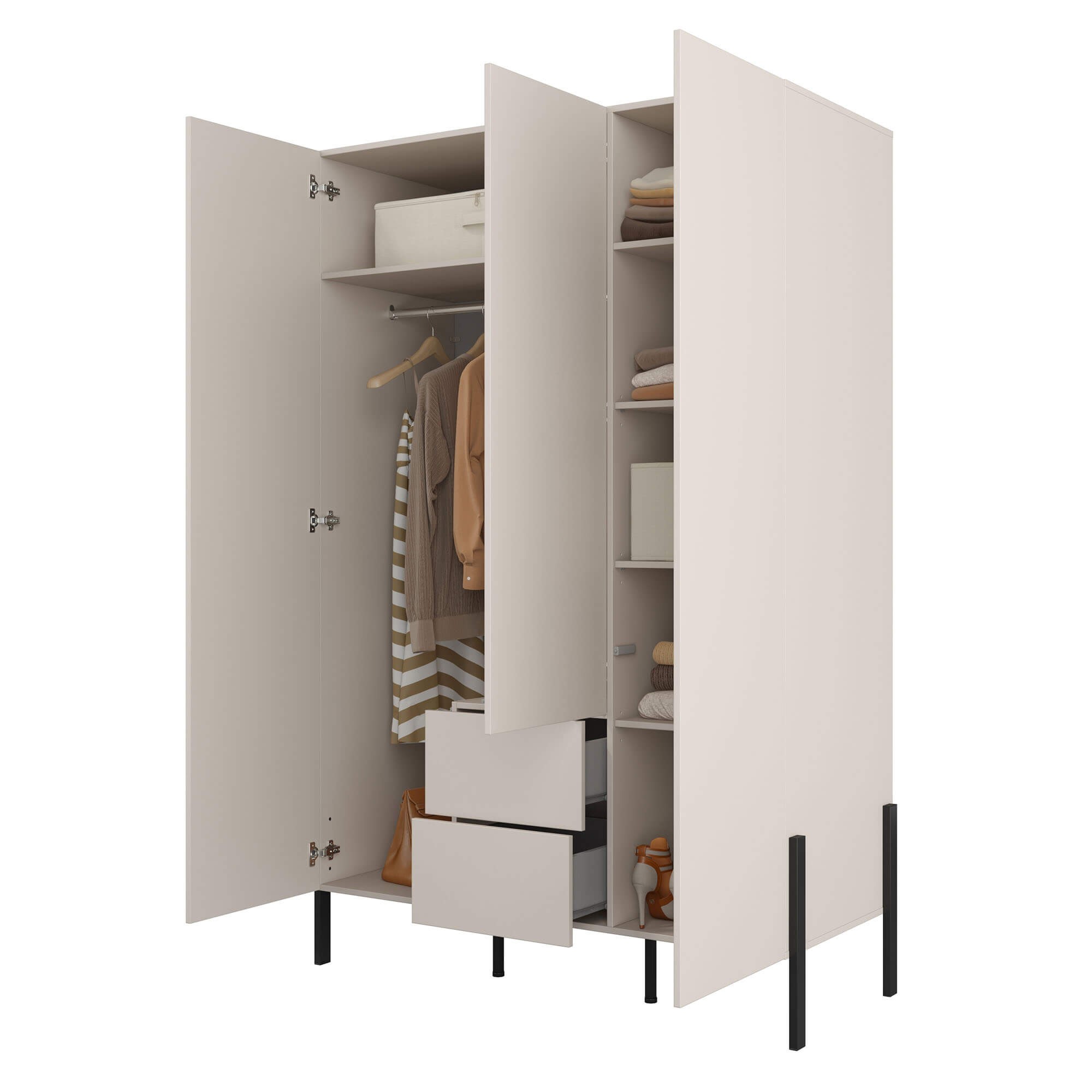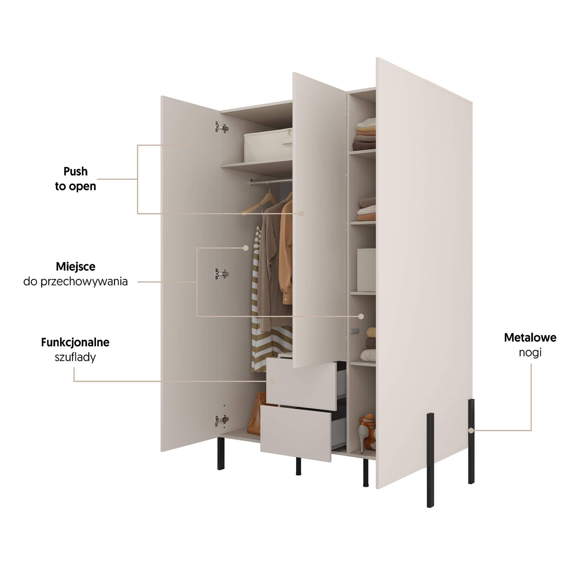 • Szafa stoi na metalowych nogach w kolorze czarnym.