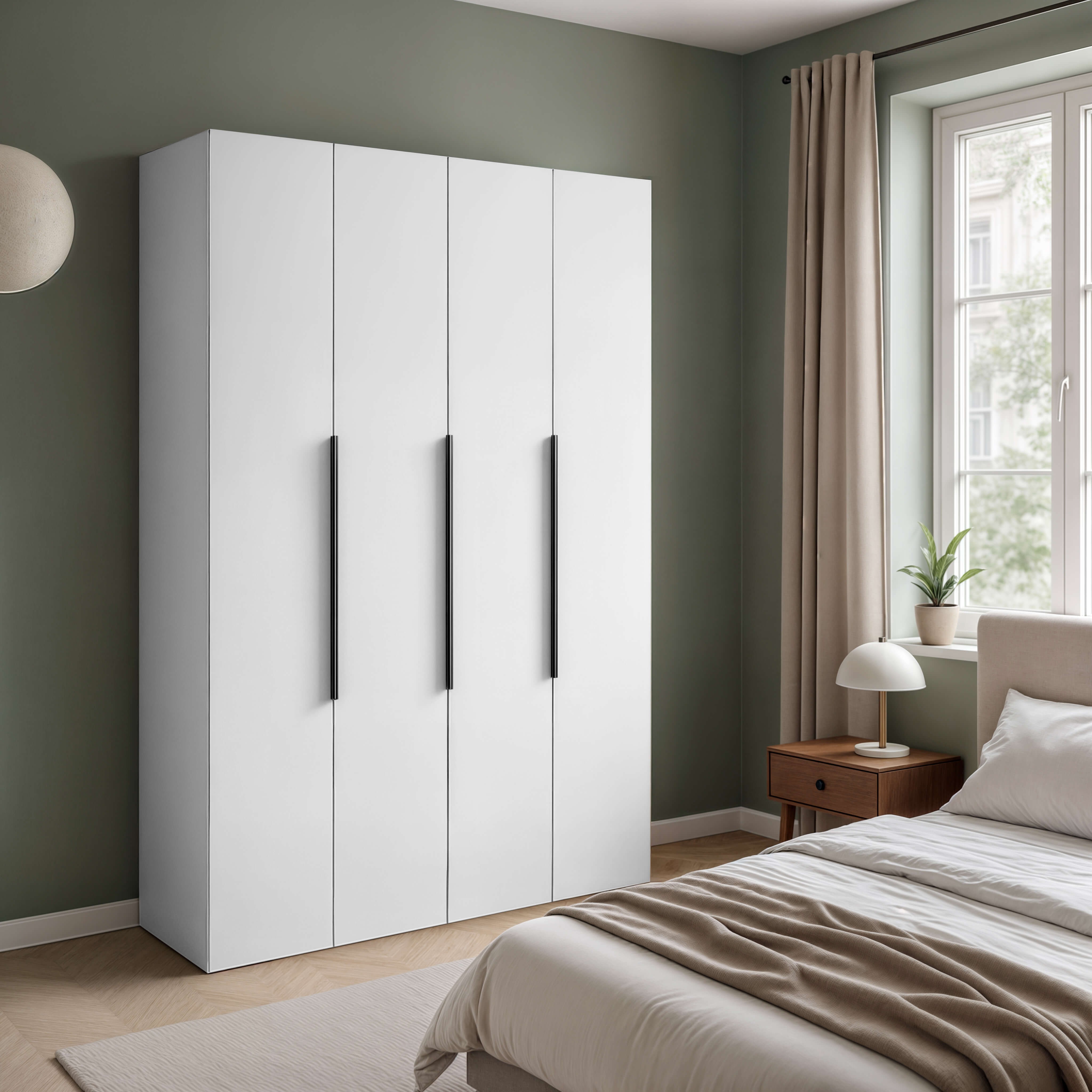 Szafa NICEA 160 to wyjątkowe połączenie prostoty, elegancji i funkcjonalności, które doskonale odpowiada na potrzeby współczesnych wnętrz. Jej nowoczesna forma przyciąga wzrok subtelnym minimalizmem, a gładkie, matowe fronty w śnieżnobiałym kolorze wprowadzają do pomieszczenia lekkość i harmonię. Całość dopełniają smukłe, pionowe uchwyty w kontrastującej czerni, które podkreślają geometryczną linię mebla i stanowią elegancki akcent stylistyczny. Wnętrze szafy zostało zaprojektowane z myślą o maksymalnej wygodzie użytkowania i przemyślanej organizacji. Symetryczny układ czterech skrzydeł drzwiowych skrywa przestronny układ półek i drążek na ubrania, co pozwala z łatwością przechować zarówno odzież wiszącą, jak i złożone elementy garderoby. Górne wnęki świetnie sprawdzają się do przechowywania pudełek lub rzadziej używanych przedmiotów, natomiast dolne przestrzenie można wykorzystać na obuwie, torby czy inne większe akcesoria. Dzięki swojej prostej, a zarazem wyrazistej formie, szafa NICEA 160 doskonale komponuje się z nowoczesnymi aranżacjami sypialni czy garderoby, a jej uniwersalna kolorystyka sprawia, że łatwo dopasować ją do różnych stylów wnętrzarskich. Wykonana z trwałych materiałów, zapewnia nie tylko estetykę, ale i solidność na lata. To idealny wybór dla osób, które szukają praktycznego i stylowego mebla do przechowywania, który łączy w sobie design, wygodę i wysoką jakość wykonania.