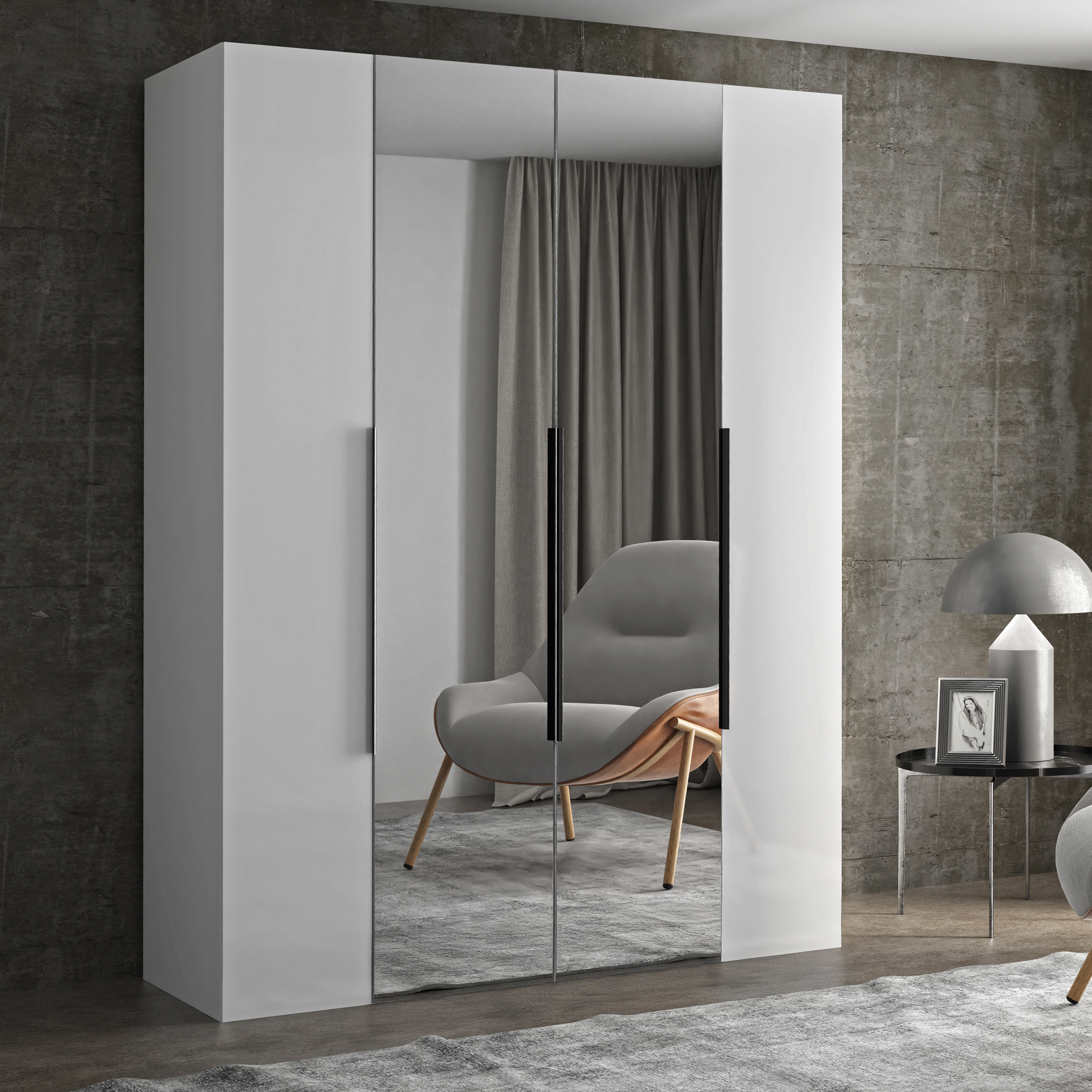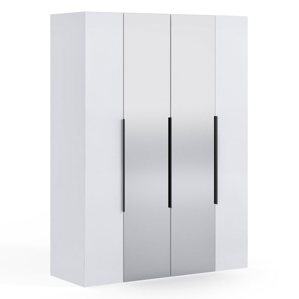 Szafa NICEA 180 z lustrem w kolorze białym to nowoczesny i funkcjonalny mebel, który doskonale odnajdzie się w przestrzeni każdej sypialni, garderoby czy przedpokoju. Jej minimalistyczna forma została zaprojektowana z myślą o maksymalnej wygodzie użytkowania oraz estetyce, która podkreśla styl wnętrza i wprowadza do niego wizualny ład. Lustrzane fronty umieszczone na centralnych drzwiach nie tylko pełnią funkcję praktyczną, ale także optycznie powiększają przestrzeń i dodają pomieszczeniu elegancji oraz światła. To idealne rozwiązanie do wnętrz, w których liczy się lekkość formy i nowoczesny charakter. Model NICEA 180 oferuje pojemne wnętrze, które pomieści całą garderobę – od odzieży codziennej po sezonowe dodatki. Cztery skrzydła drzwiowe gwarantują swobodny dostęp do zawartości, a starannie zaplanowany układ wewnętrzny pozwala na przechowywanie rzeczy w uporządkowany sposób. Wykończenie w matowej bieli sprawia, że szafa harmonizuje z każdym kolorem ścian i dodatków, tworząc spójną i elegancką aranżację. Czarne, pionowe uchwyty dodają wyrazistości i nowoczesnego sznytu, znakomicie kontrastując z jasną powierzchnią. Wykonana z trwałych i odpornych na codzienne użytkowanie materiałów, szafa NICEA 180 z lustrem to mebel, który łączy trwałość z ponadczasowym wyglądem. Jeżeli szukasz białej szafy z lustrem, która będzie jednocześnie stylowa, pojemna i wygodna w użytkowaniu – ten model spełni wszystkie Twoje oczekiwania. To praktyczny wybór, który wpisuje się w aktualne trendy wnętrzarskie i zapewnia komfort na lata.