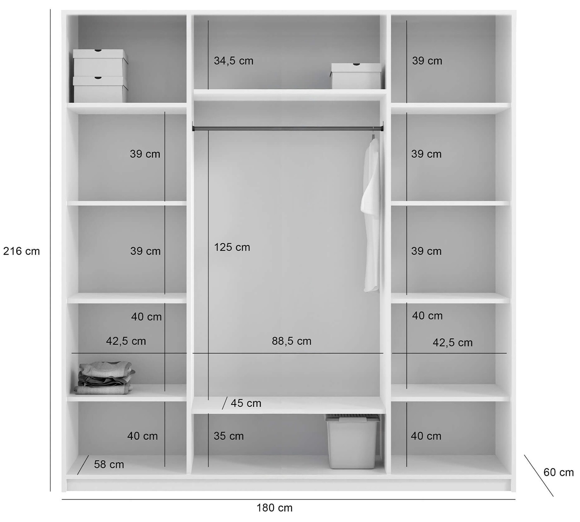 Szafa NICEA z lustrem | 180 | Biały