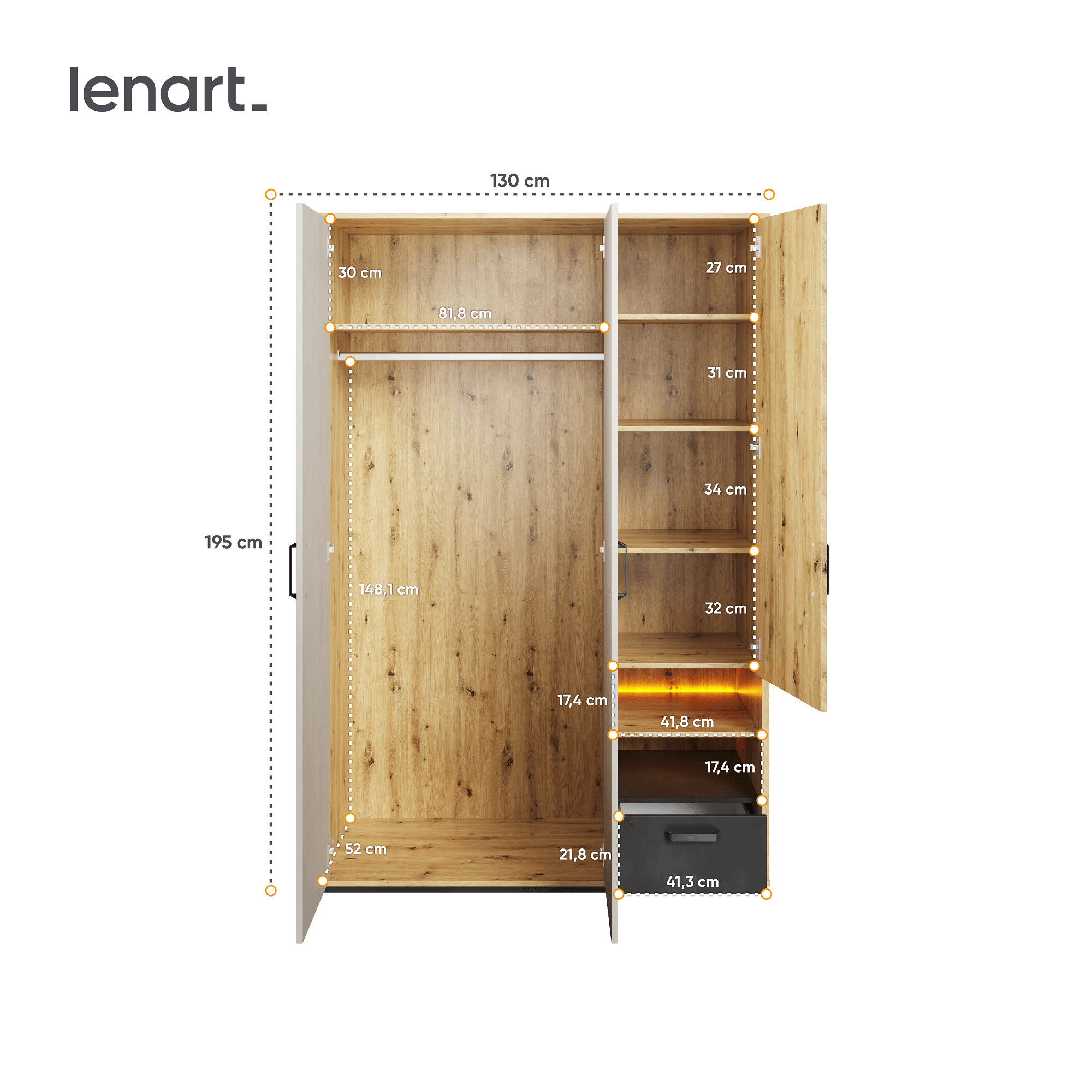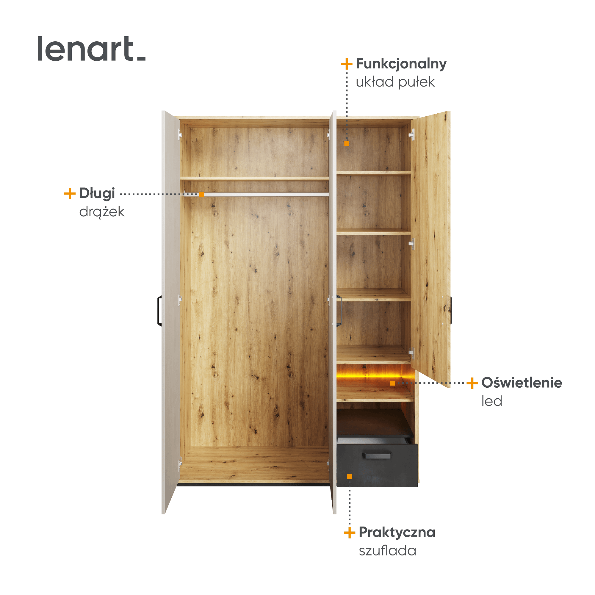 | Kolor: | dąb artisan / silk flou / raw steel |