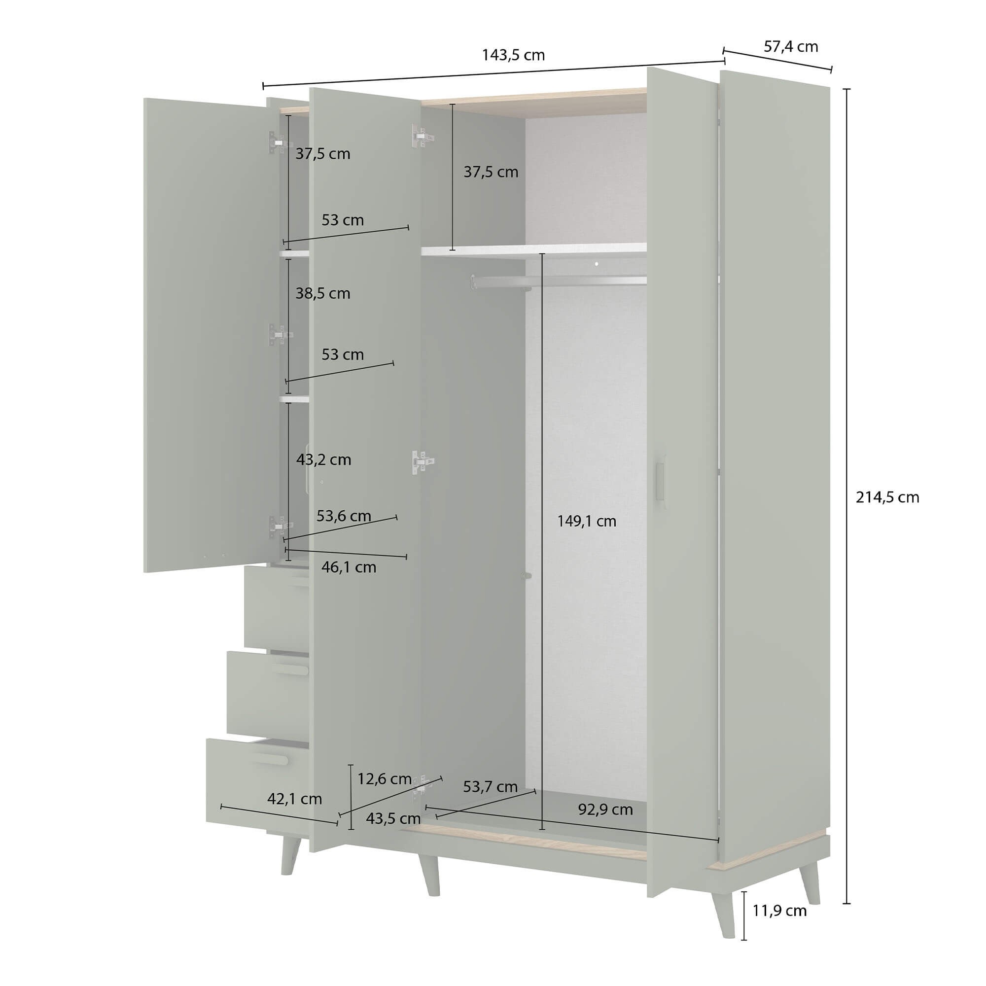Model: Szafa trzydrzwiowa z trzema szufladami SCANDI 24D5OH19