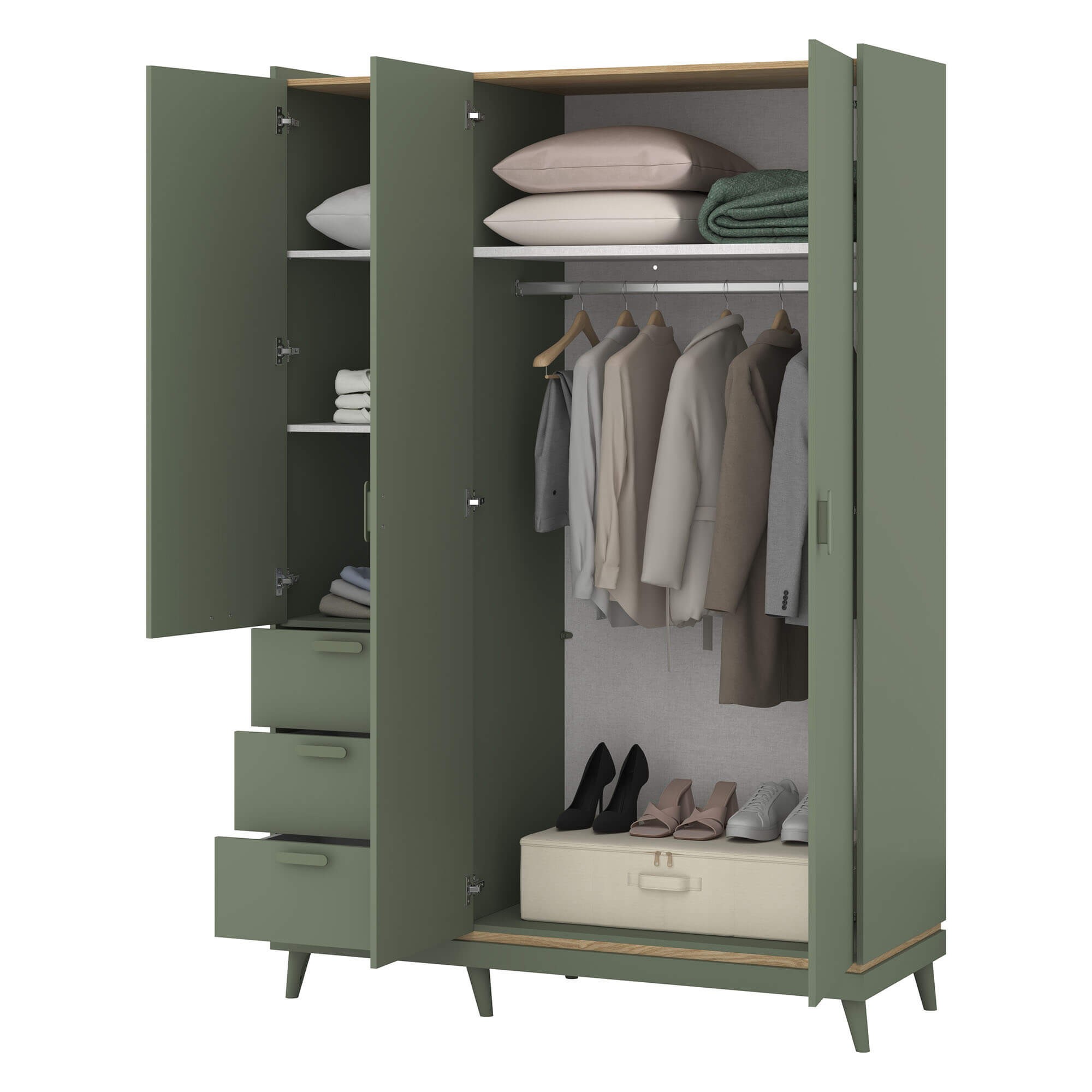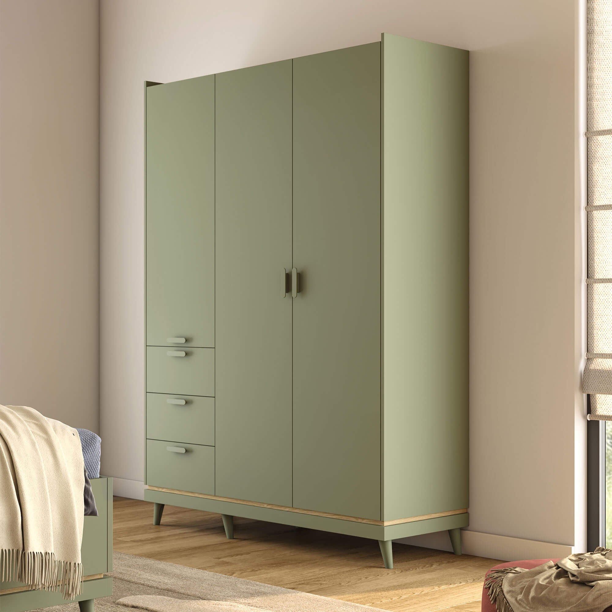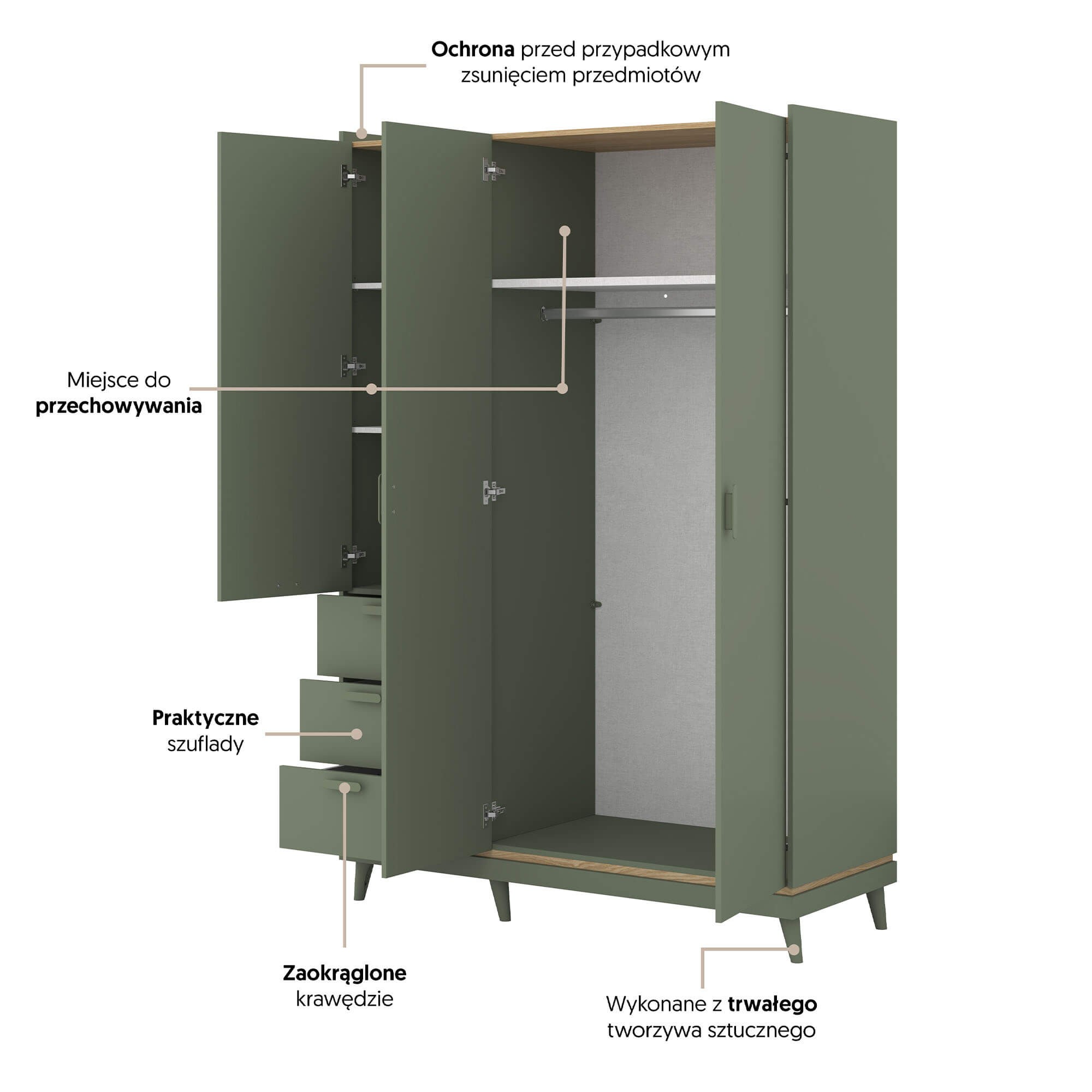 Szafa SCANDI 3D3S | Zgaszona zieleń-dąb olejowany