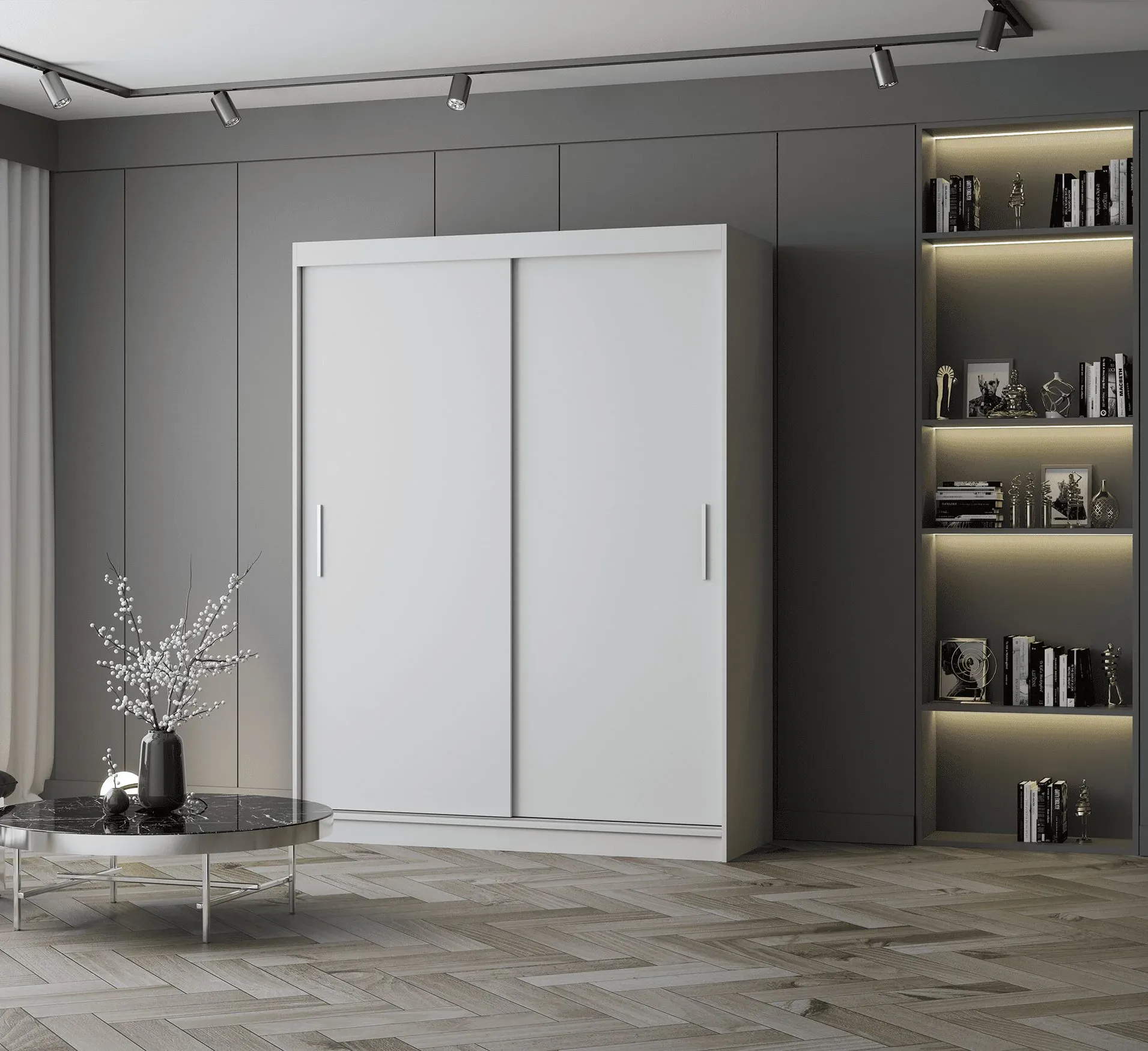 Szafa VISTA 04 o szerokości 150 cm w kolorze białym to idealne połączenie prostoty, funkcjonalności i elegancji. Jej uniwersalny wygląd sprawia, że pasuje do każdego wnętrza — od nowoczesnych aranżacji po klasyczne przestrzenie. Biała powierzchnia nadaje wnętrzu świeżości, optycznie je powiększa i wprowadza wrażenie porządku. System drzwi przesuwnych zapewnia komfort użytkowania oraz pozwala zaoszczędzić miejsce, dlatego szafa doskonale sprawdzi się zarówno w sypialni, jak i w garderobie czy pokoju młodzieżowym. Wewnątrz znajduje się funkcjonalny układ — drążek na wieszaki po jednej stronie oraz pięć pojemnych półek po drugiej, co pozwala na wygodne rozmieszczenie odzieży i akcesoriów. Solidna płyta laminowana o grubości 16 mm gwarantuje trwałość i odporność na codzienne użytkowanie, a obrzeża zabezpieczone okleiną ABS chronią mebel przed uszkodzeniami. Srebrne uchwyty PCV dodają całości subtelnej elegancji i nowoczesnego charakteru. Szafa VISTA 04 to mebel, który łączy estetykę z praktycznością. Można ją dodatkowo wyposażyć w kontenerek z trzema szufladami, co zwiększa przestrzeń do przechowywania i podnosi komfort użytkowania.