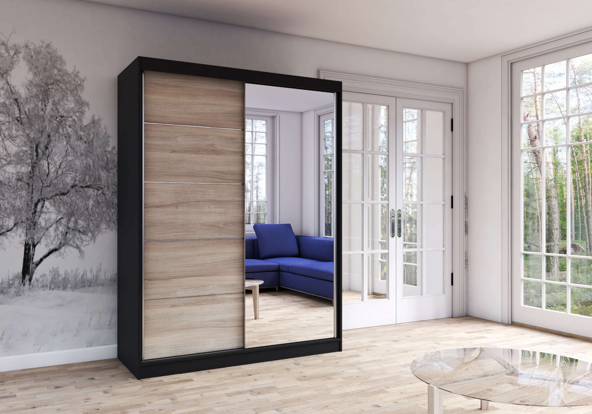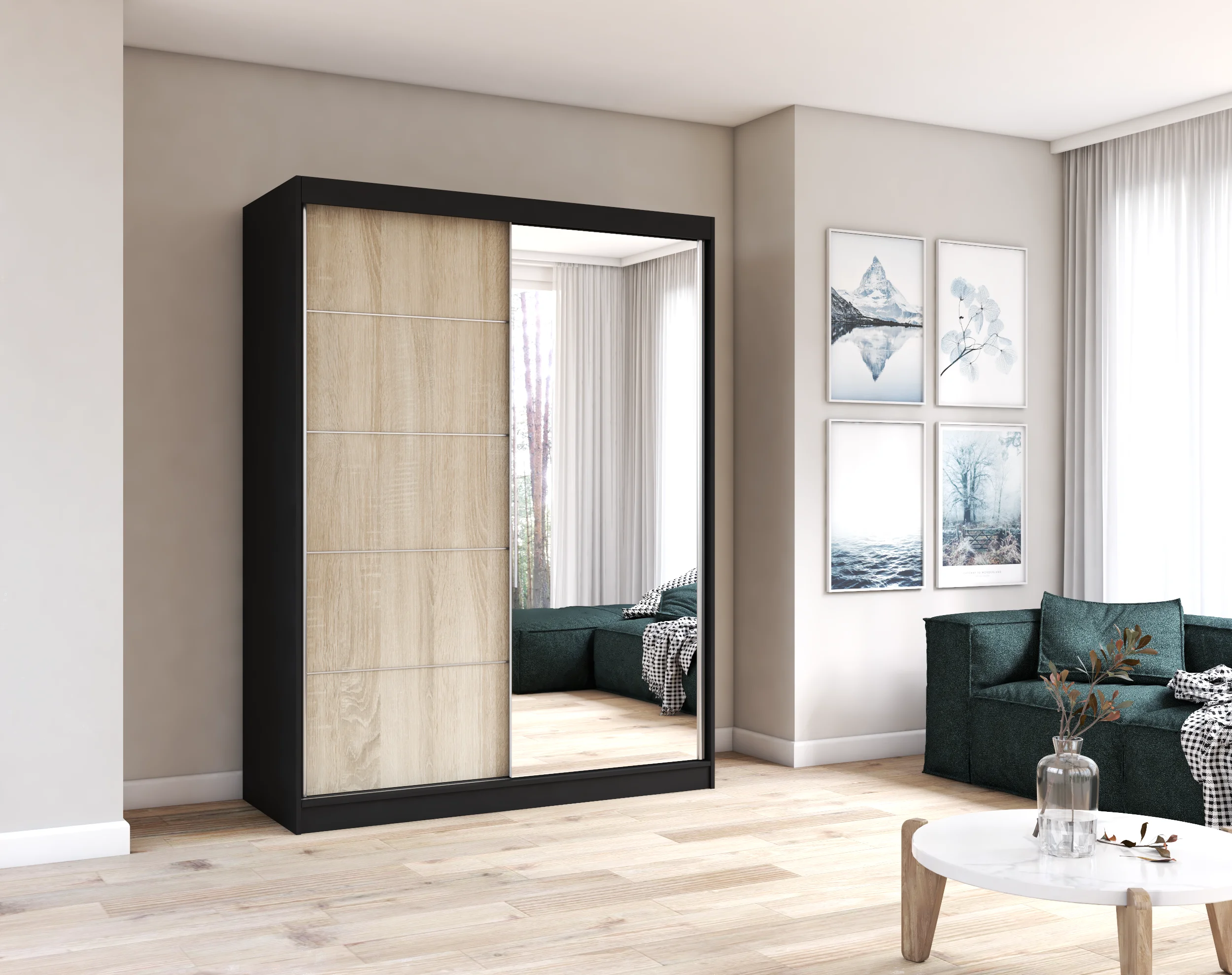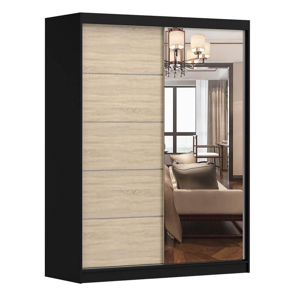Szafa VISTA 05 | 150| Czarny, Dąb sonoma z lustrem
