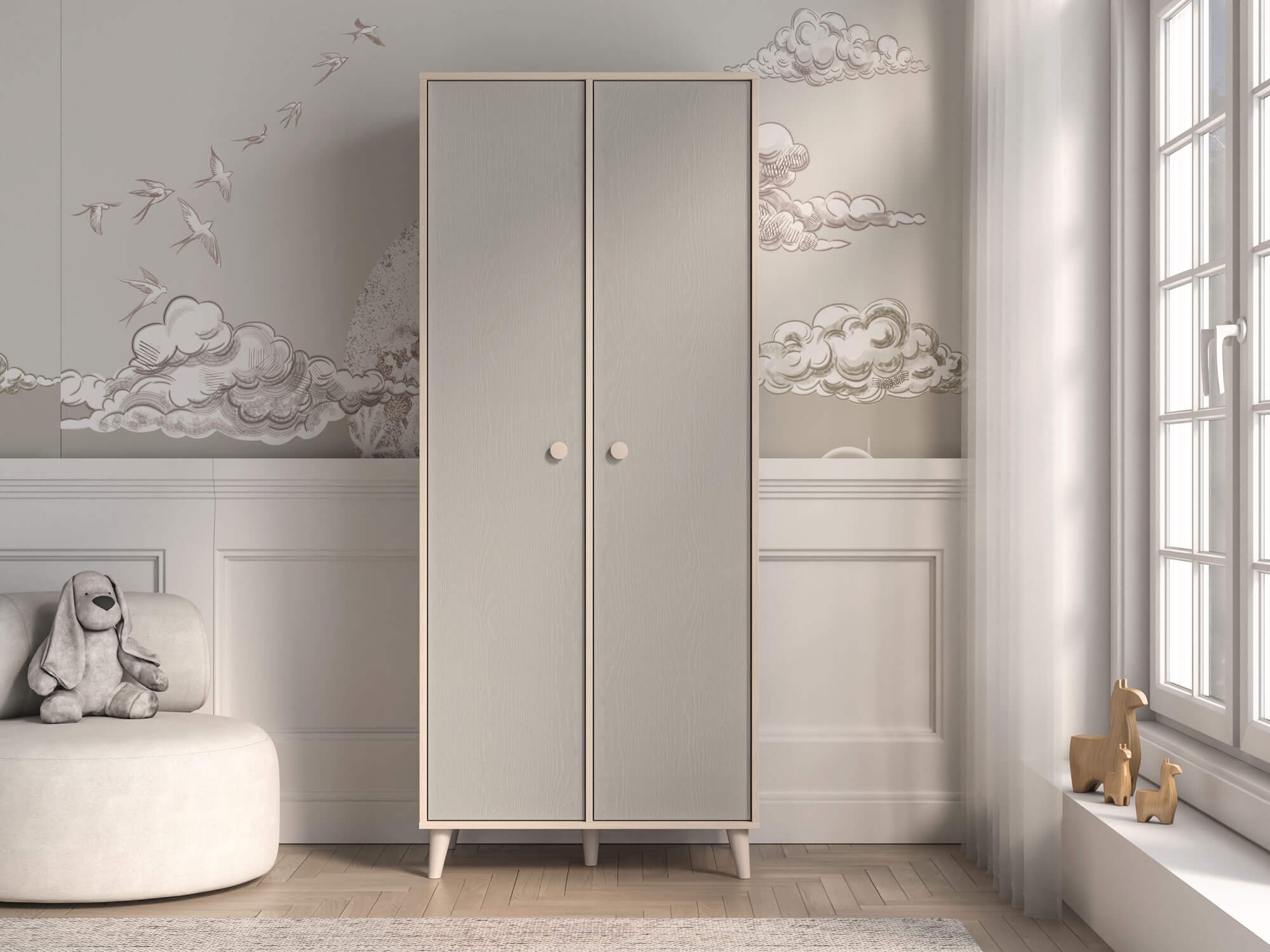 Szafa dwudrzwiowa młodzieżowa MEVEL 02 | 80cm | Szary, piaskowy beż | SZYBKA WYSYŁKA