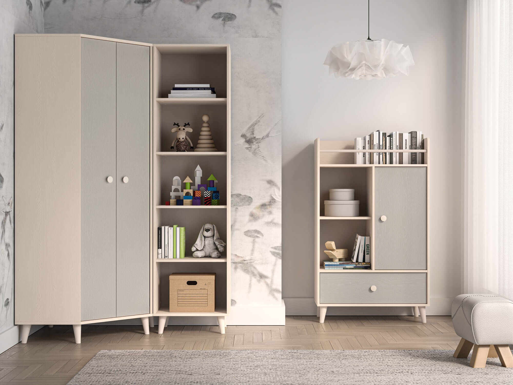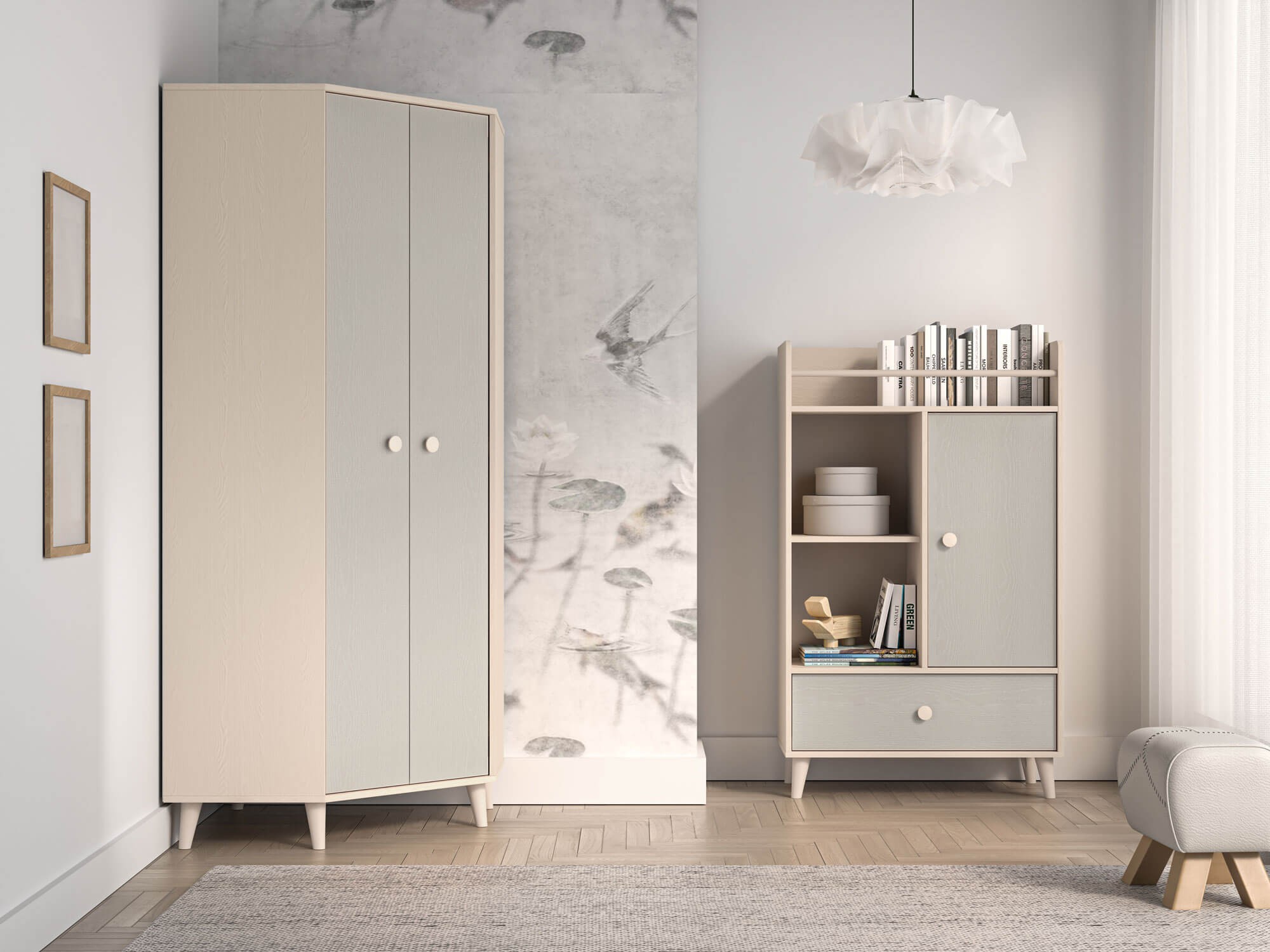 Szafa narożna młodzieżowa MEVEL 01 | Szary, piaskowy beż