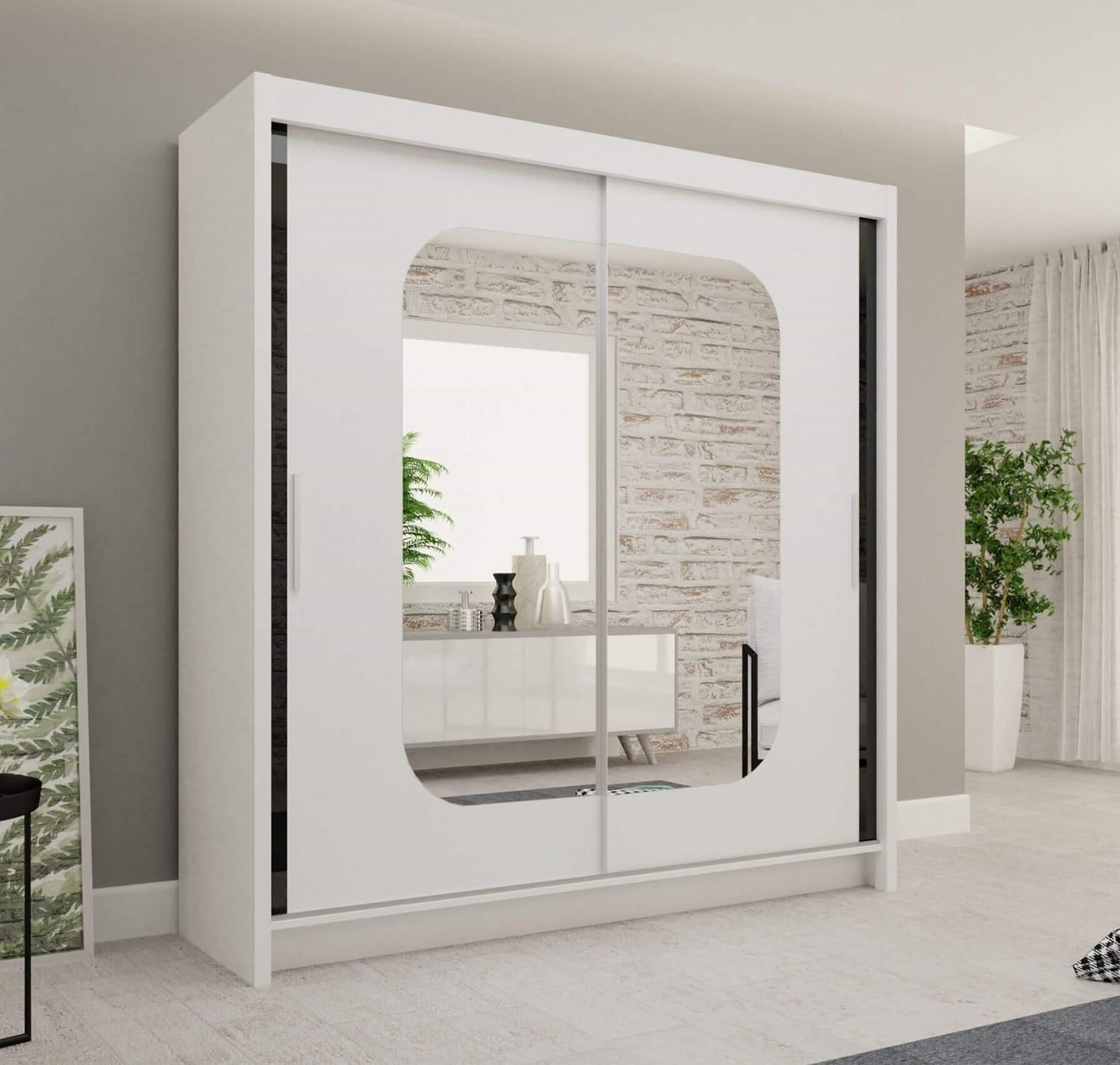 Elegancka, oryginalnie wykonana szafa przesuwna MARIKA to mebel, w którym uporządkujesz wszystkie swoje ubrania, a jednocześnie doda elegancji i szyku aranżacji. Wykonanie z wysokiej jakości materiałów, przepiękne wybarwienie w wielu opcjach kolorystycznych i dekoracyjne wstawki z czarnego szkła lacobel to jej największe atuty. Przemyślana konstrukcja i optymalny rozmiar 150 cm sprawdzą się w niejednym wnętrzu. Lustro na froncie jest świetną opcją, by dodatkowo wizualnie powiększyć wnętrze i mieć miejsce do skontrolowania wyglądu. Przesuwne drzwi nie będą kolidować z pozostałym wyposażaniem, a także prezentują się lekko i nowocześnie. Smukłe uchwyty ułatwią otwieranie szafy i zapobiegną pozostawianiu zabrudzeń.
