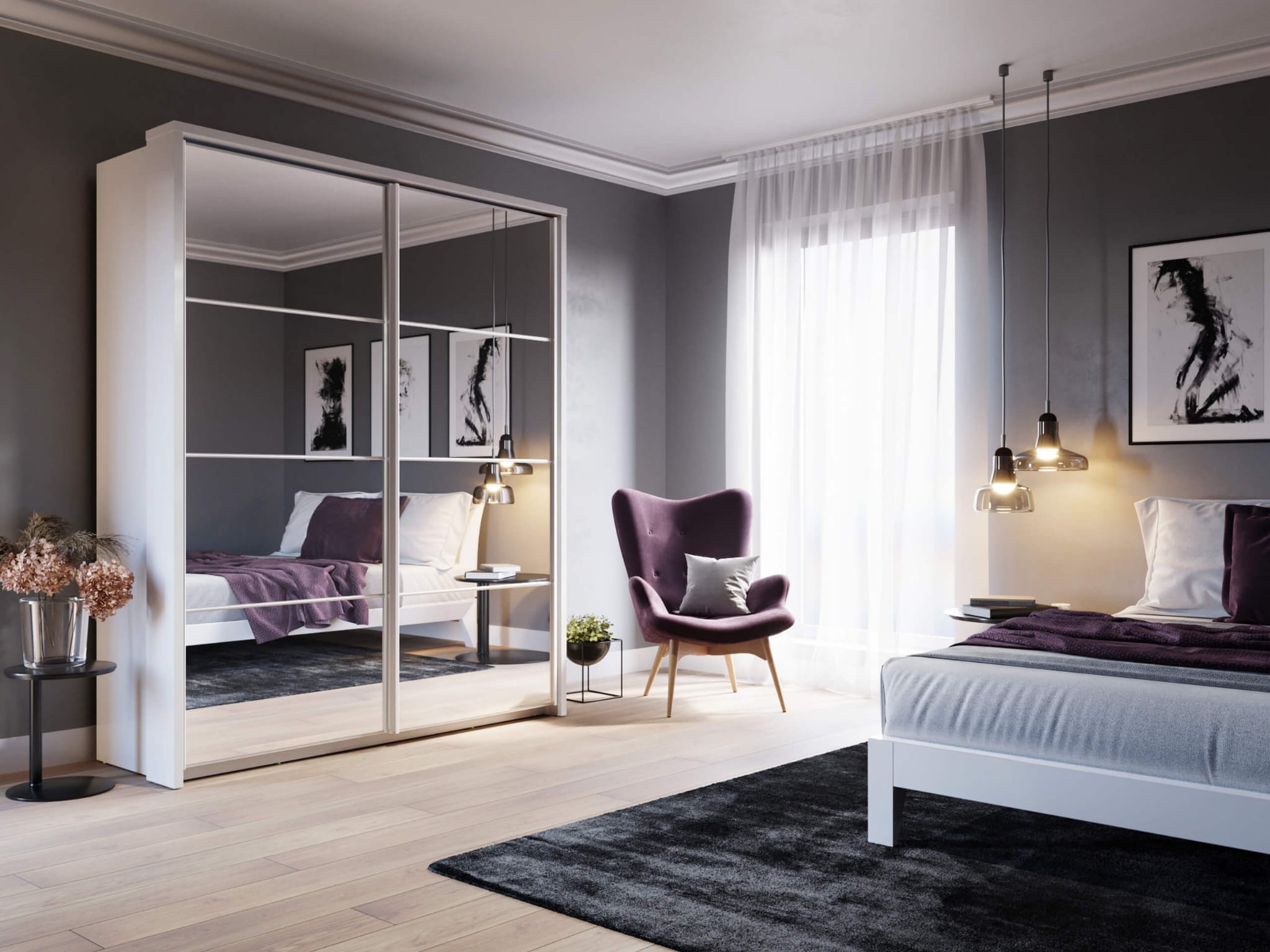 Niezwykle funkcjonalna szafa przesuwna dwudrzwiowa z lustrem w kolorze białym – tak wyjątkowy model sprawdzi się w każdej sypialni. Praktyczny układ 5 półek pozwoli zachować porządek wśród garderoby, a także umożliwi przechowywanie większych przedmiotów np. walizki, deska do prasowania czy odkurzacz pionowy. 3 drążki na wieszaki to bowiem miejsce zarówno na krótkie, jak i dłuższe ubrania typu garnitur, płaszcz. Klasyczna biel sprawdzi się zawsze i może nadać nowoczesny charakter wnętrzu, a w połączeniu z dużą ilością luster rozświetli i optycznie powiększy wnętrze.