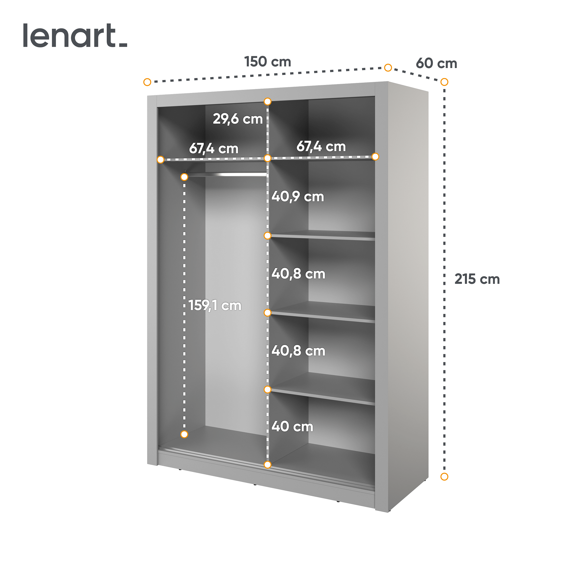 Szafa przesuwna z lustrem ARTI AR-18 2D | 150cm | Szary