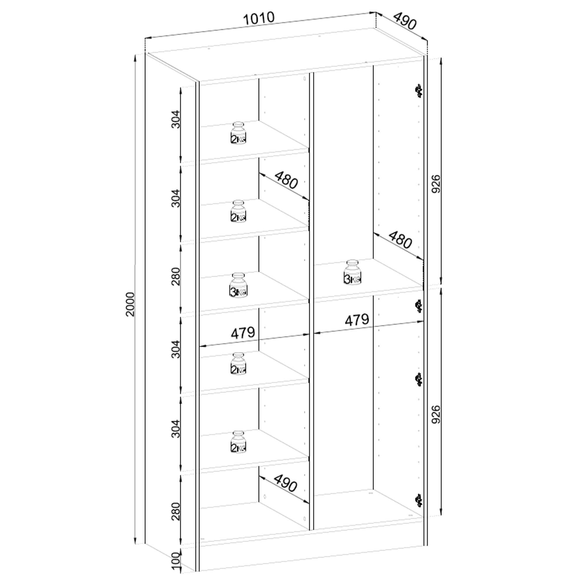 Szafa oferuje 6 półek do przechowywania i dwa solidne drążki na wieszaki. Jeśli jednak preferujesz nieco więcej miejsca - żaden problem. Do zamówienia możesz dodać komplet 4 sztuk półek, które umieścisz w wybranym przez siebie miejscu, zwiększając tym samym funkcjonalność szafy. W końcu wysokość każdej z nich jest regulowana, a to zdecydowanie ułatwi Ci przechowywanie przedmiotów w różnych rozmiarach.