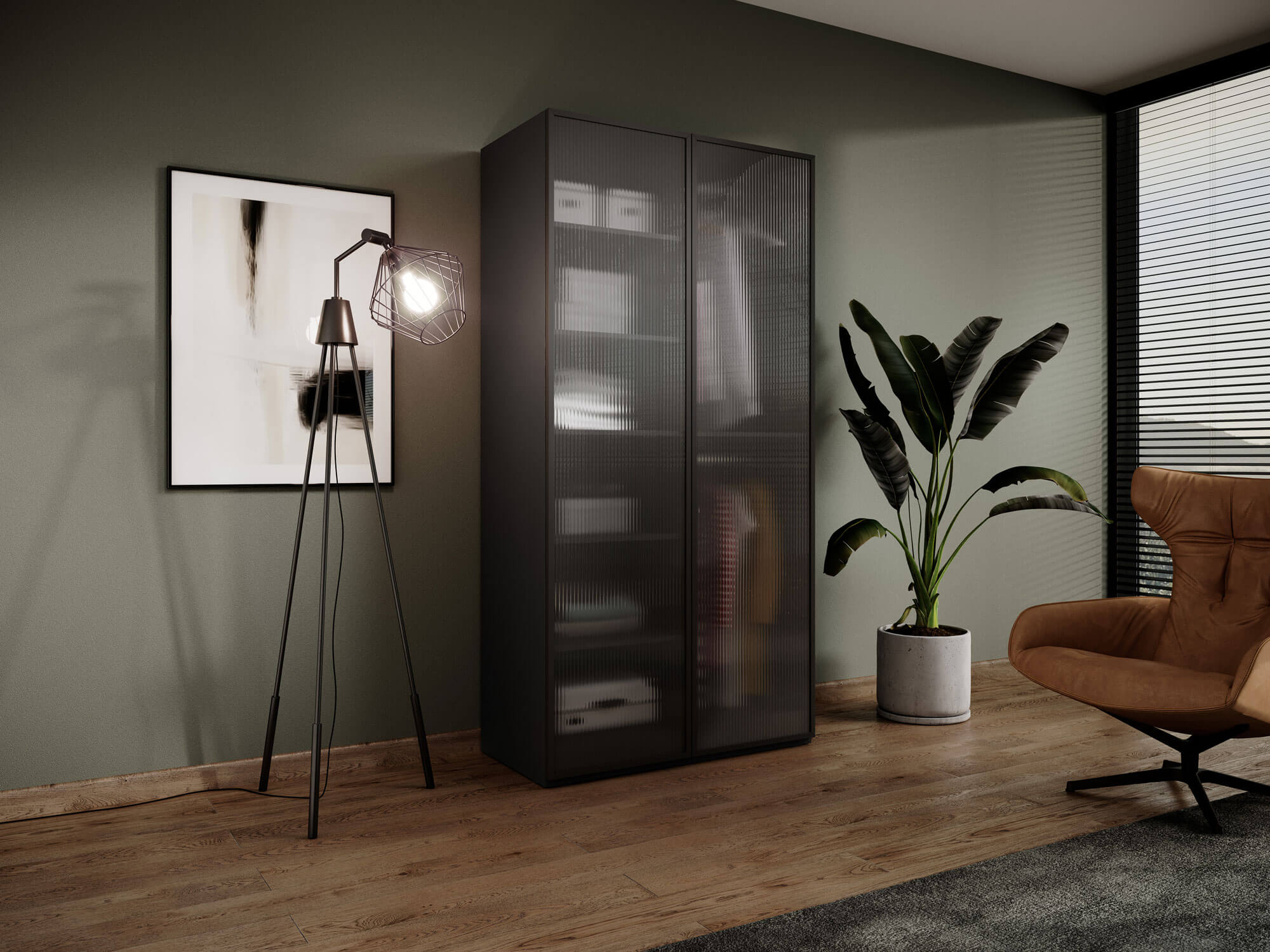 Szafa przeszklona SANDBOX | 101 cm | Szkło ryflowane Flutes | Czarny