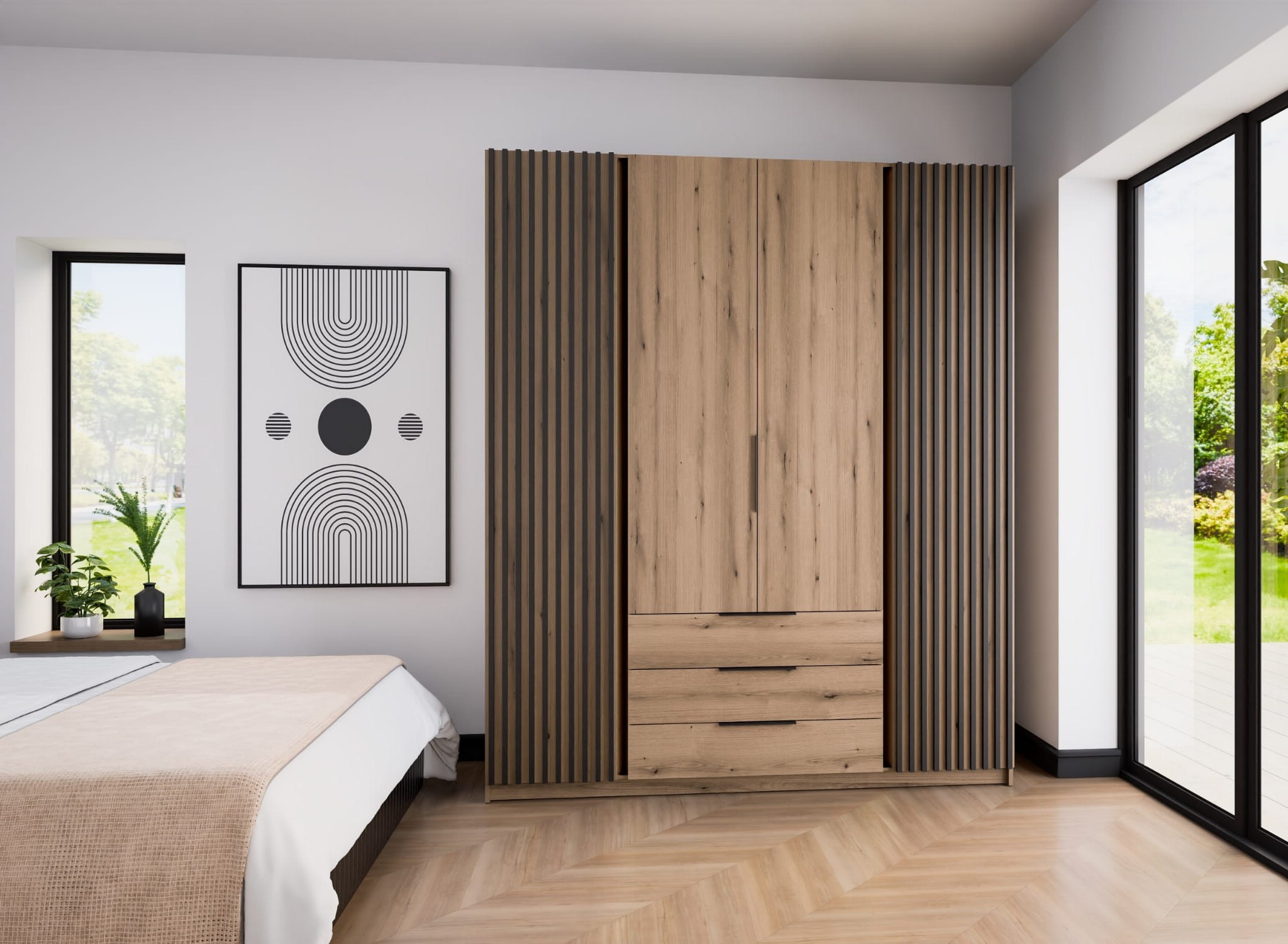 Szafa z lamelami KAJA EV/EV-BL 2LAM2F3S | Dąb evoke, czarny