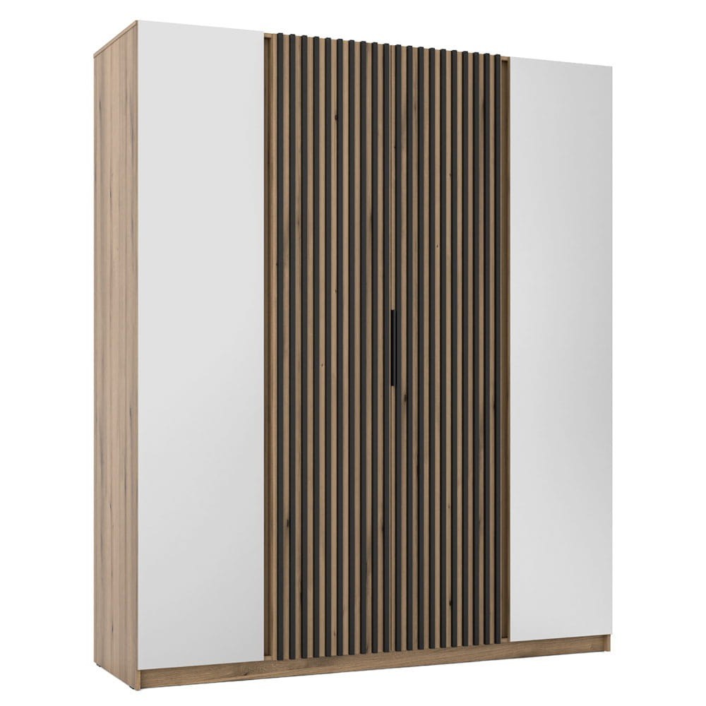 Szafa z lamelami i lustrem KAJA EV/EV-BL 2LUS2LAM | Czarny, dąb evoke