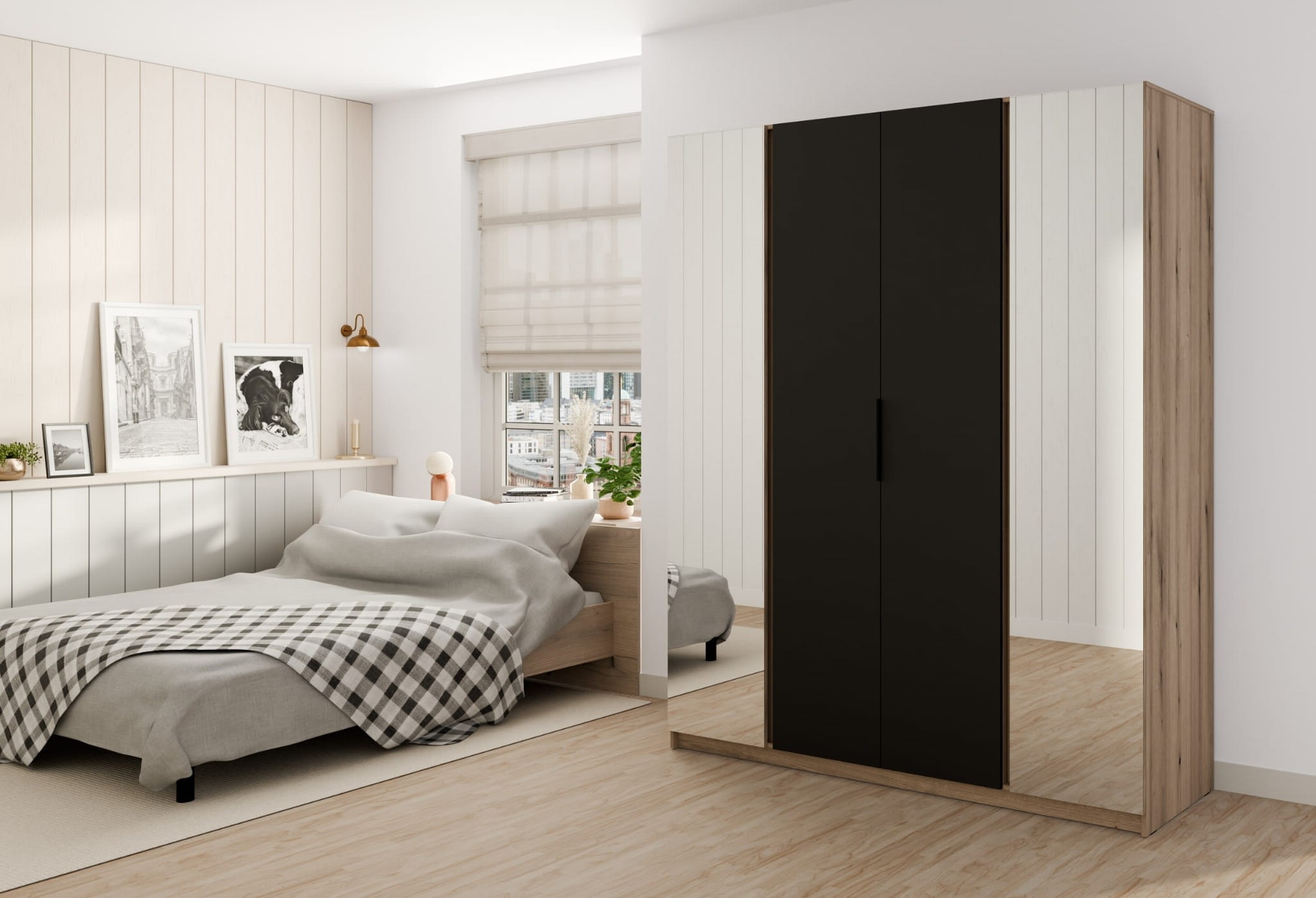 Szafa z lustrem KAJA EV/BL 2LUS2F | Czarny, dąb evoke