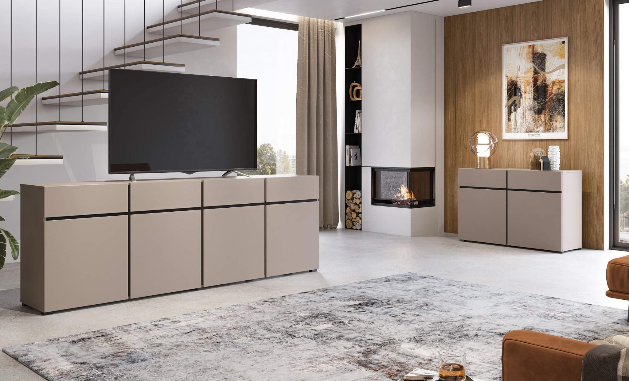 Szafka RTV beżowa/brązowa 180cm – poznaj nowy styl z kolekcją CROSS!