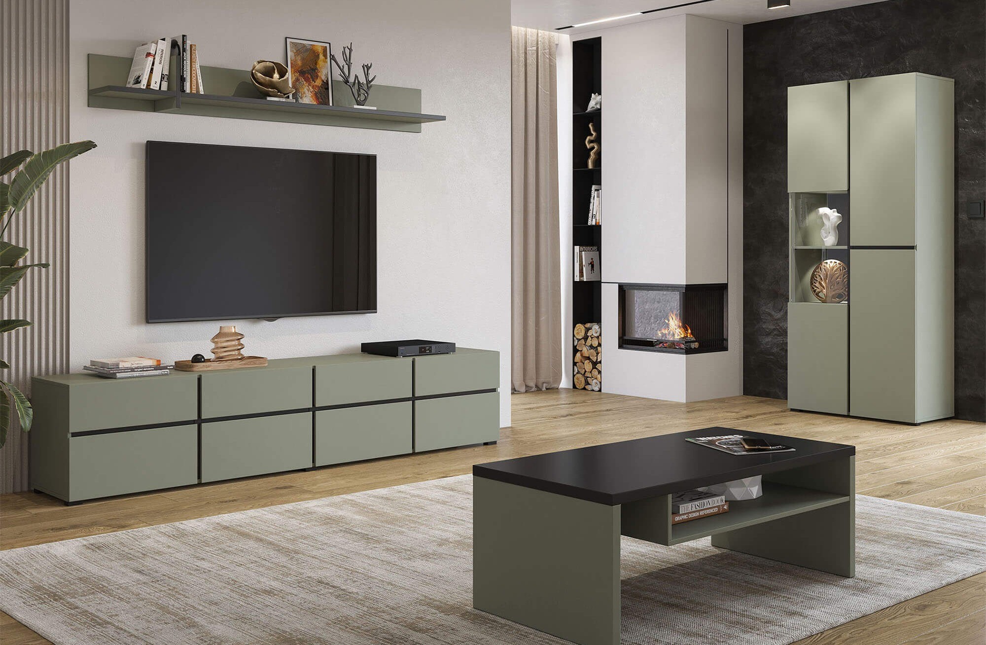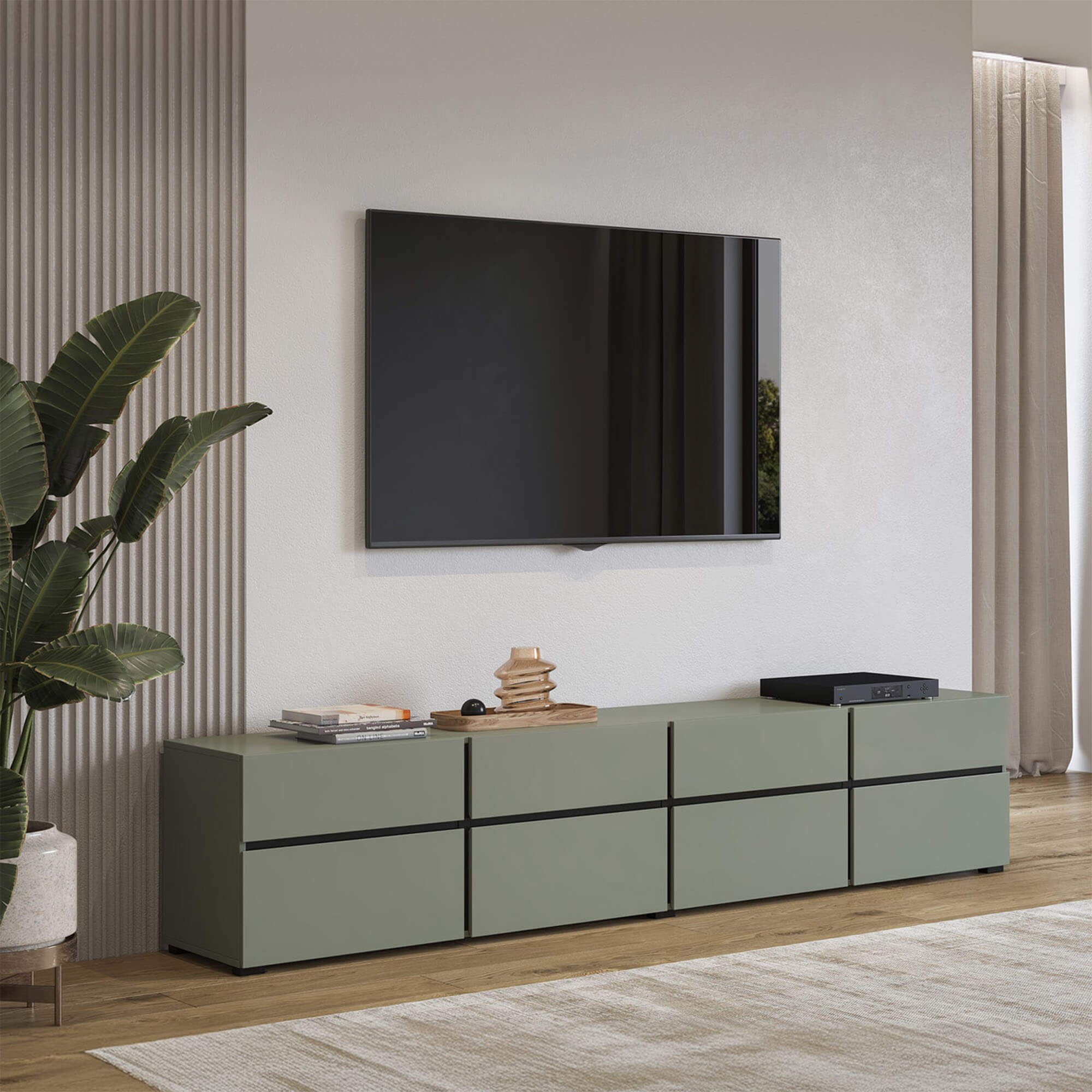 Szafka RTV CROSS 4D4S | 225cm | 24GWMY40 | Zielony, czarny