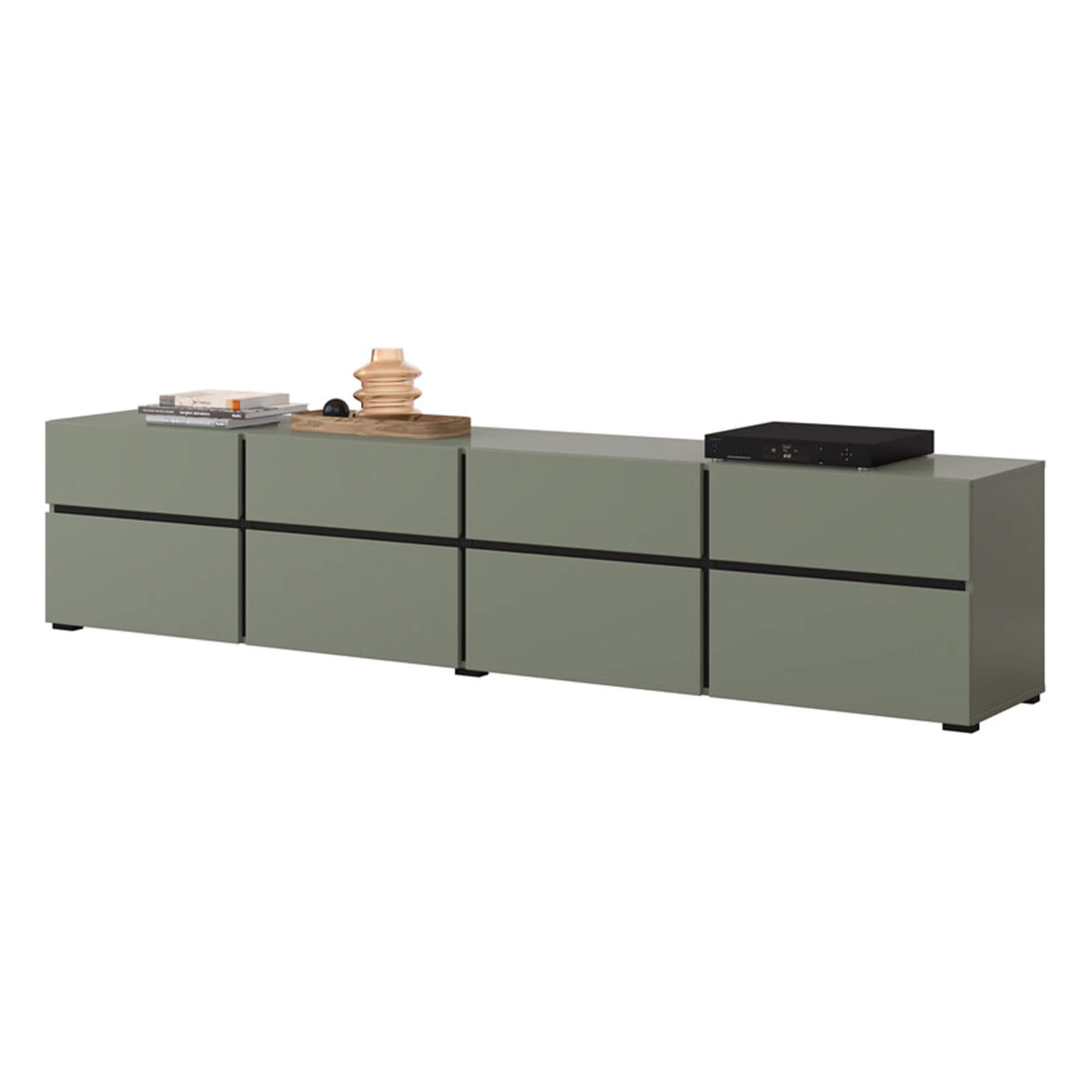 Nowoczesna komoda zielona 225 cm CROSS 4 szafki, 4 szuflady
