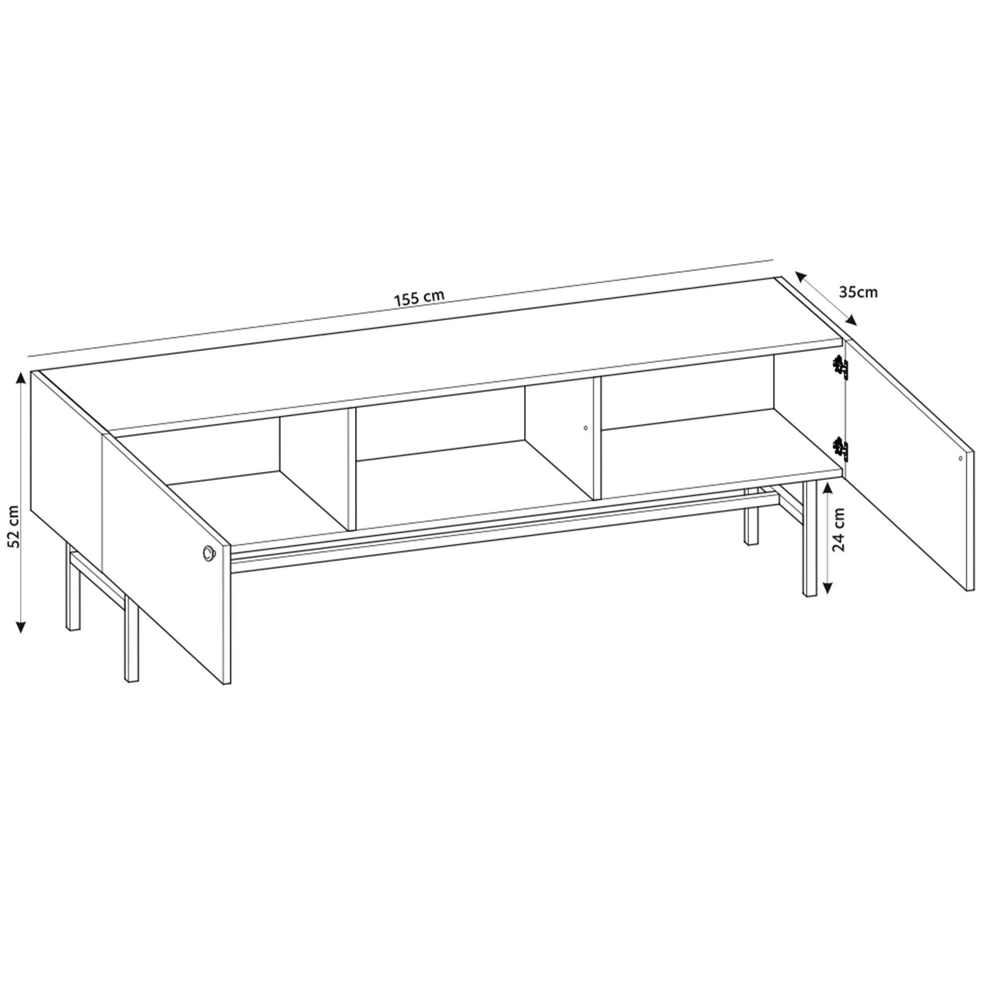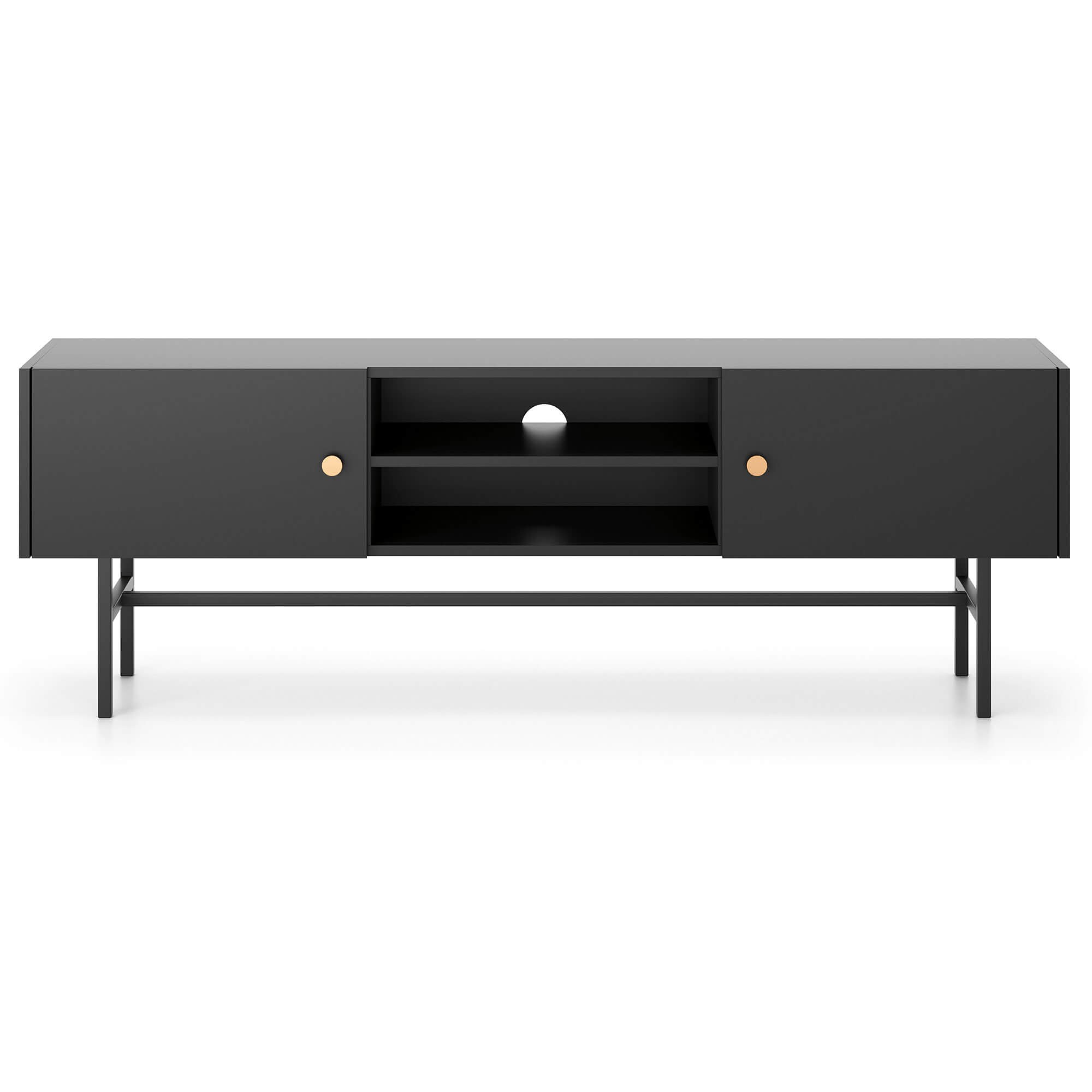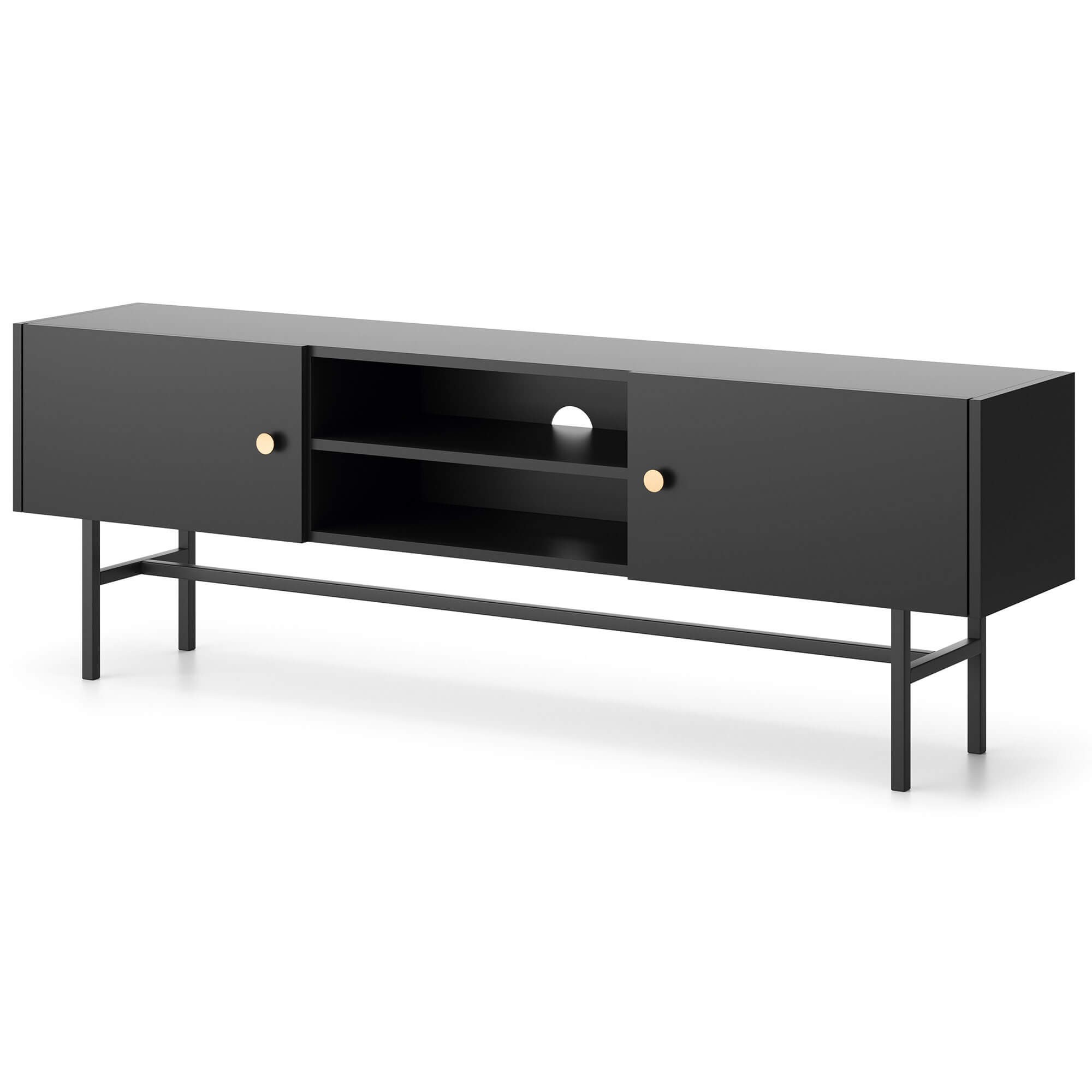 Szafka RTV DIVA | 155cm | Czarny, złoty uchwyt