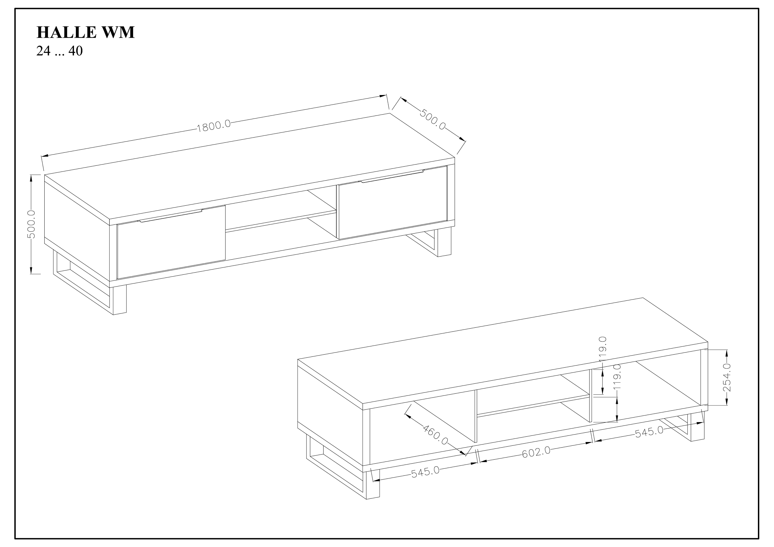 Szafka RTV HALLE 2K 40 | Dąb wotan, czarny