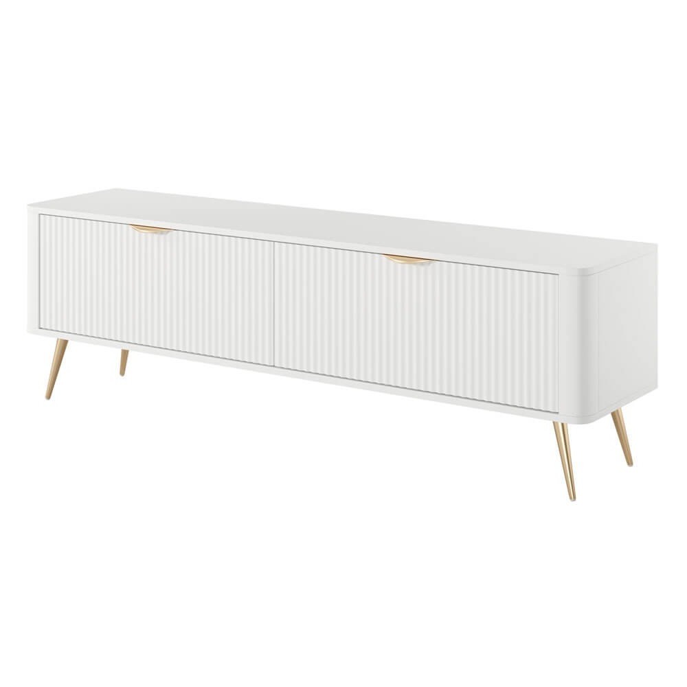 Szafka RTV LANTE 2D | 163cm | Biały | Złote nogi