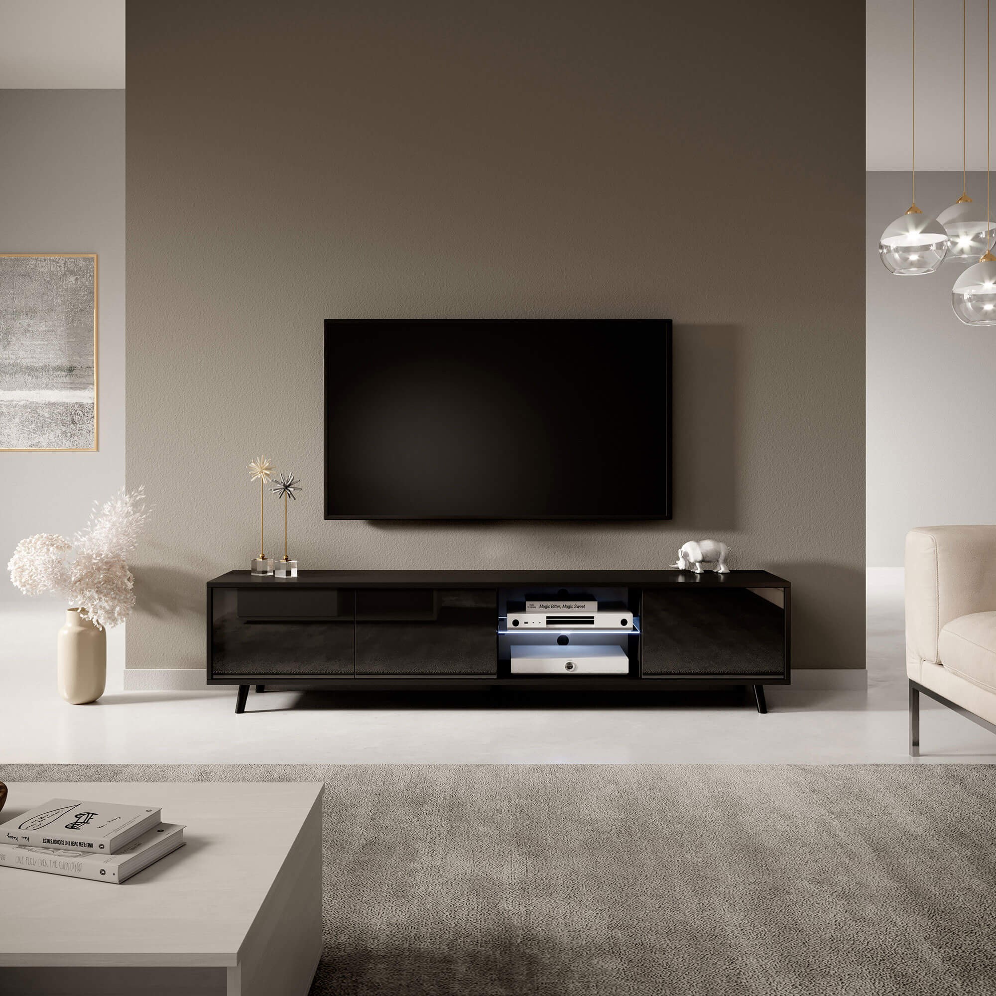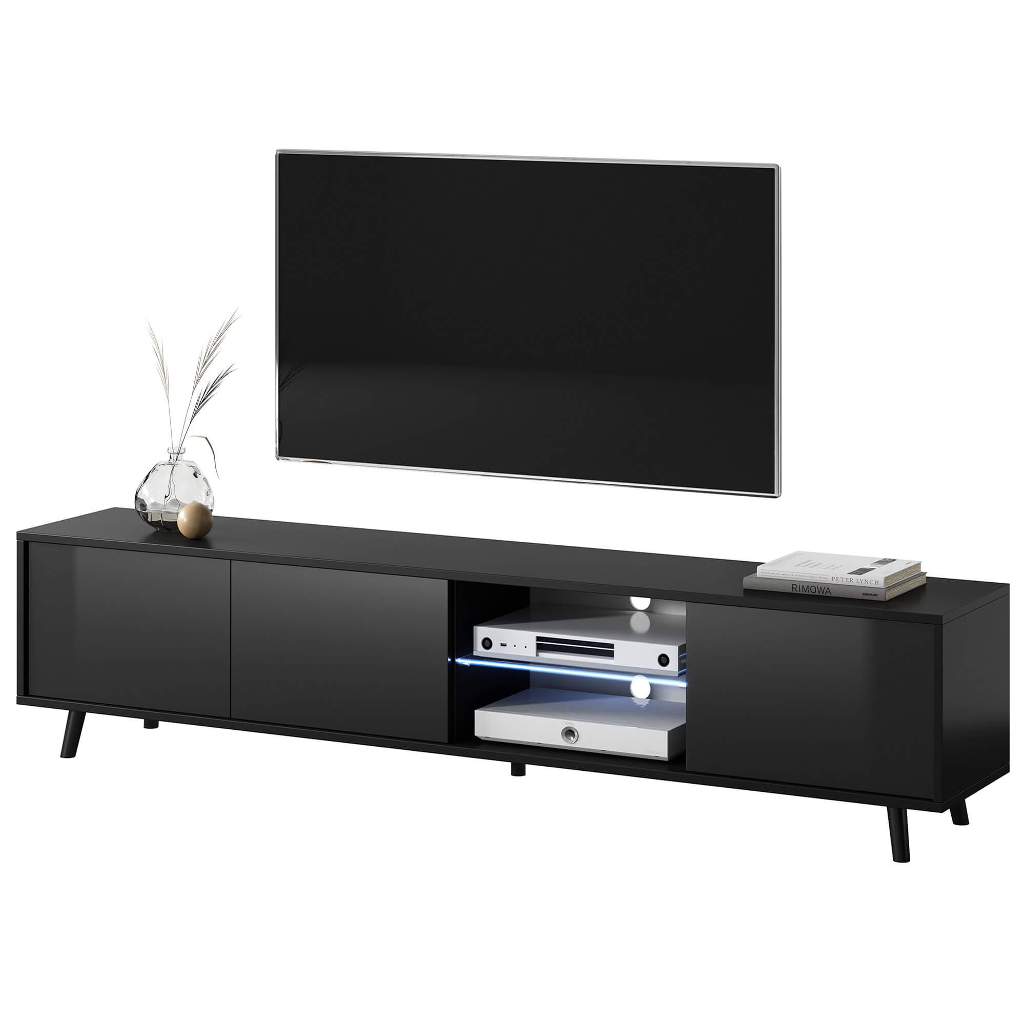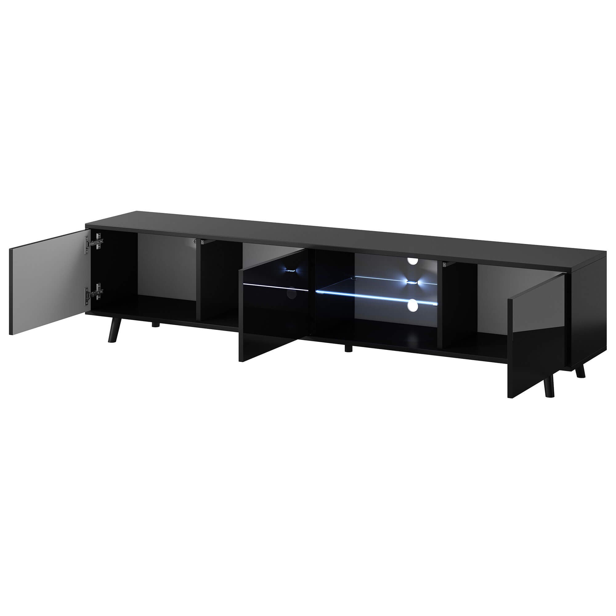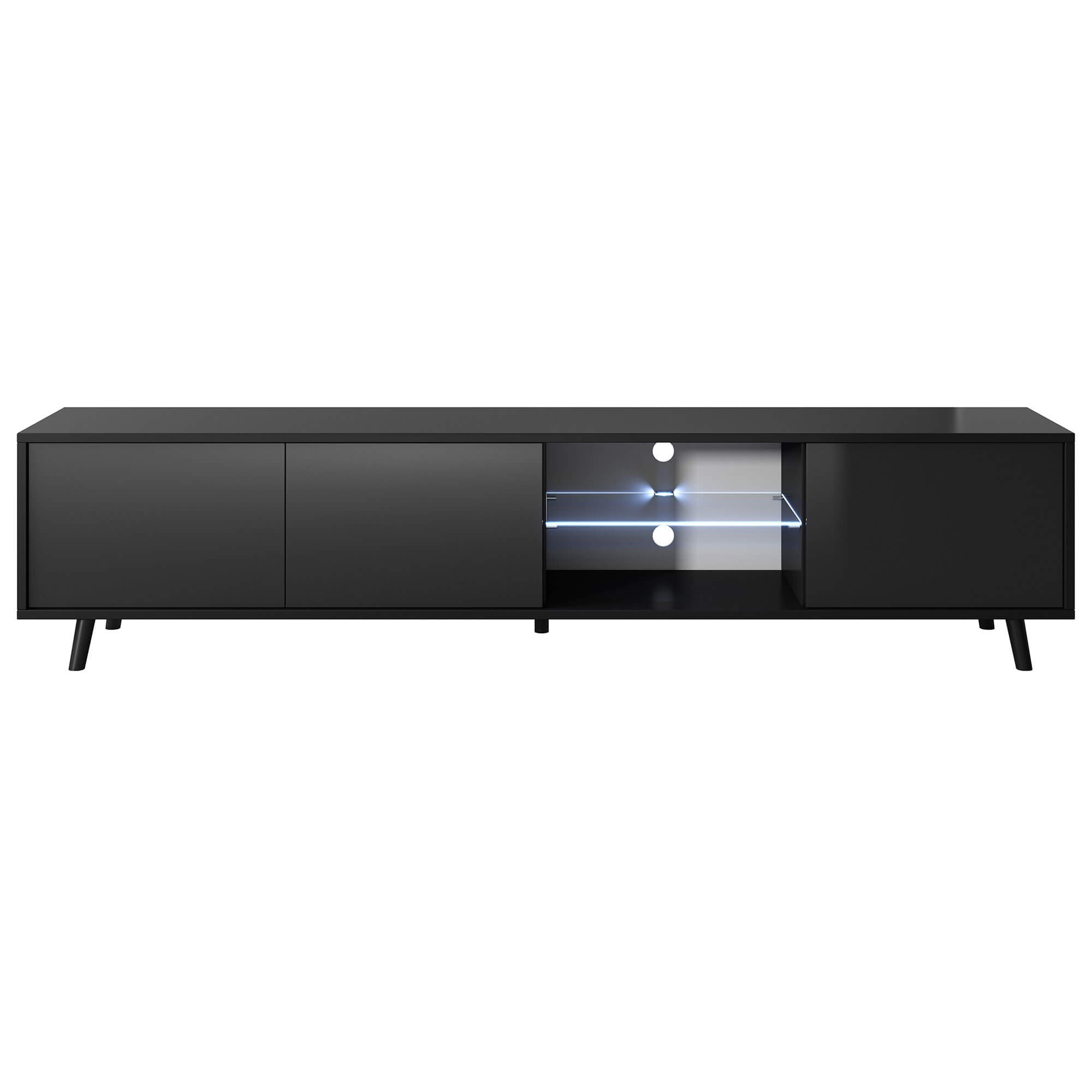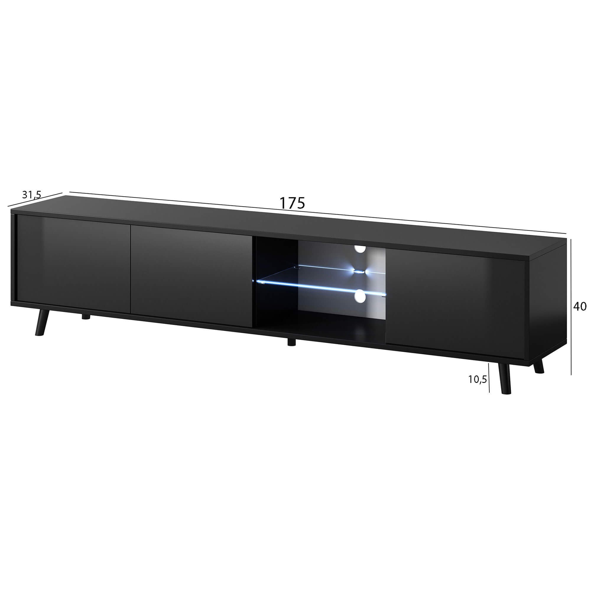 Szafka RTV LUNA 02 | 175cm | Oświetlenie LED | Czarny mat, czarny połysk