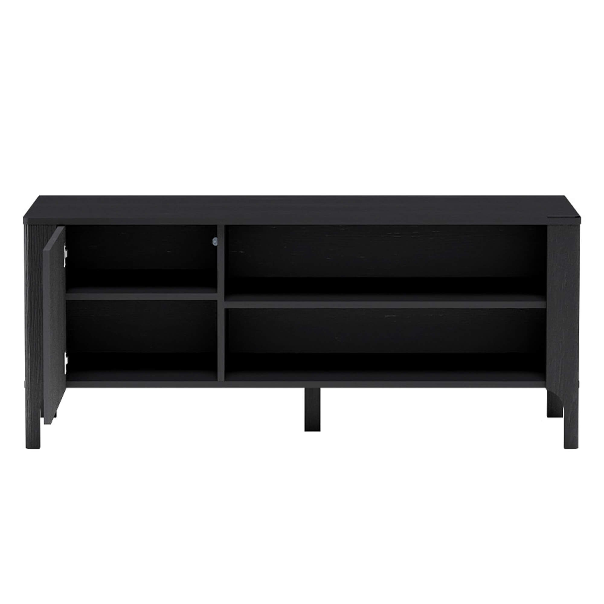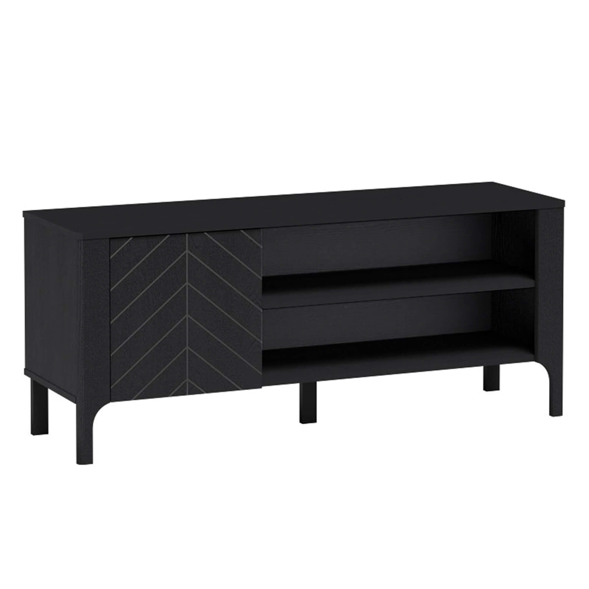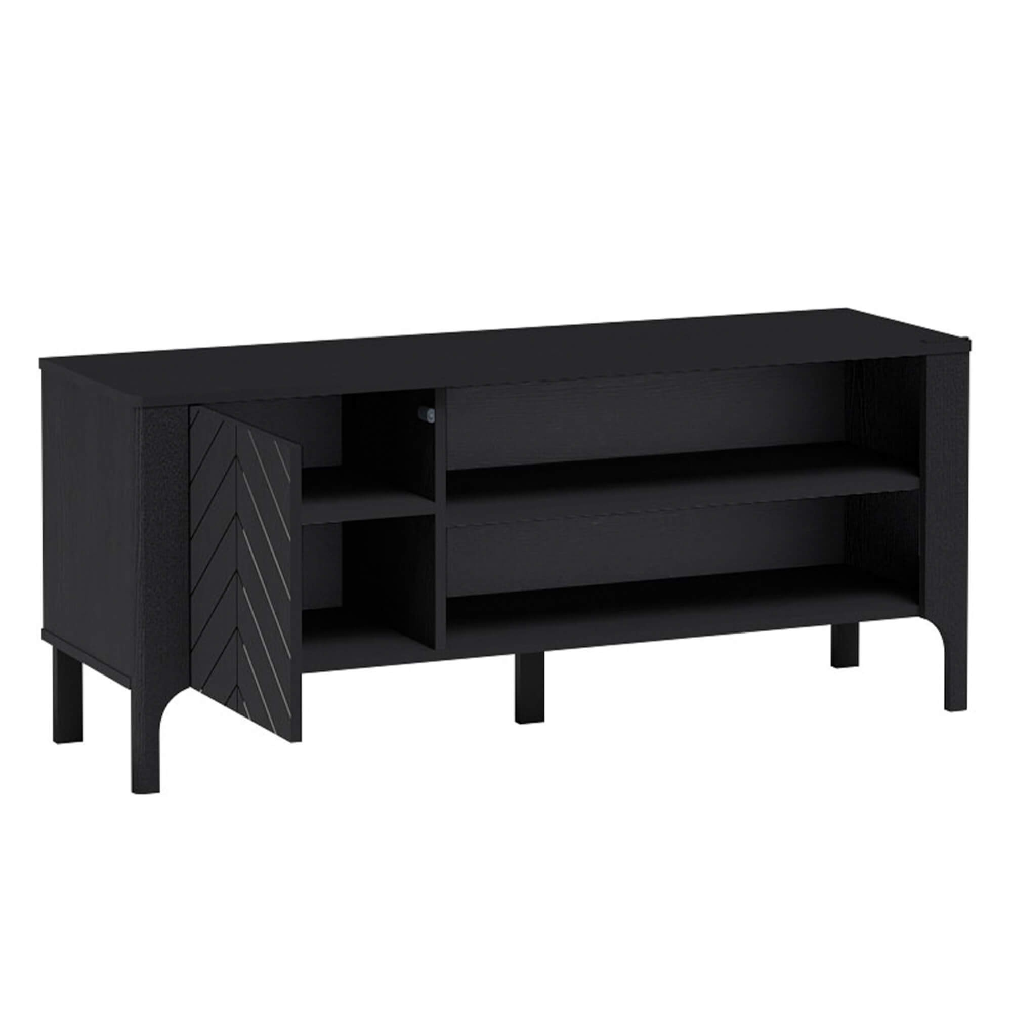 Model Malumi MM-6 został zaprojektowany tak, aby łączyć estetykę z maksymalną funkcjonalnością. Pojemna szafka po lewej stronie pozwala na ukrycie przedmiotów, które nie powinny być na widoku, natomiast otwarta przestrzeń z półką po prawej to idealne miejsce na konsolę, dekoder czy soundbar. Taki układ zapewnia optymalny przepływ powietrza dla elektroniki oraz łatwy dostęp do kabli.