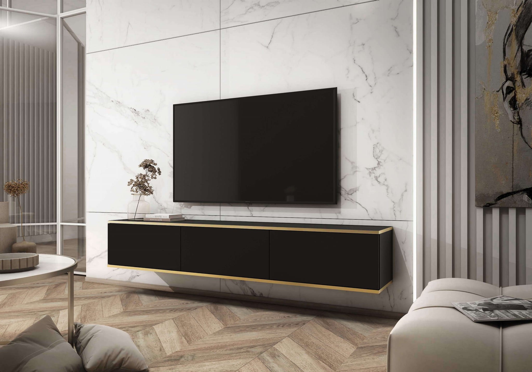 Szafka RTV ORO RTV175 Czarna / Gładki front | SZYBKA WYSYŁKA