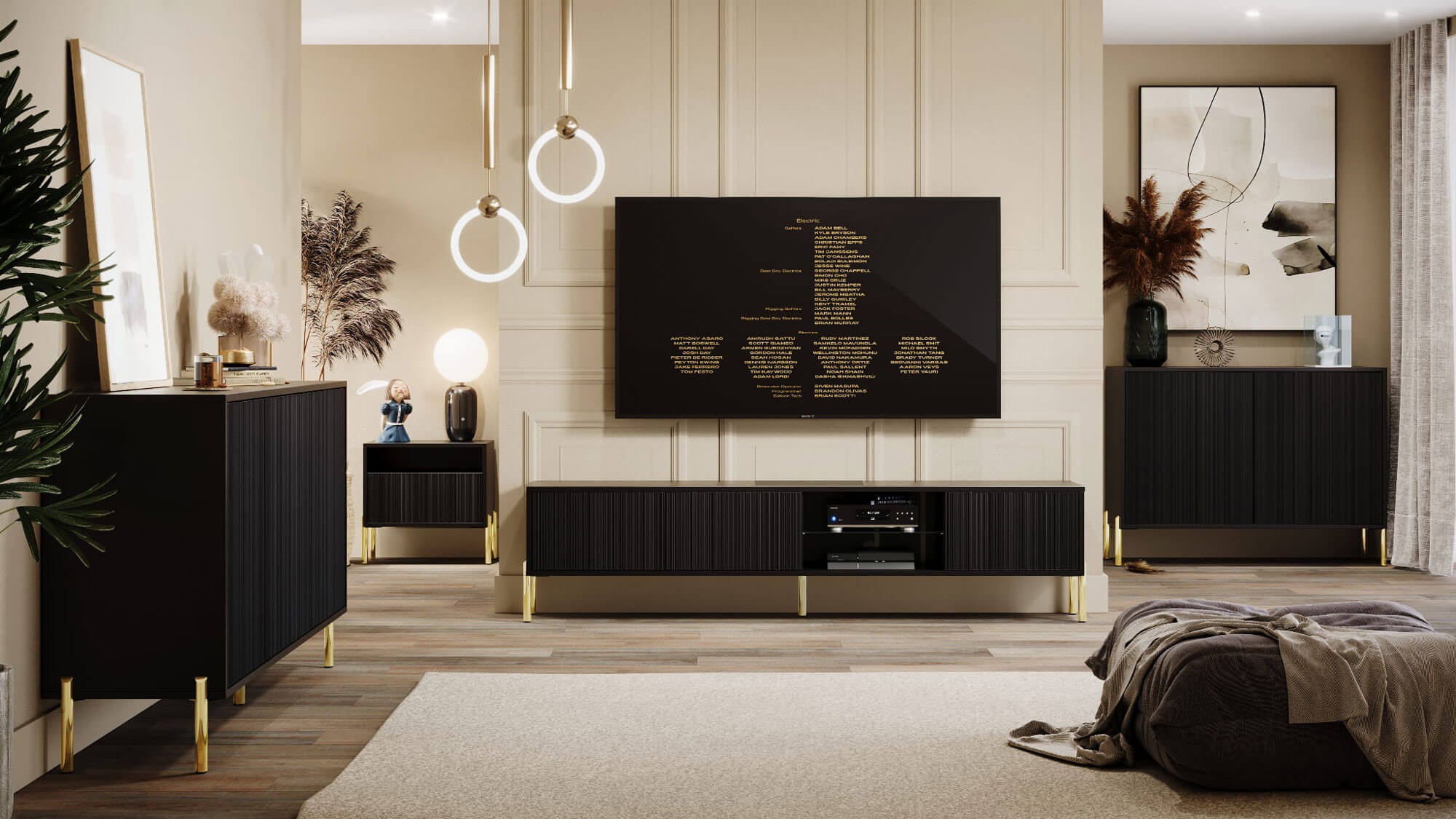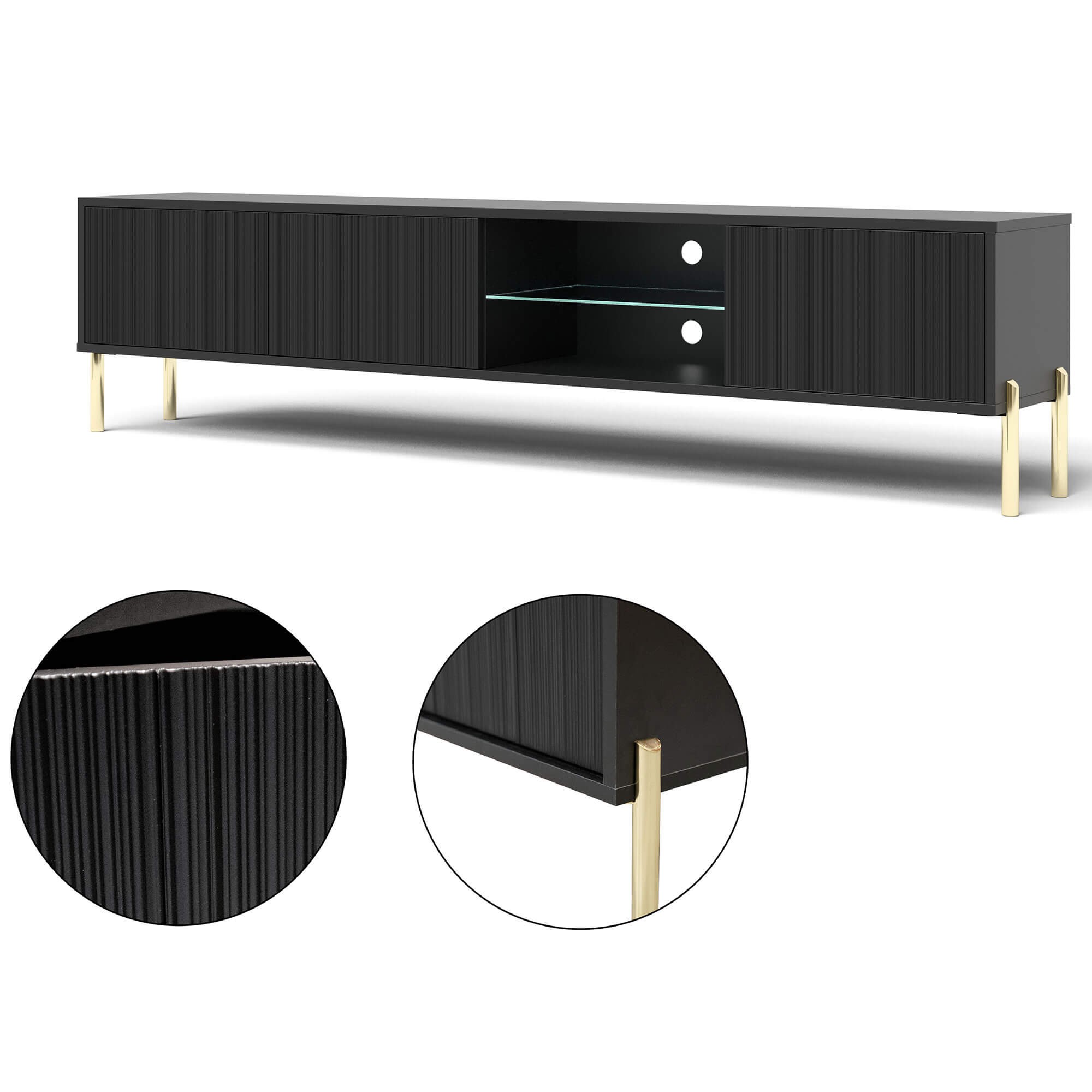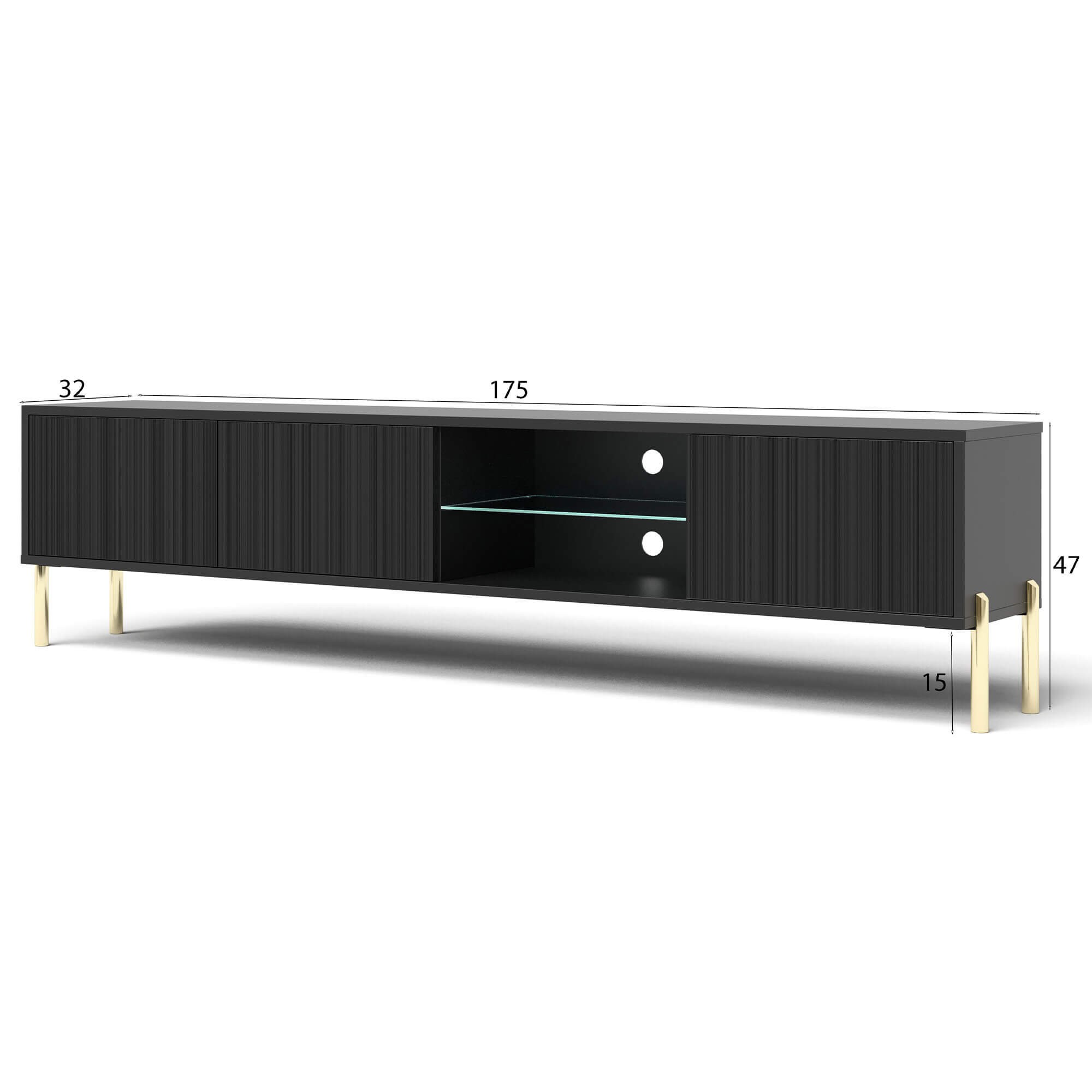 Szafka RTV OSLO | 175cm | Czarny | Złote nogi