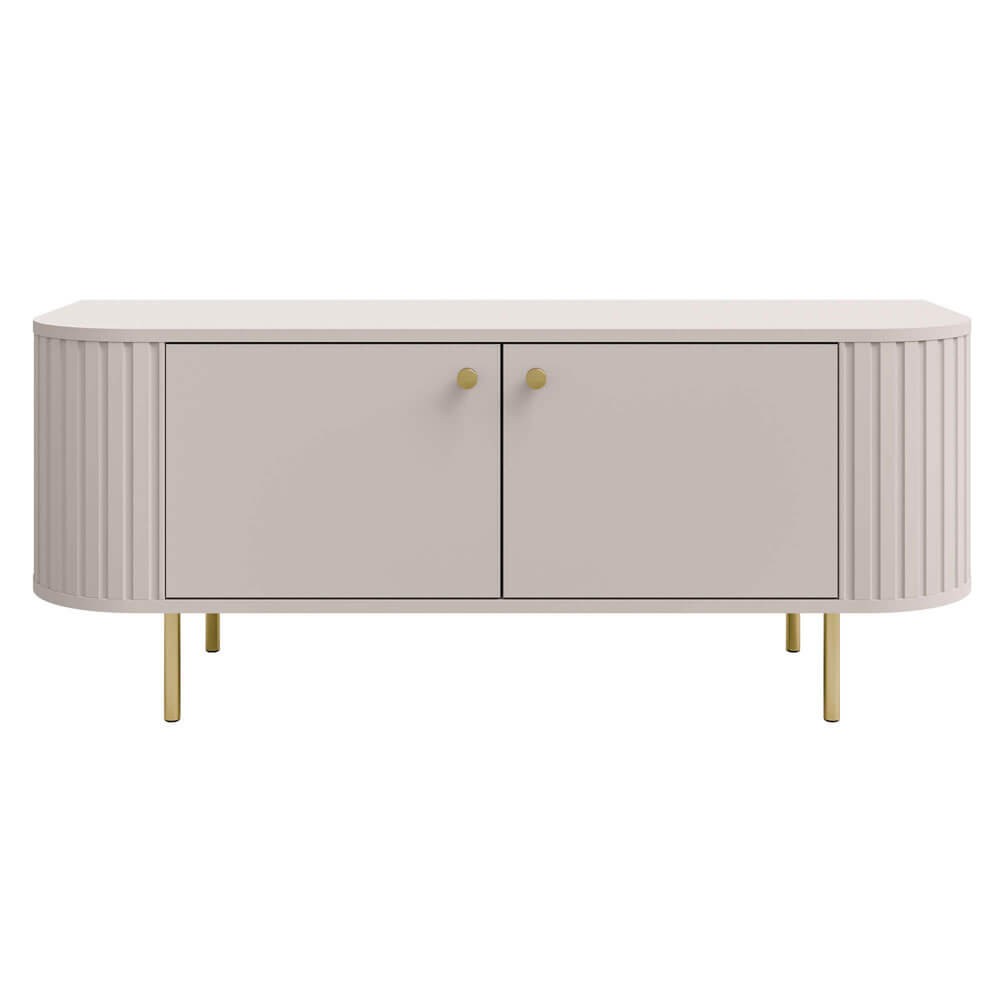 Szafka RTV OVALIO 2F (302) | Beż piaskowy | Złote nogi