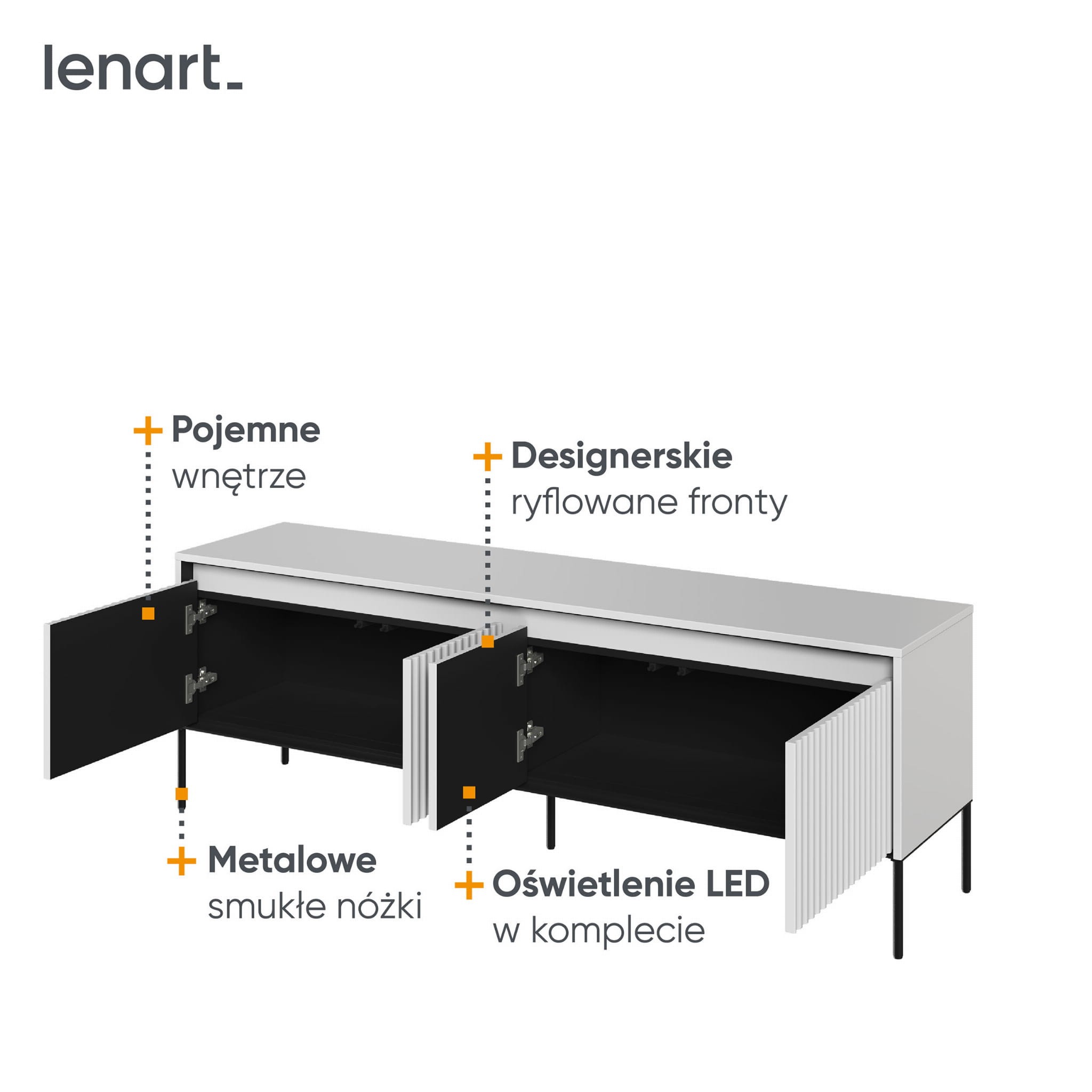 Szafka RTV frezowana TREND 05 biały/czarne nogi