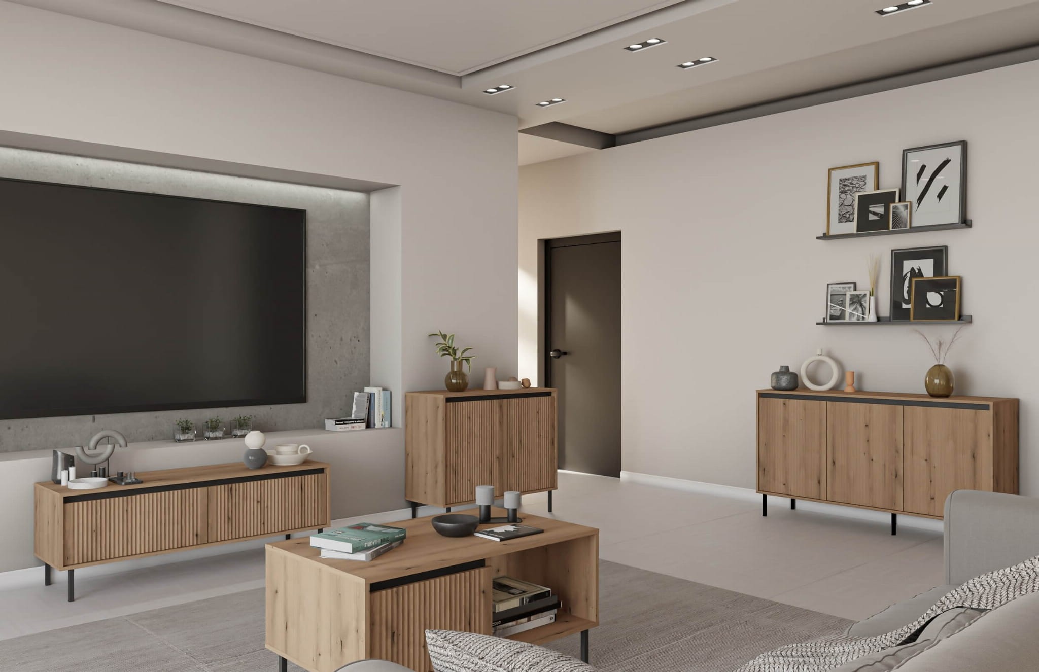 Szafka RTV ryflowana OSAKA 2S | 302 | Dąb evoke