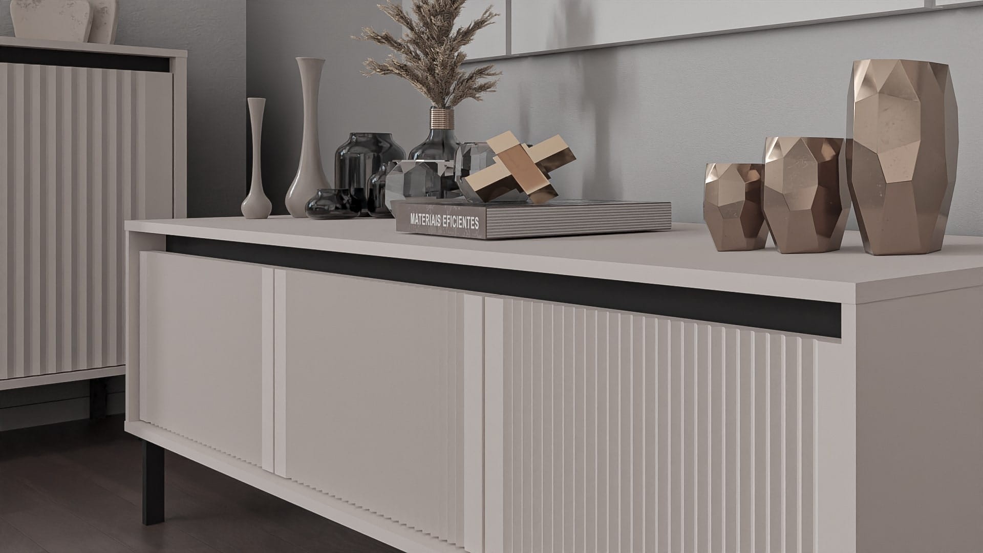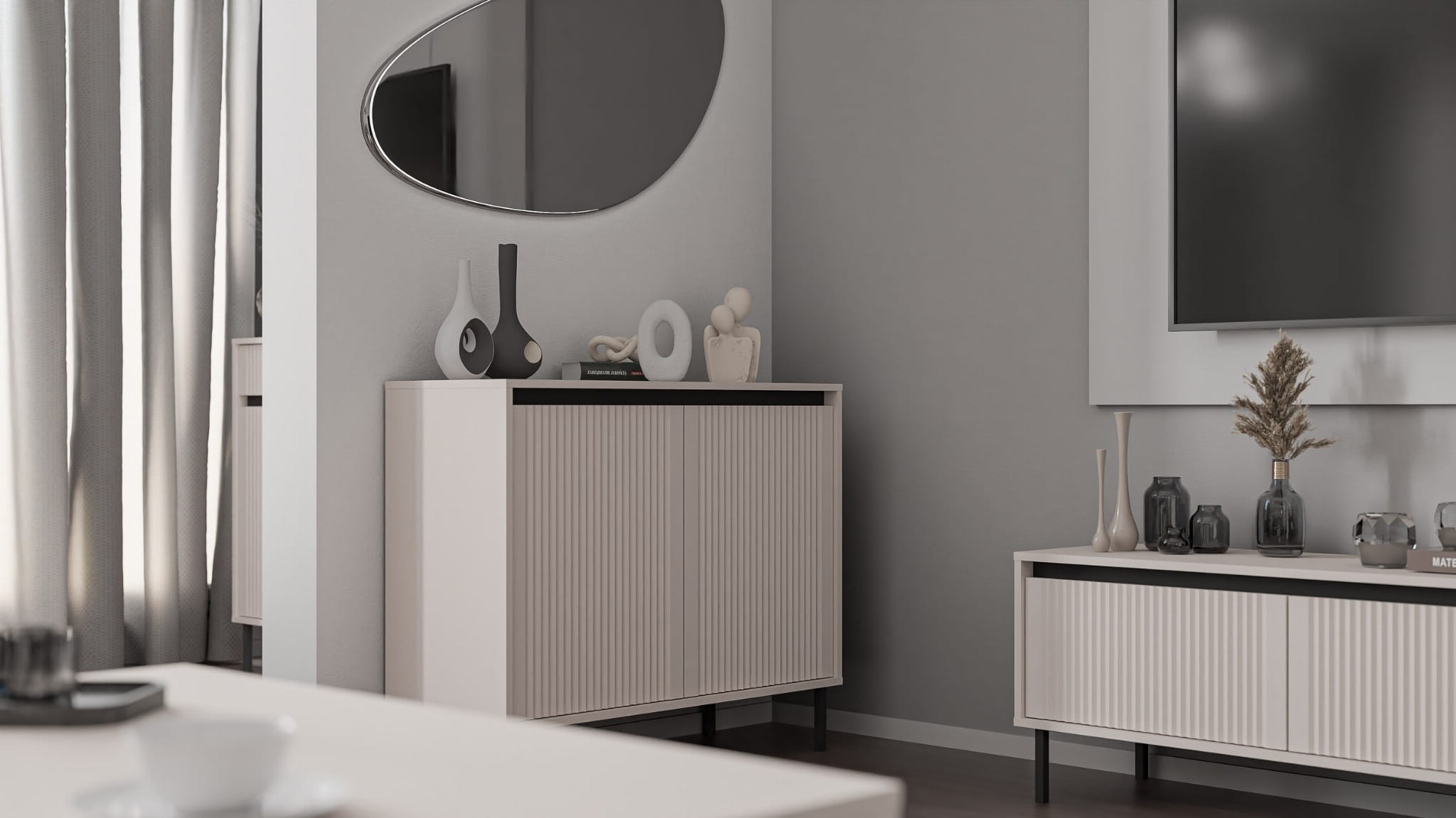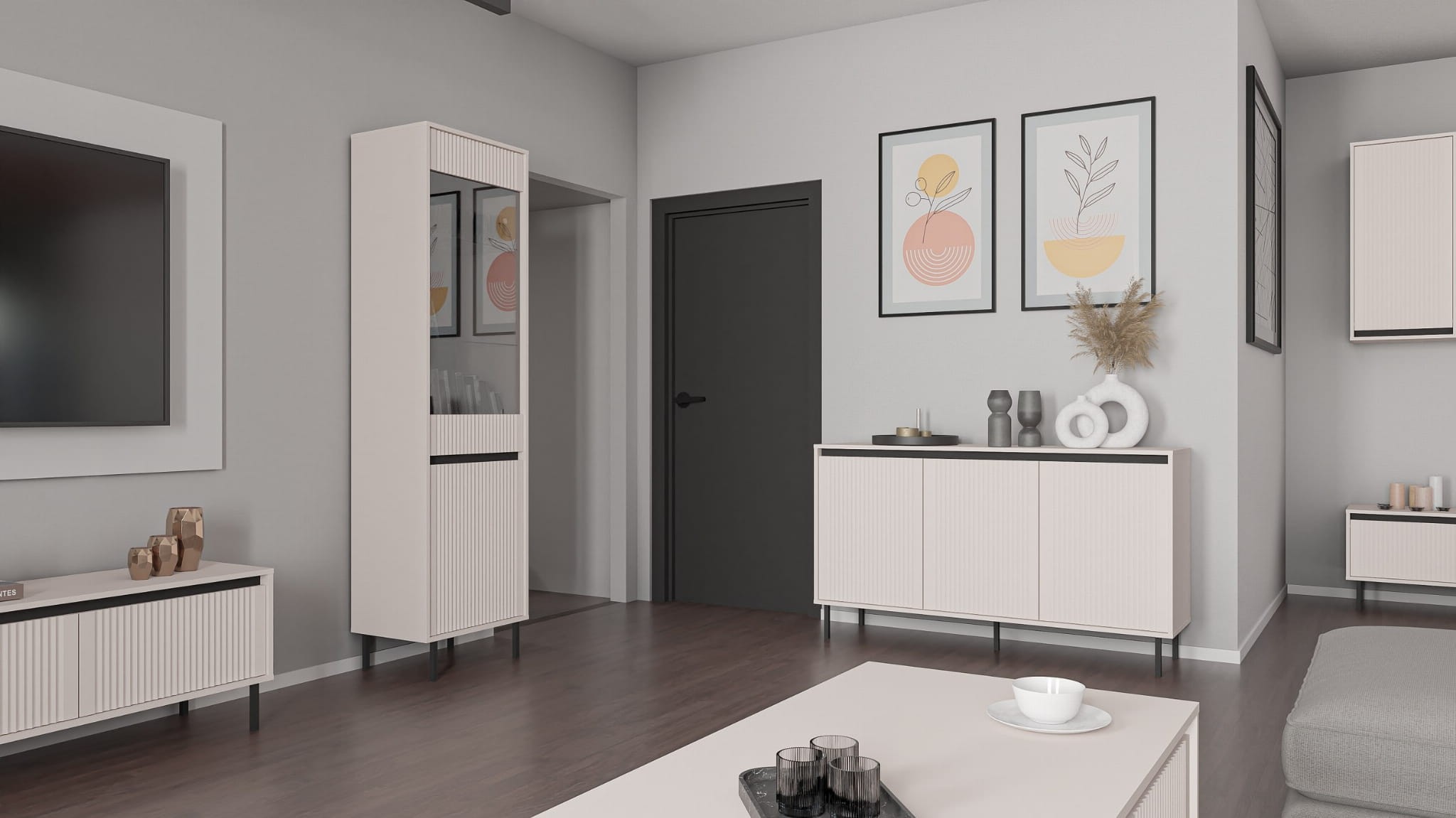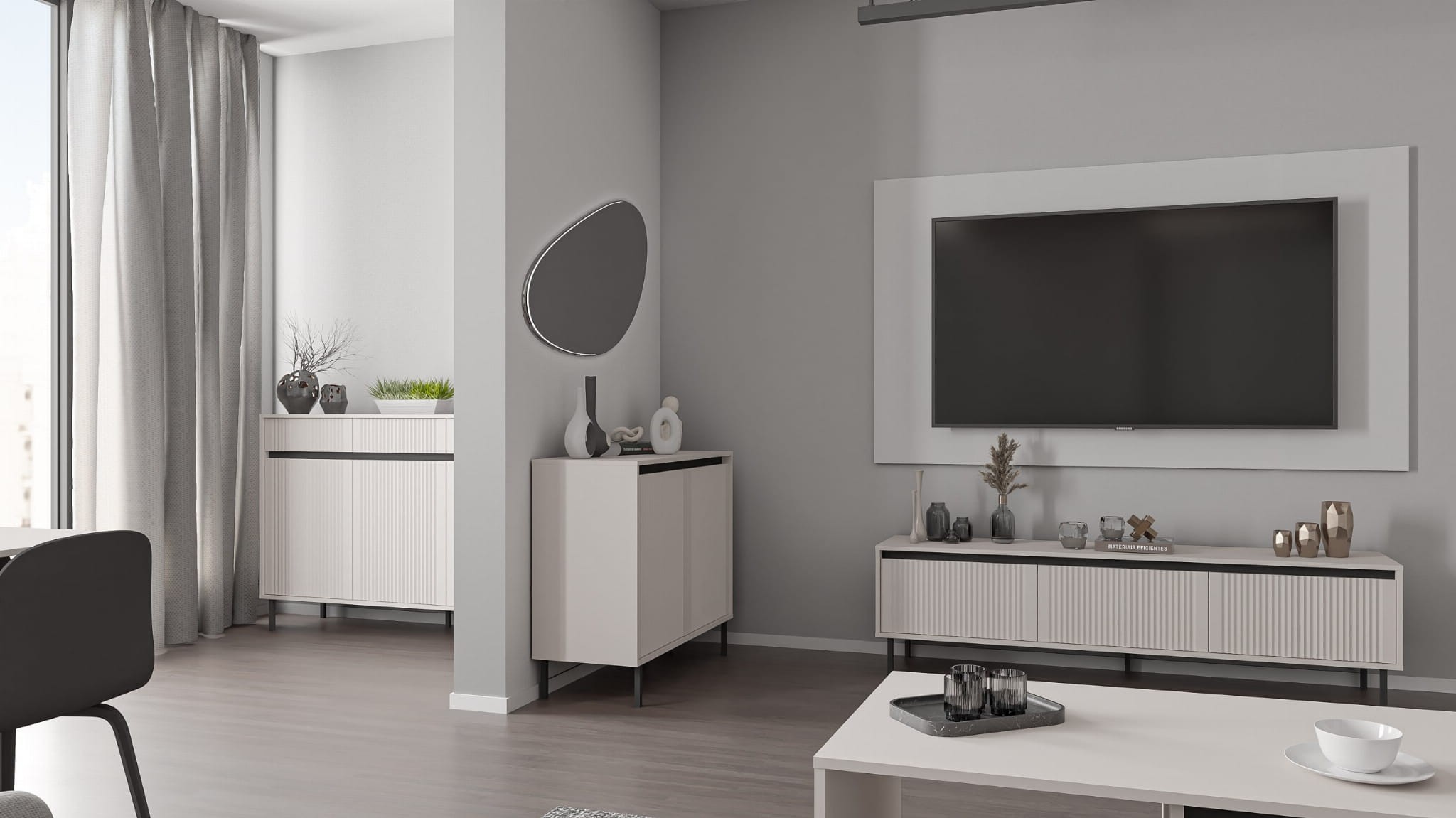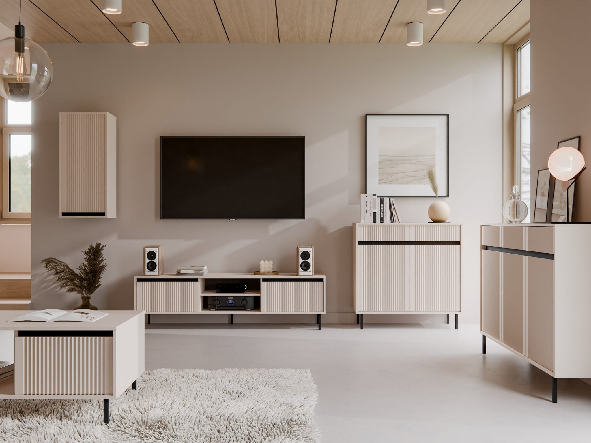 Szafka RTV ryflowana OSAKA 3S | 303 | Beż piaskowy