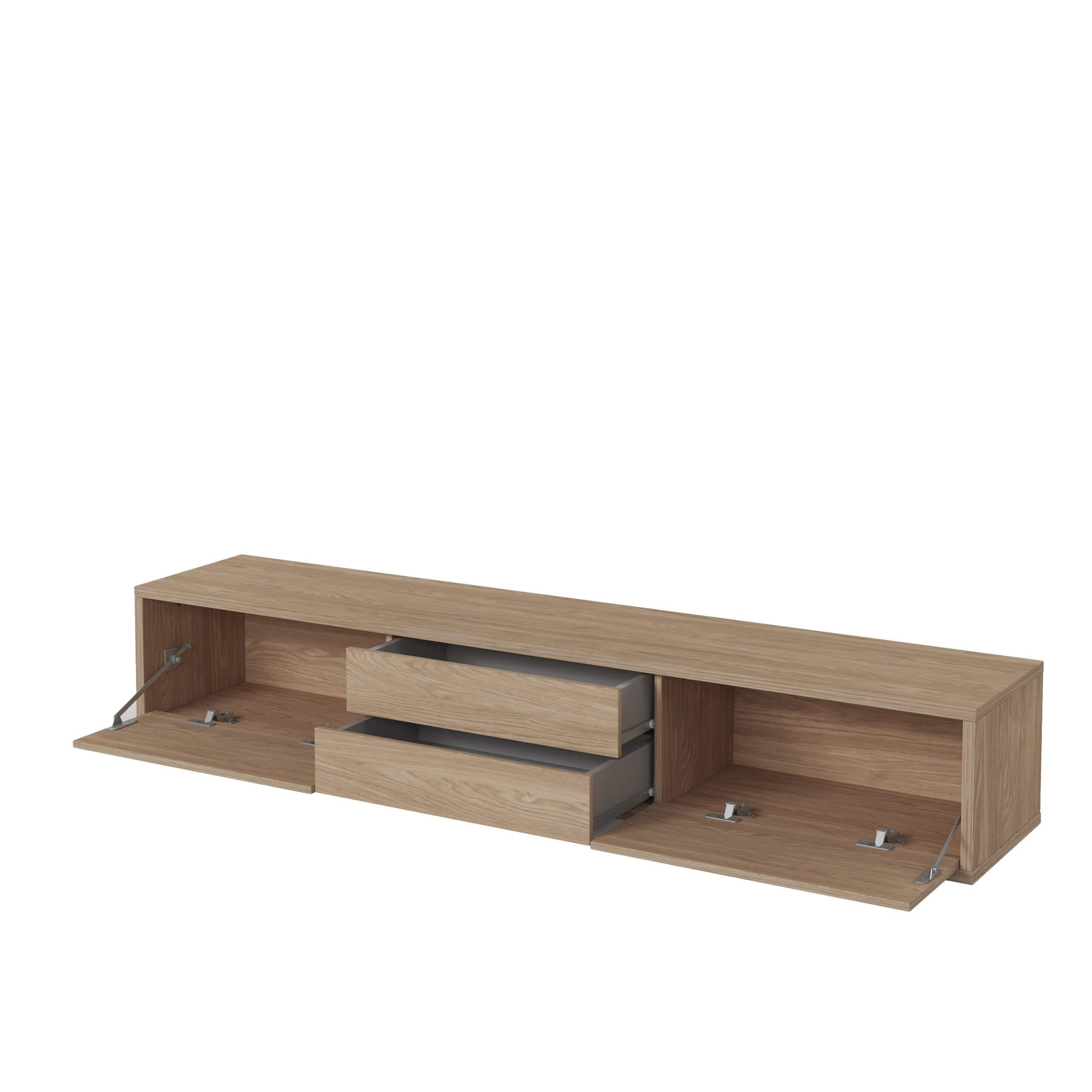Szafka RTV dąb olejowany z opcją podwieszenia FRIDA – 180cm, 2 szuflady i 2 klapy