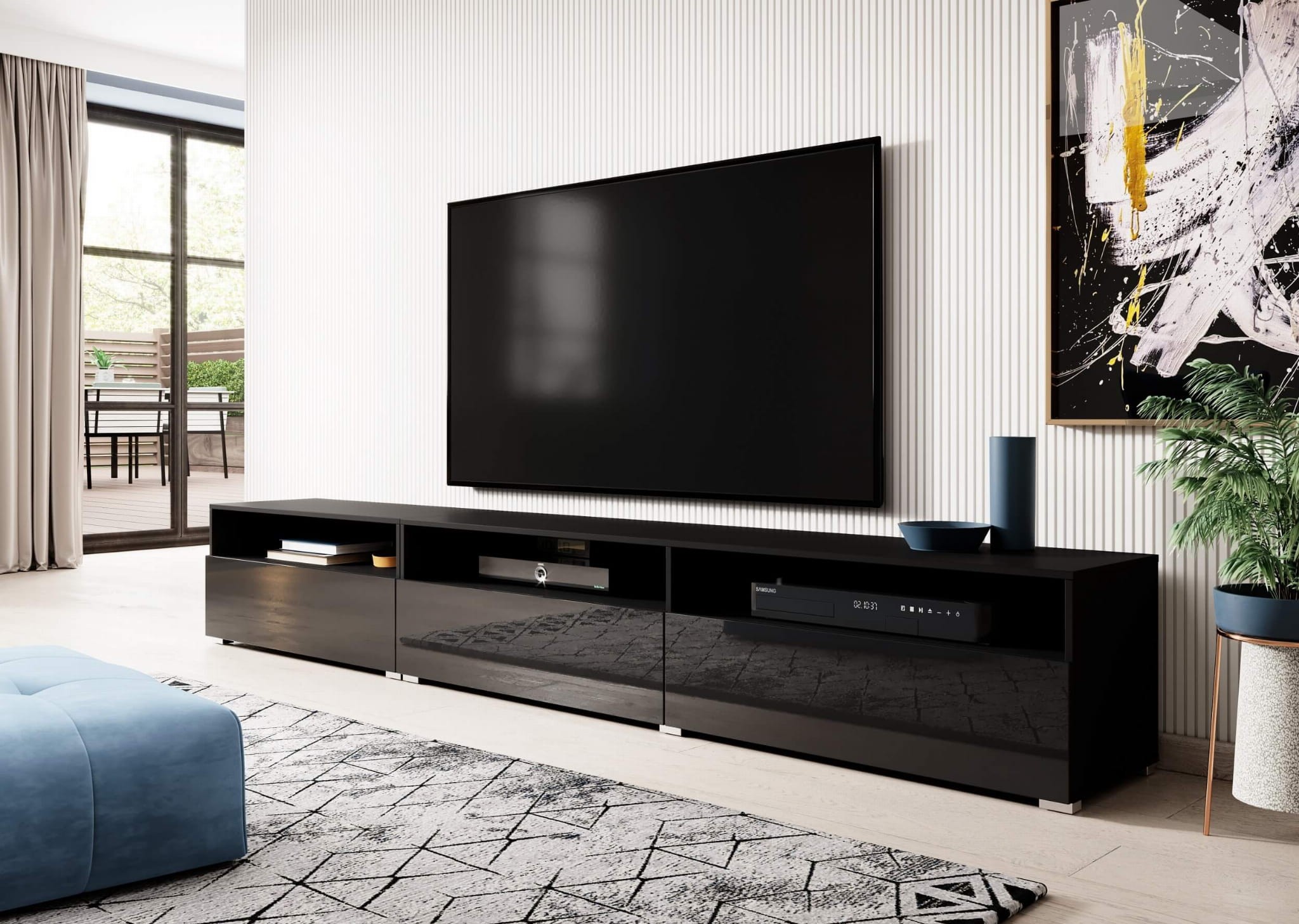 Nowoczesna szafka RTV czarny mat/połysk – wisząca lub stojąca, z oświetleniem LED lub bez!