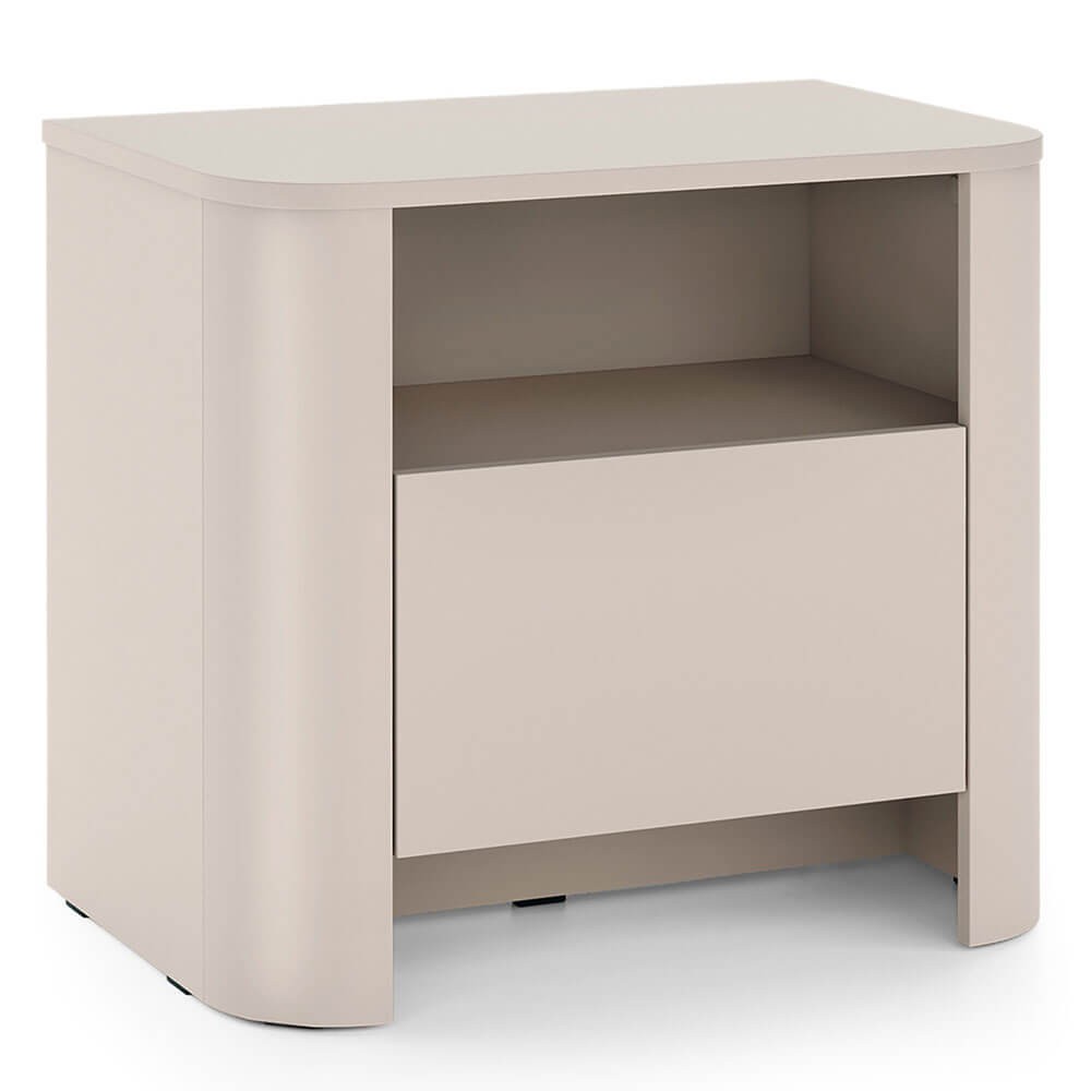Szafka nocna S58 BARI w odcieniu Cashmere to idealne połączenie subtelnej elegancji i funkcjonalności, które odmienią Twoją sypialnię. Jej gładkie, matowe wykończenie w ciepłym tonie kaszmiru oraz naturalna, drewnopodobna struktura powierzchni podkreślają nowoczesny charakter wnętrza, jednocześnie wprowadzając przytulną atmosferę. Zaokrąglone boki i fronty eliminują ostre kanty, gwarantując bezpieczeństwo, a system „push-to-open” w szufladzie z cichym domykiem dodaje luksusowej lekkości codziennemu użytkowaniu. Dyskretne obrzeża ABS i ukryte łączniki Minifix dbają o nienaganną estetykę, podczas gdy otwarta półka staje się praktycznym miejscem na lampkę lub ulubioną lekturę. Dzięki regulowanym stopkom szafka stoi stabilnie nawet na nierównym podłożu, a jej ponadczasowy design sprawi, że S58 BARI Cashmere będzie ozdobą każdej sypialni. Wybierz wyjątkowy styl i komfort – postaw na szafkę nocną BARI Cashmere i ciesz się pięknem detali każdego dnia!