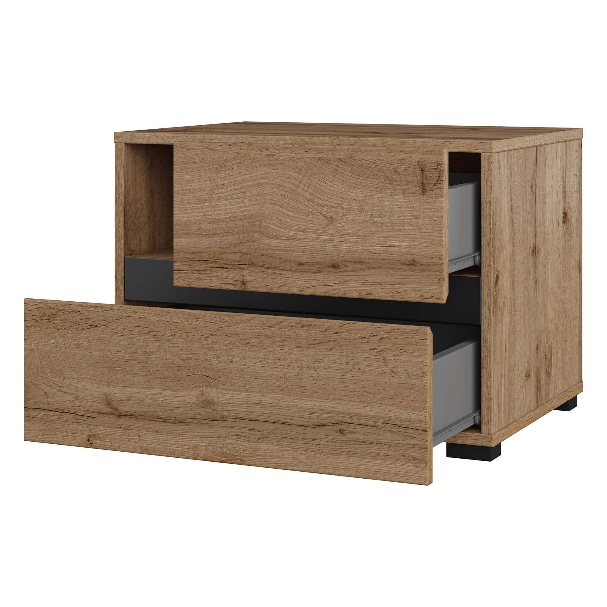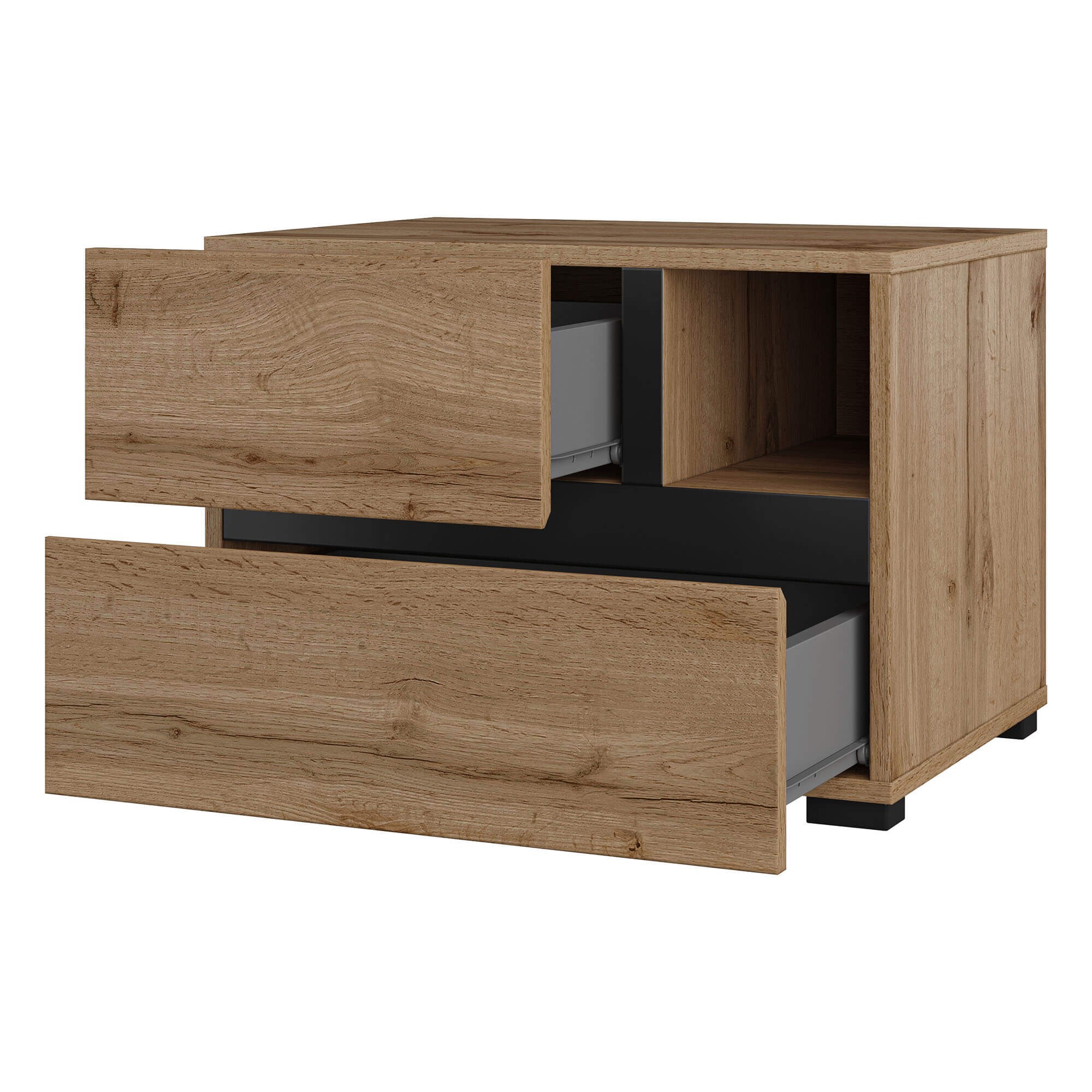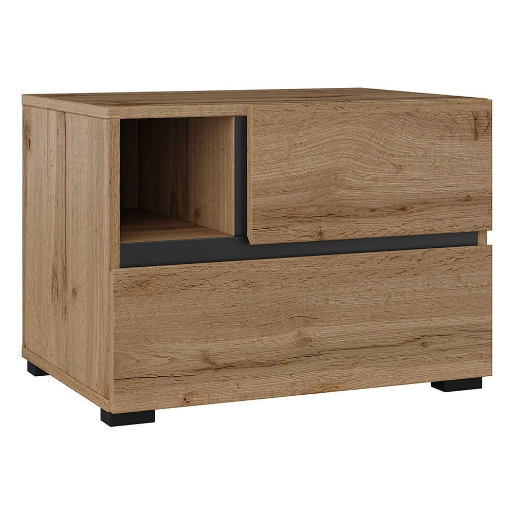 • Fronty w modnym wykończeniu dąb wotan podkreślające nowoczesny styl mebla.