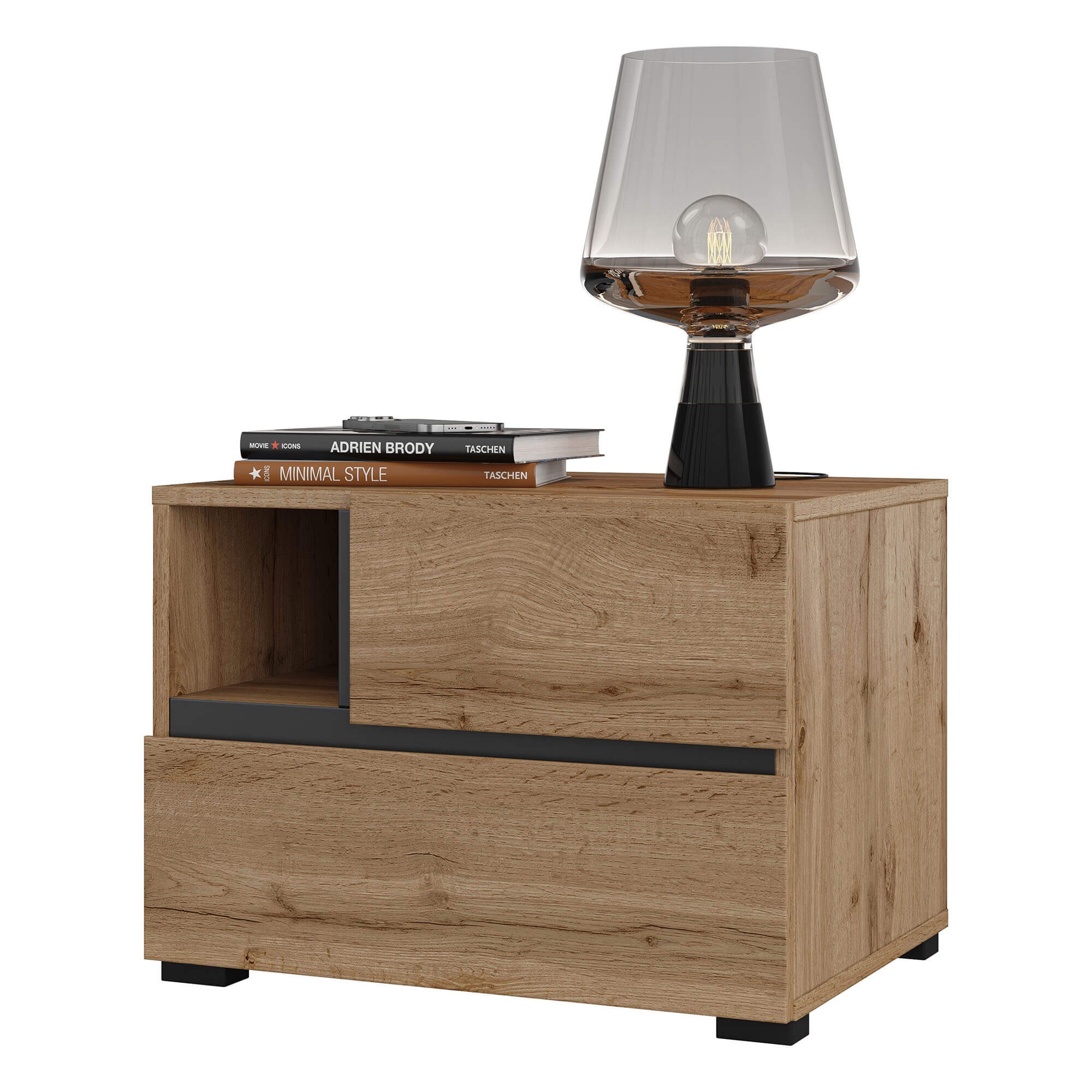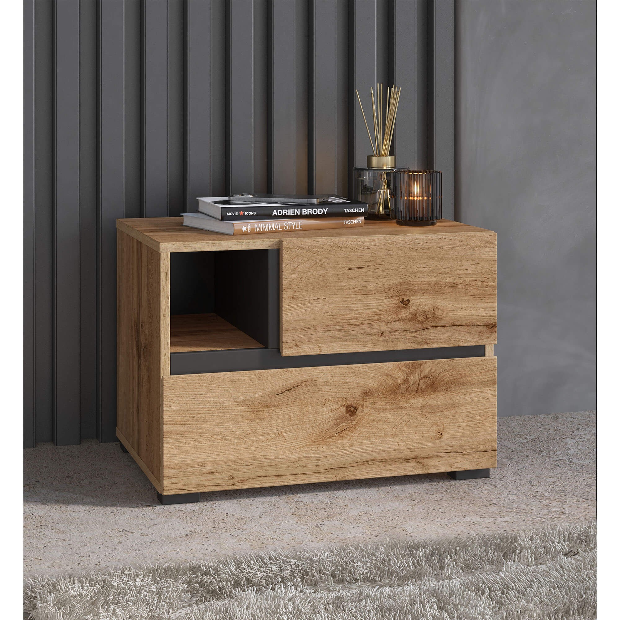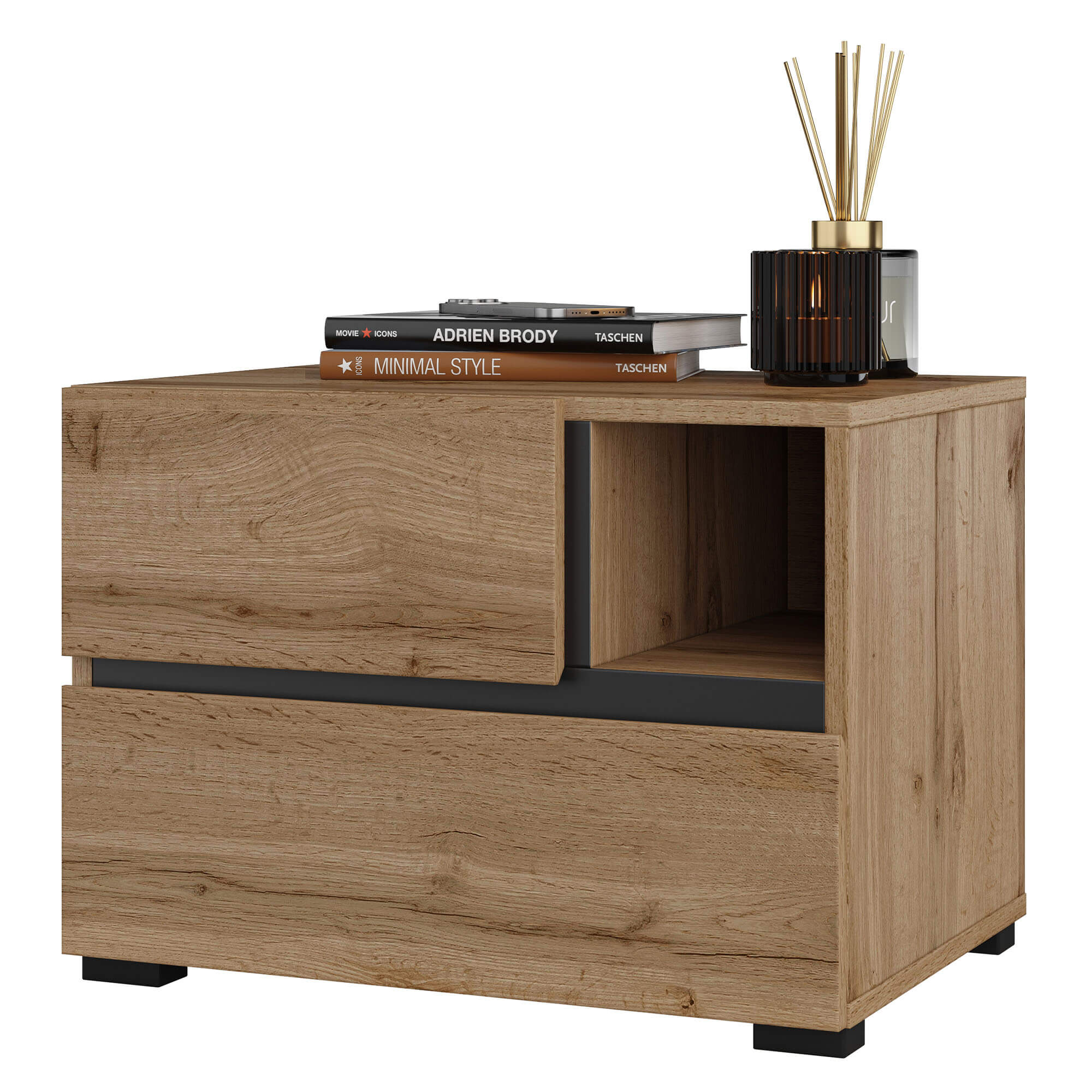 • Fronty w modnym wykończeniu dąb wotan podkreślające nowoczesny styl mebla.