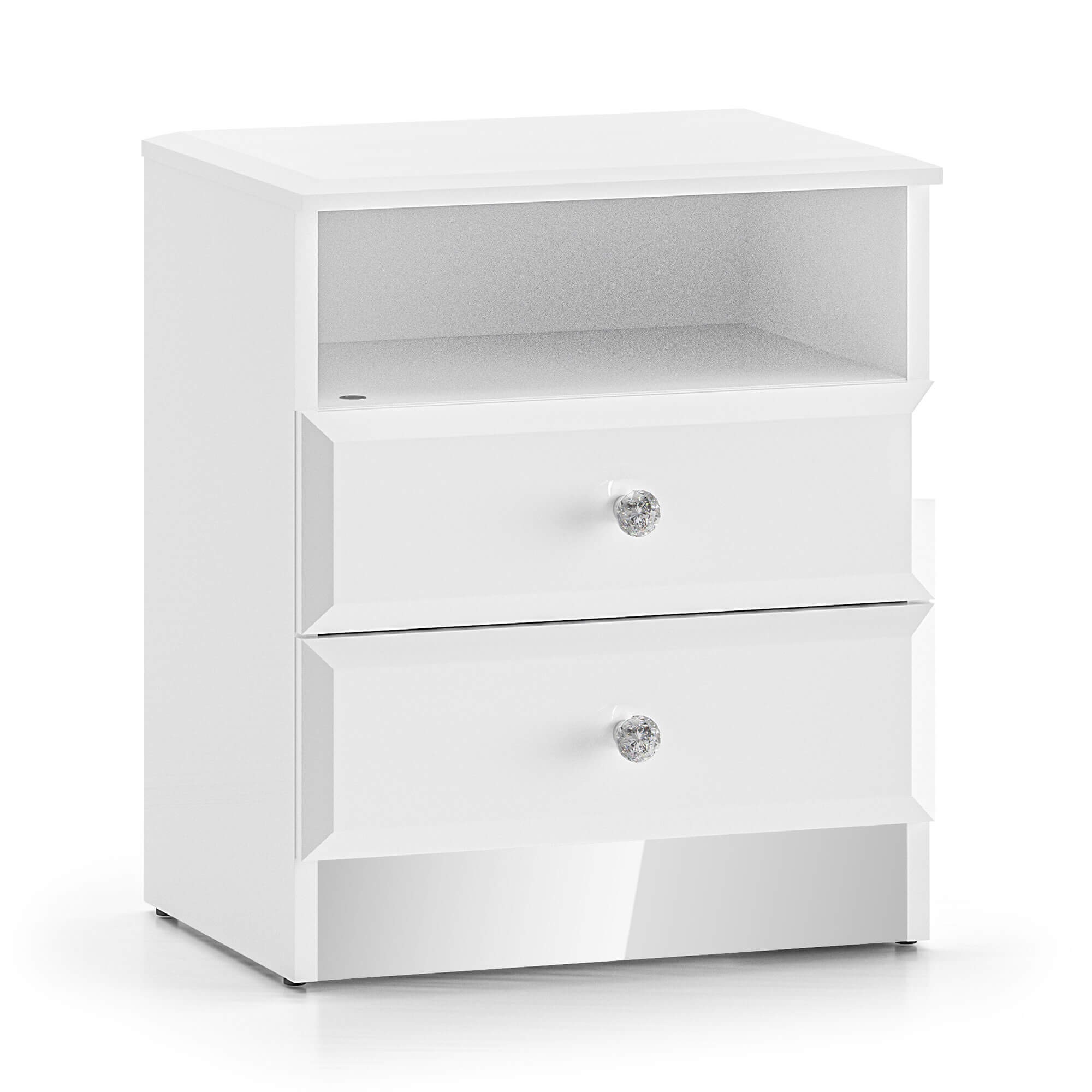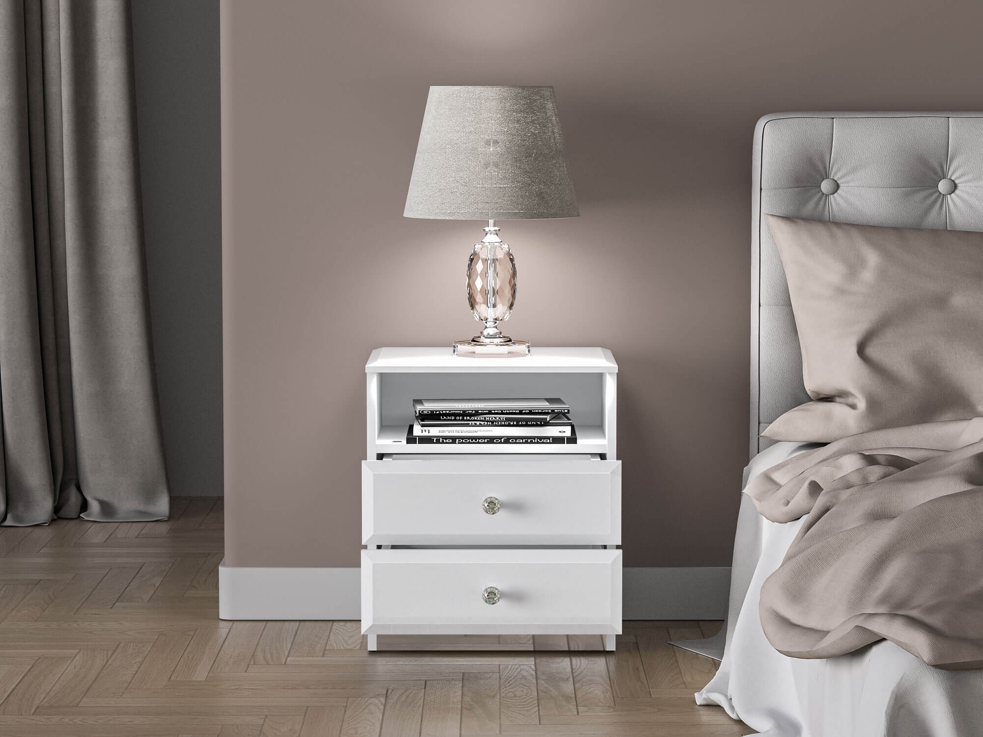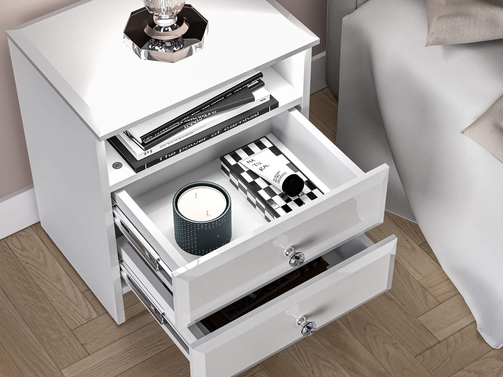 Szafka nocna z oświetleniem LED GLAMOUR 04 | Biały połysk