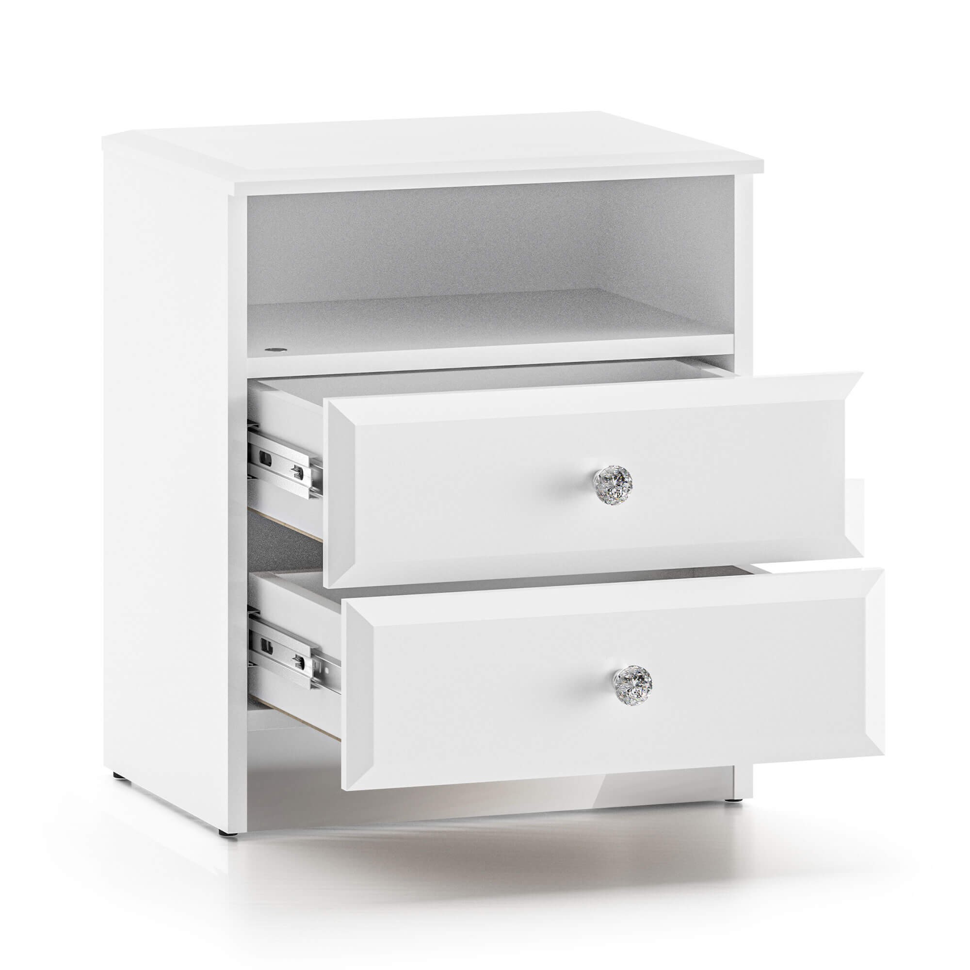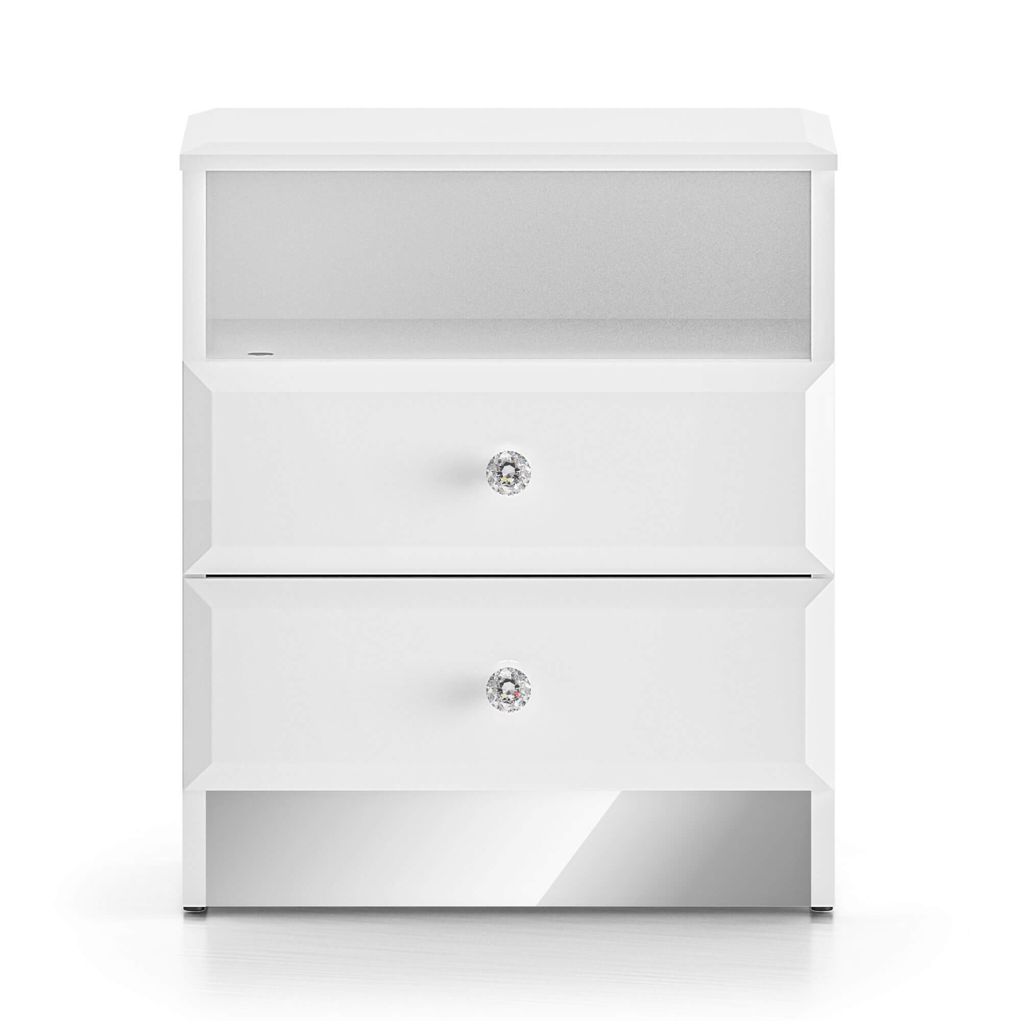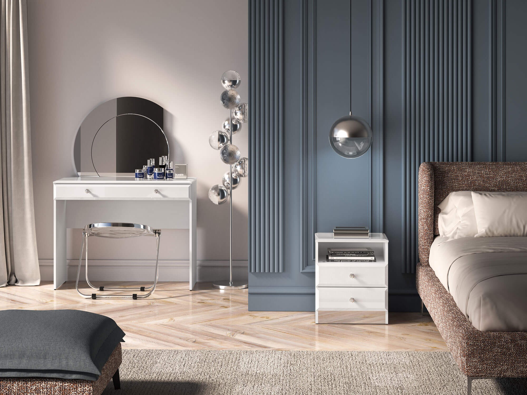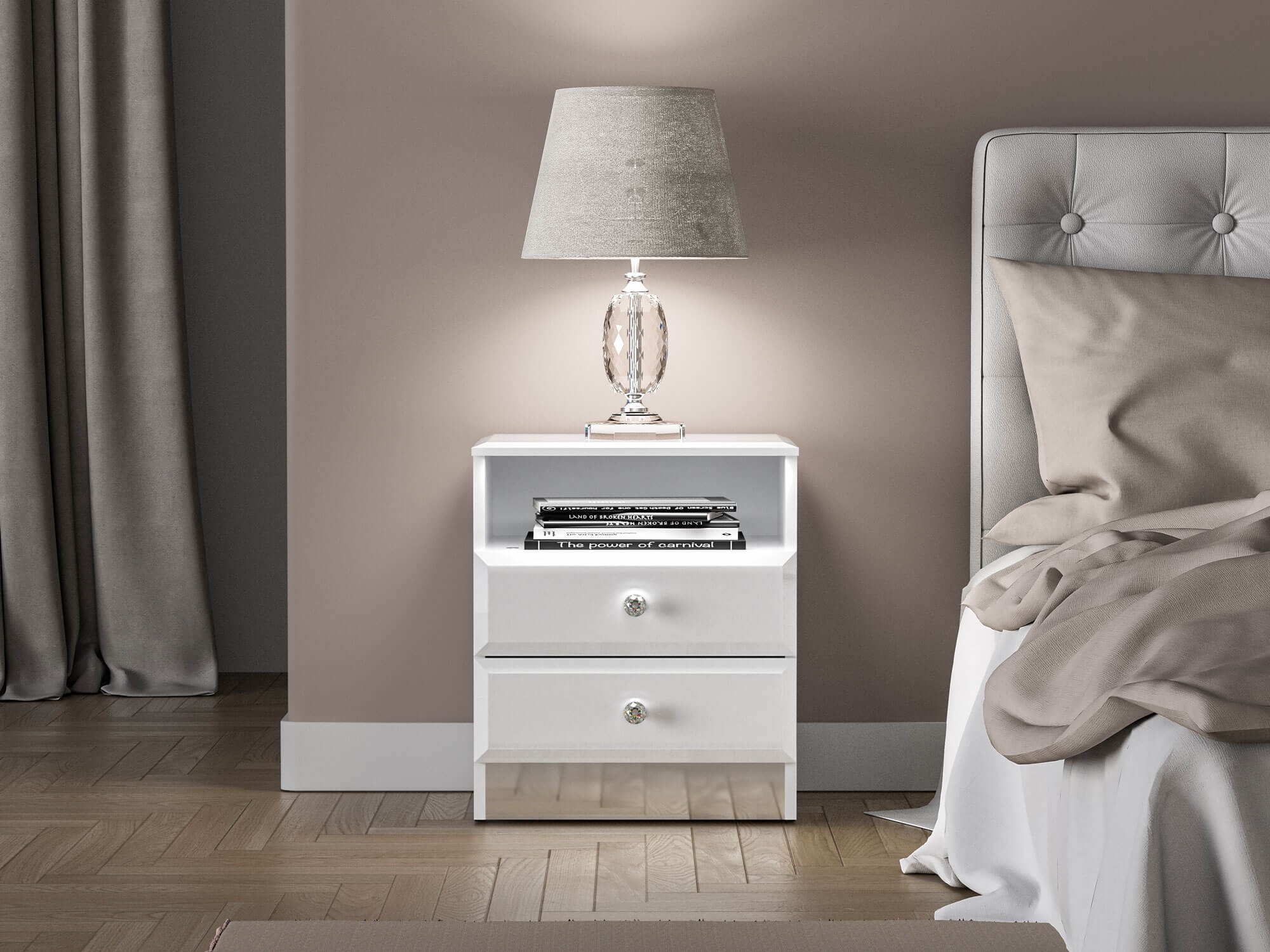 Szafka nocna z oświetleniem LED GLAMOUR 04 | Biały połysk