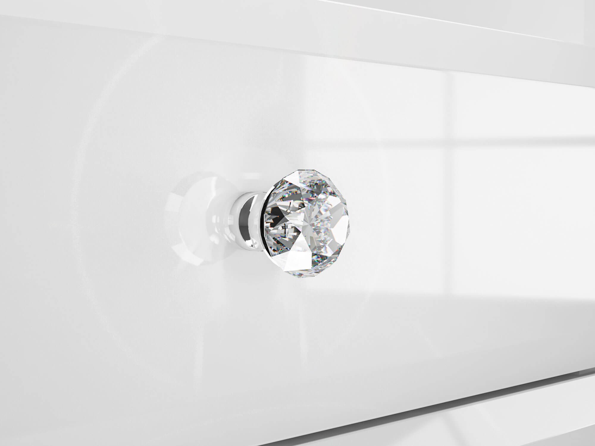 | Kolor: | Front: Biały połysk Korpus: Biały alpejski + MDF biały połysk Lustrzany cokół: MDF Metal chromowany |