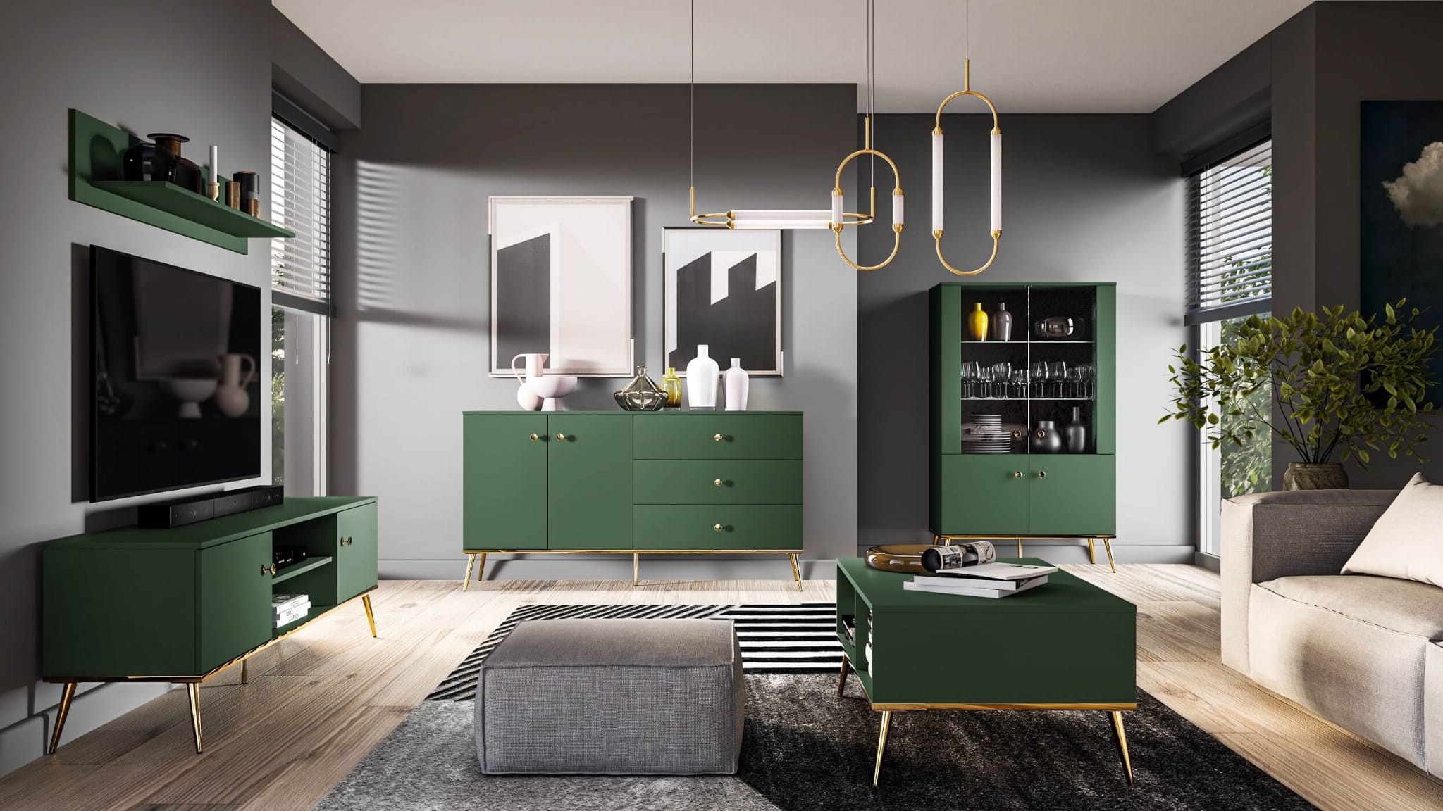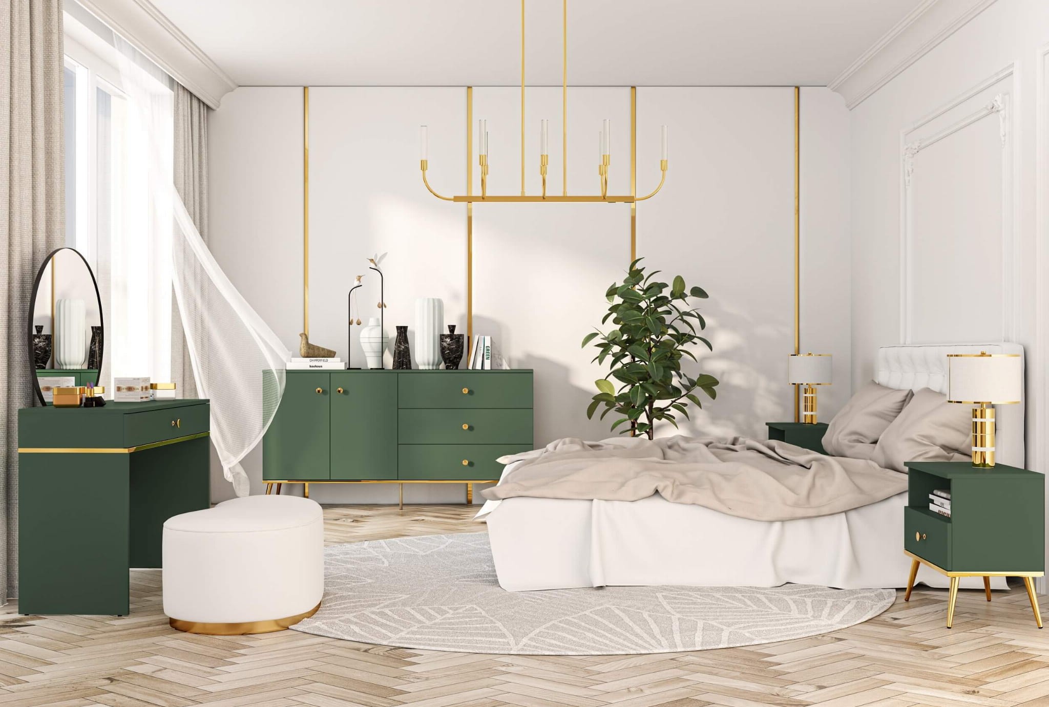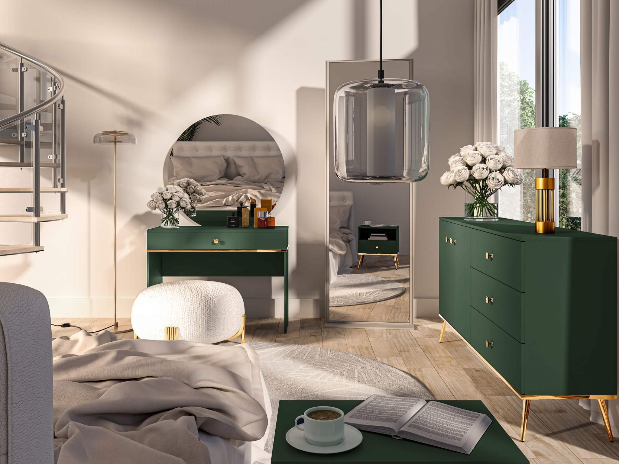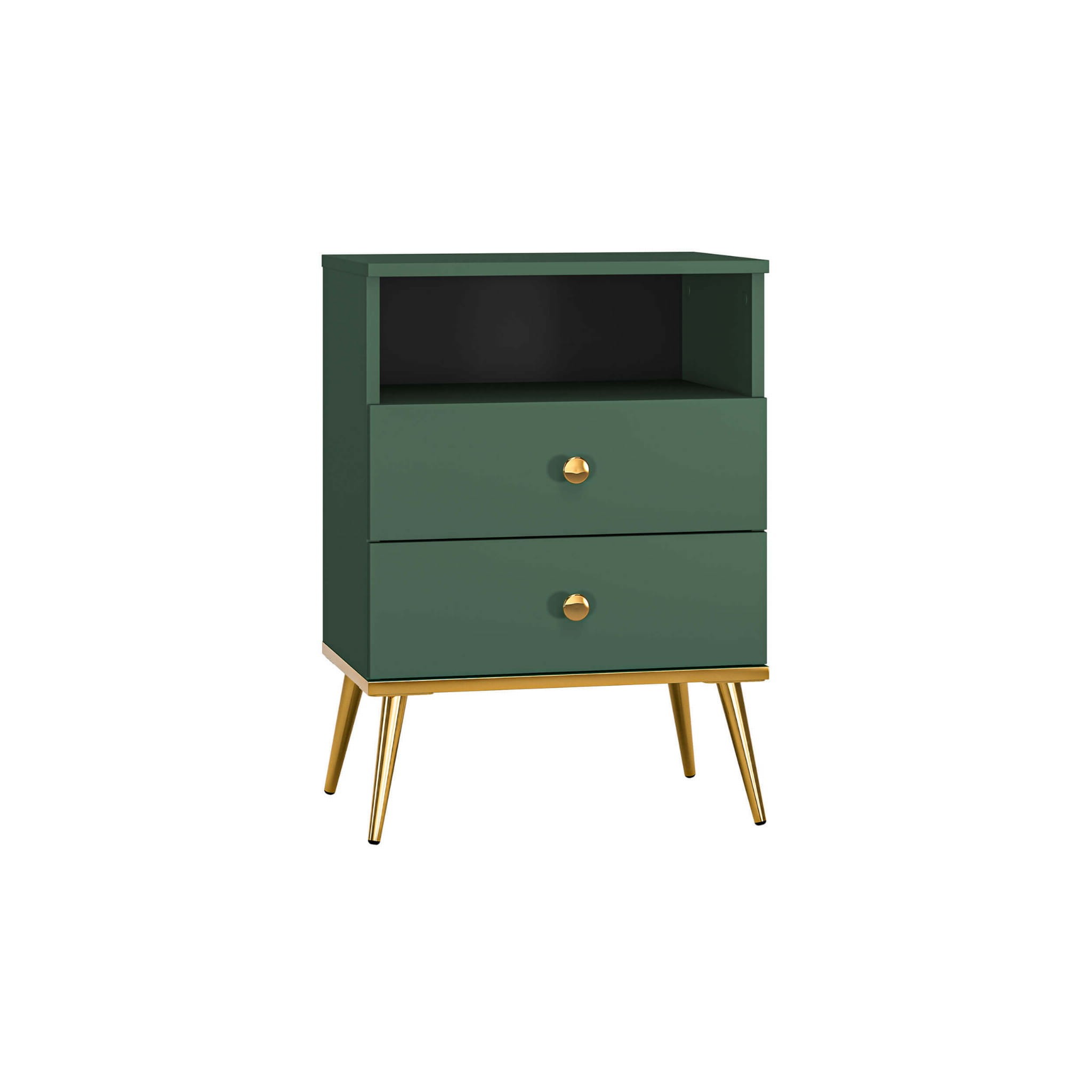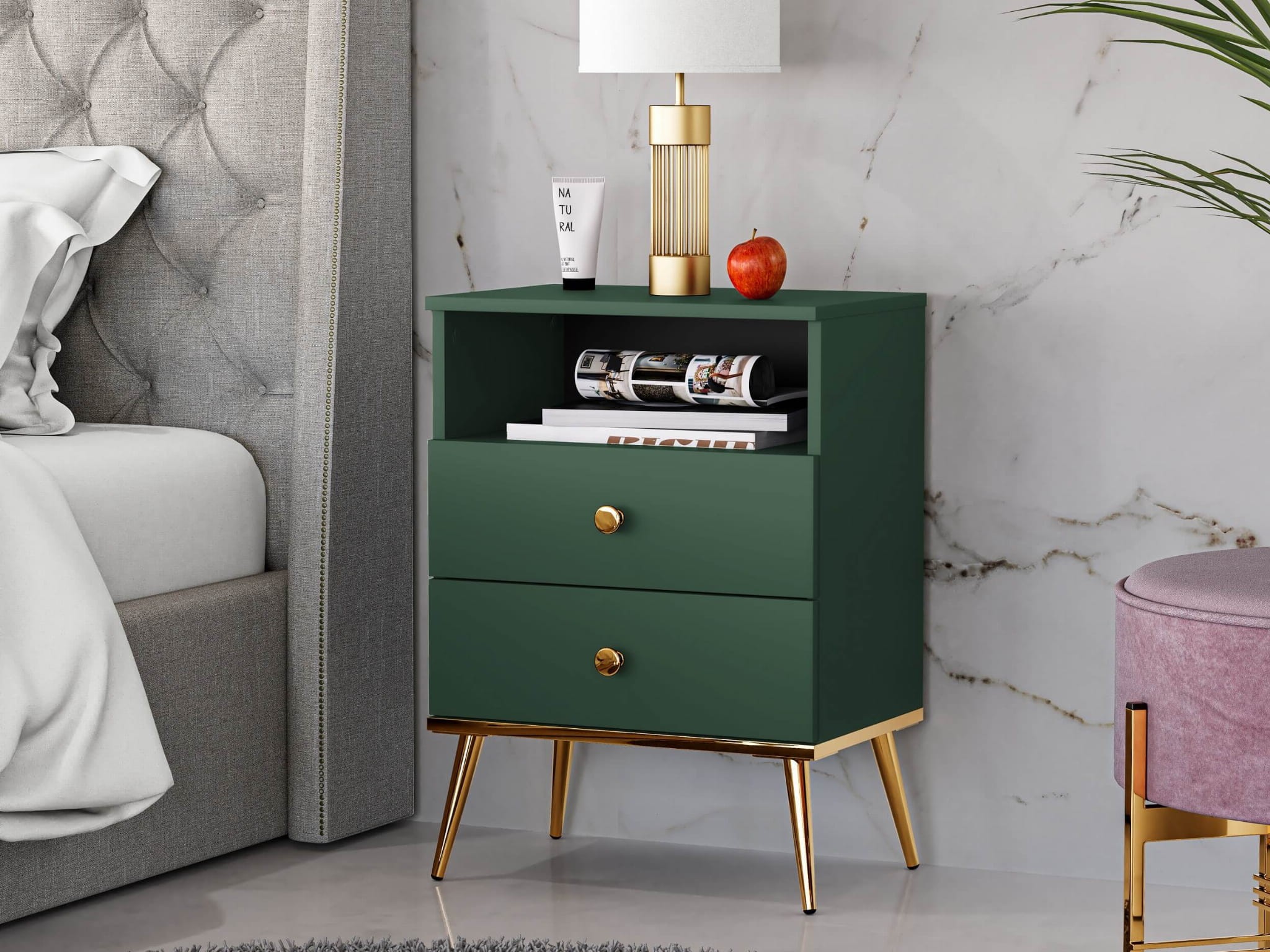 Szafka nocna z szufladami FOREST 10 | Zielony, złoty