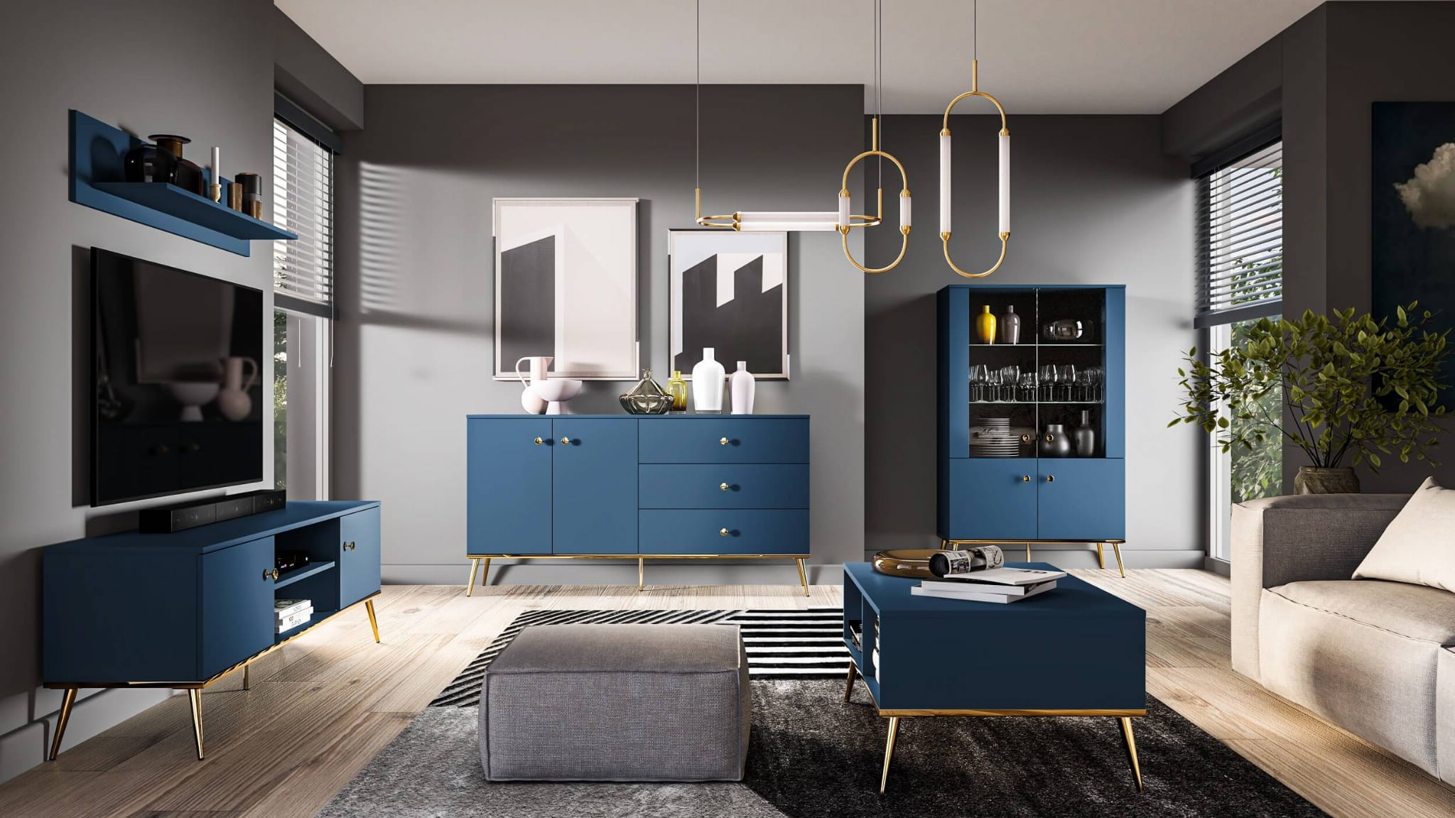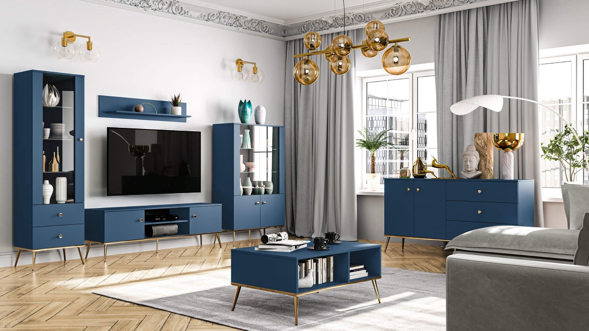 Niezwykle funkcjonalna, nowoczesna szafka nocna z akcentami Glamour! MARINE to ekskluzywne zestawienie granatu i złota – takie połączenie gwarantuje niepowtarzalny efekt pełen blasku. Wyraziste kolory ożywią aranżację i dodadzą nutki Glamour. Metalowy uchwyty w kolorze biżuteryjnego złota dodają prestiżowego charakteru, a uniesiona konstrukcja daje wrażenie lekkości i zgrabności. Pozwala także skutecznie wyczyścić przestrzeń pod meblem i pozbyć się kurzu. 2 szufladki na prowadnicach w pełnym wysuwie umożliwiają wygodne przechowywanie drobiazgów i łatwy dostęp do wszystkich przedmiotów.