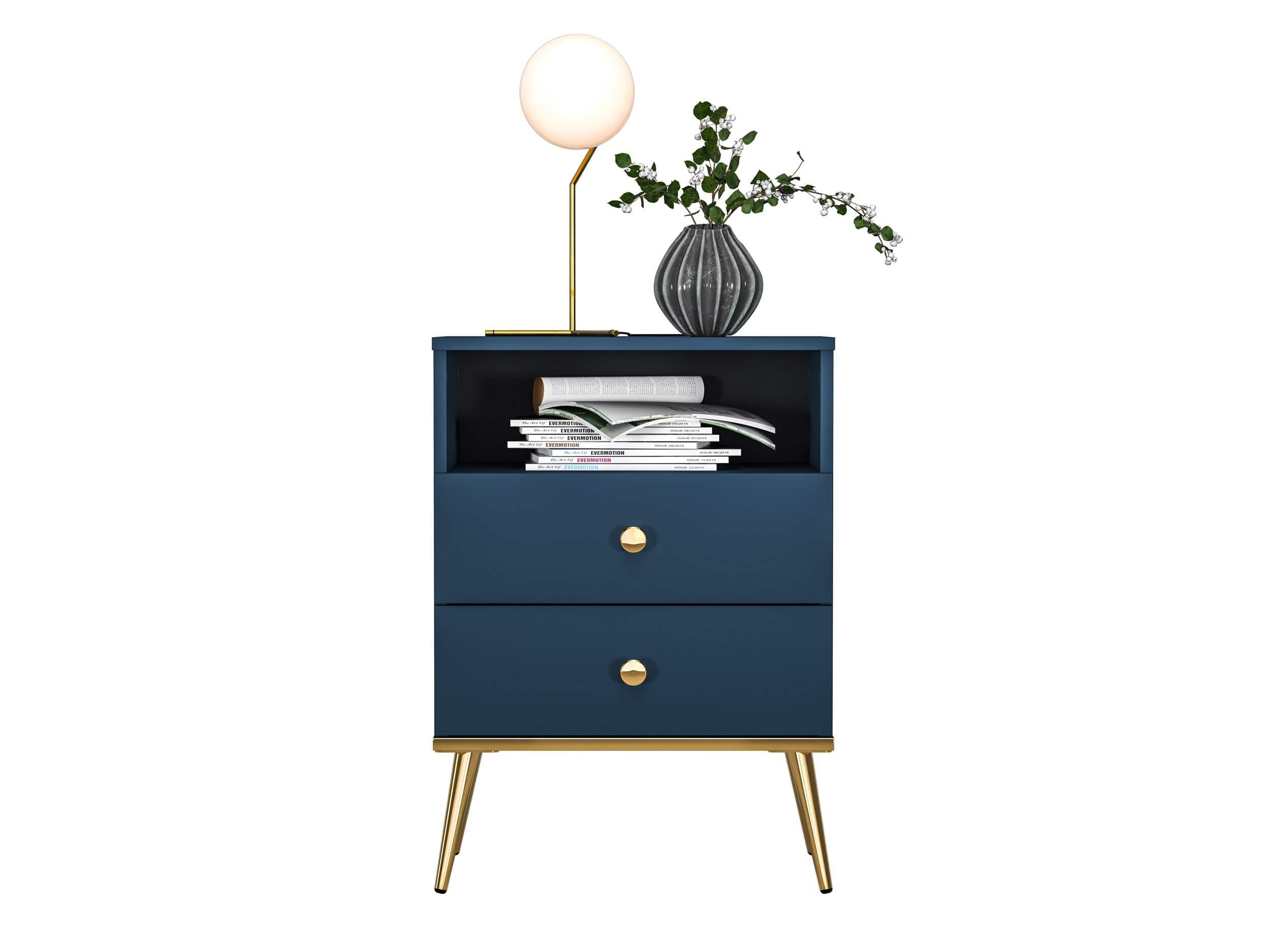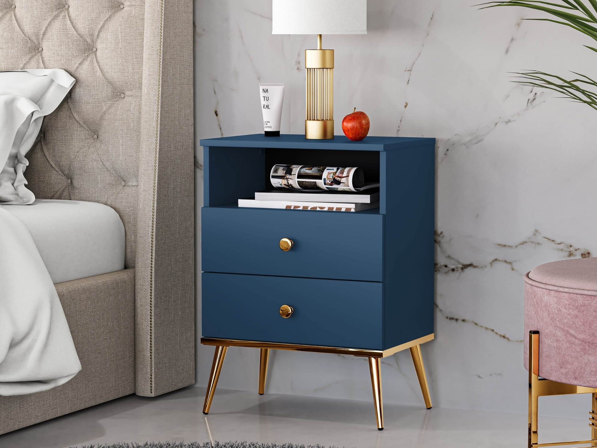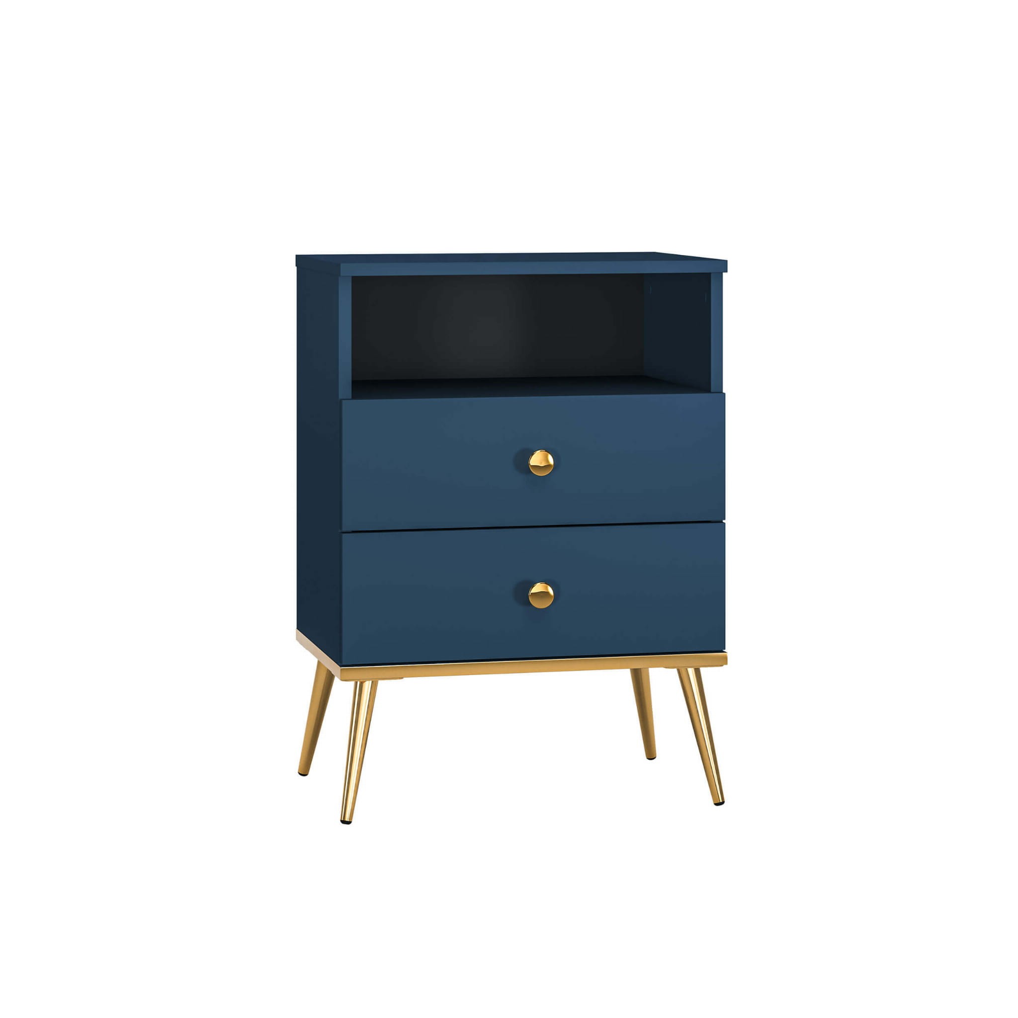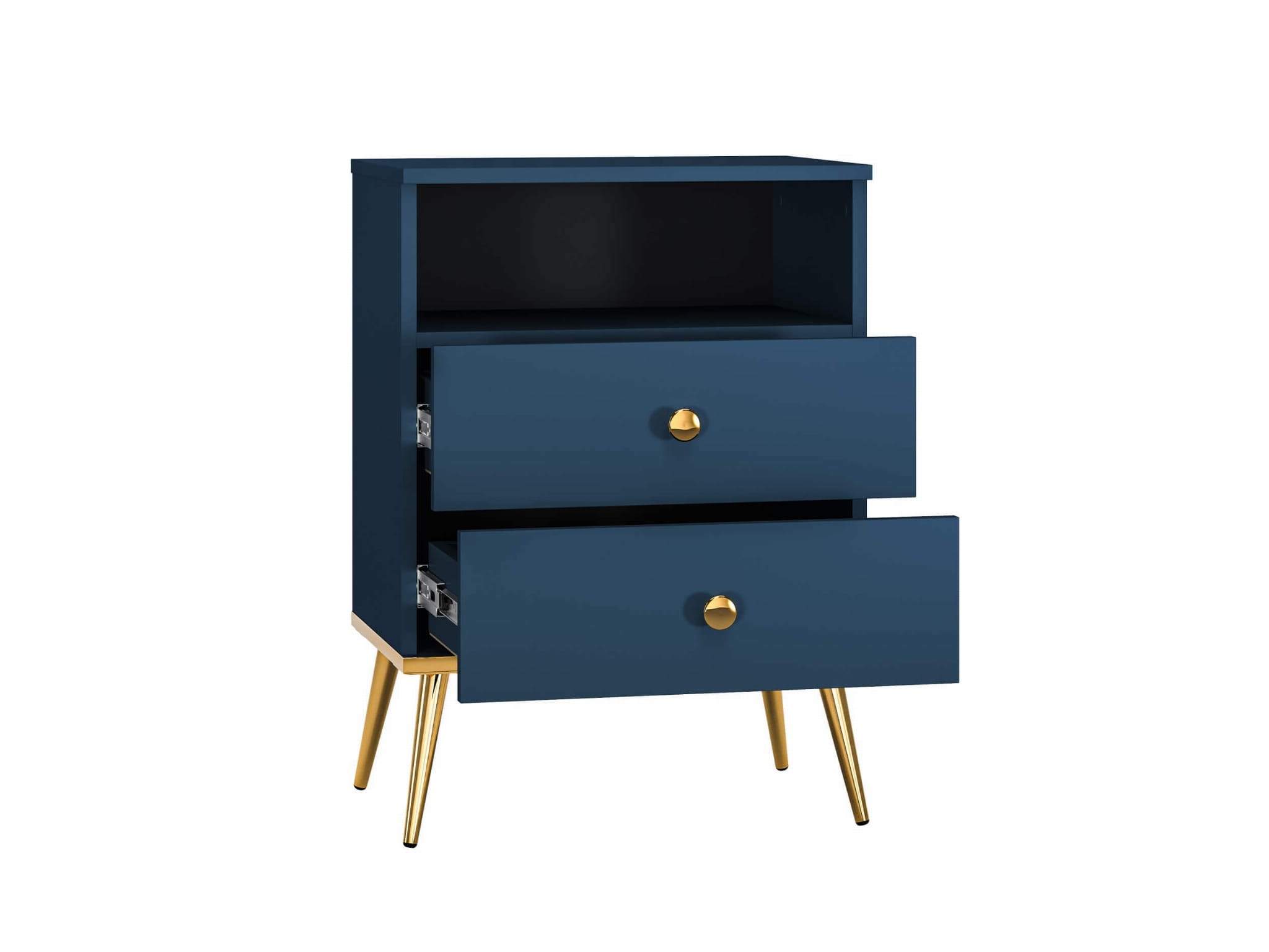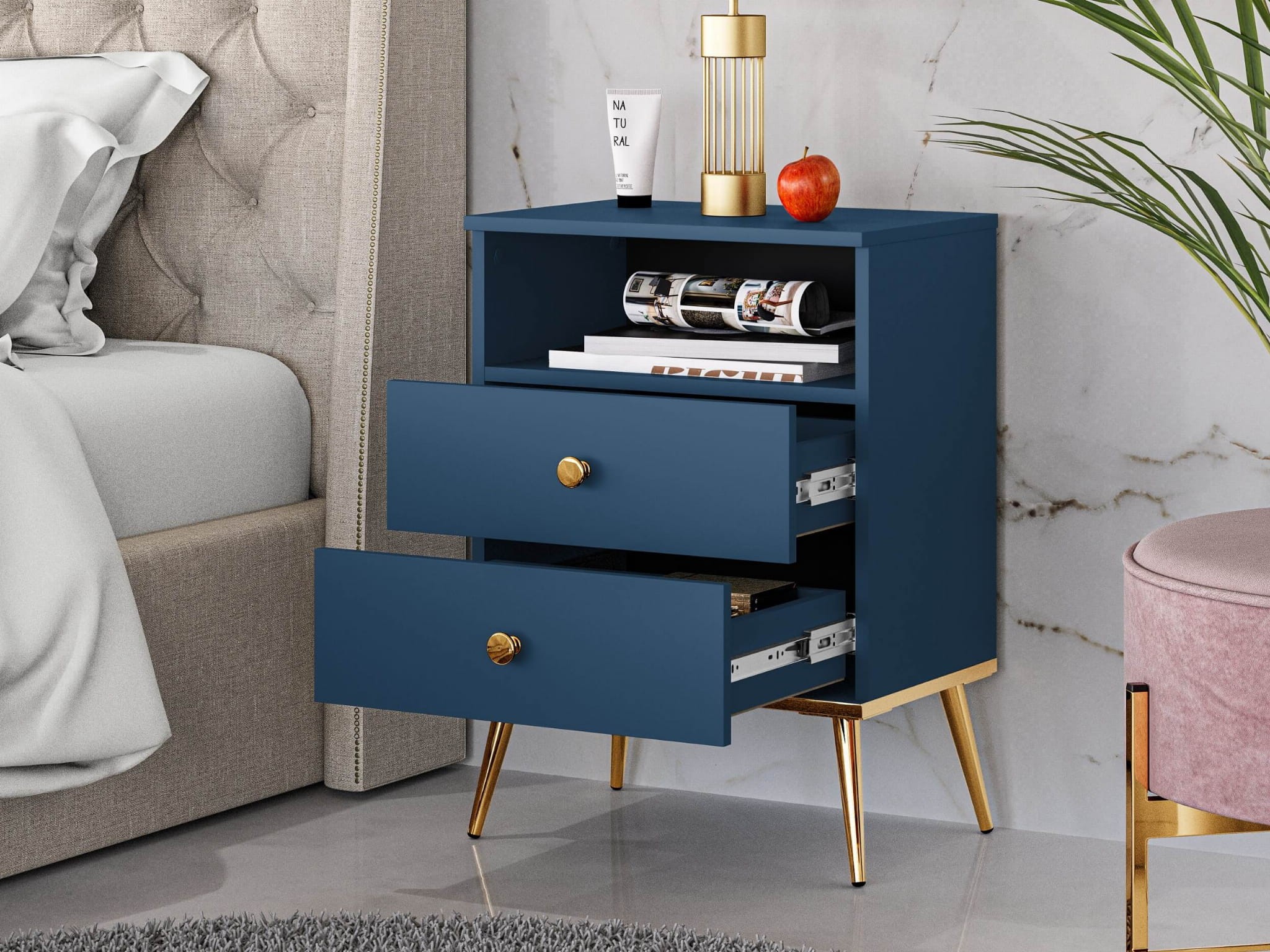 Granatowa szafka nocna Glamour – 2 szuflady, złote nóżki