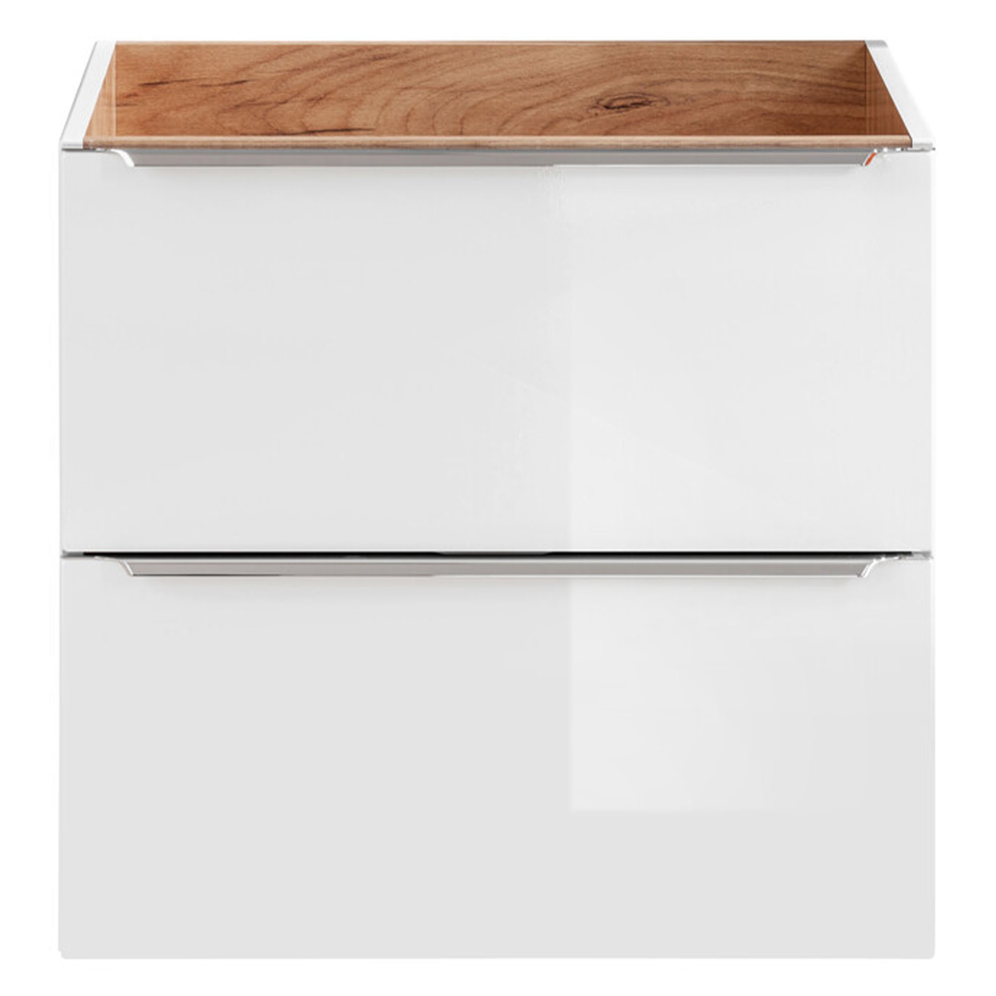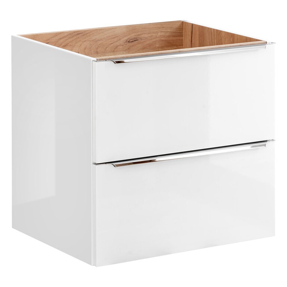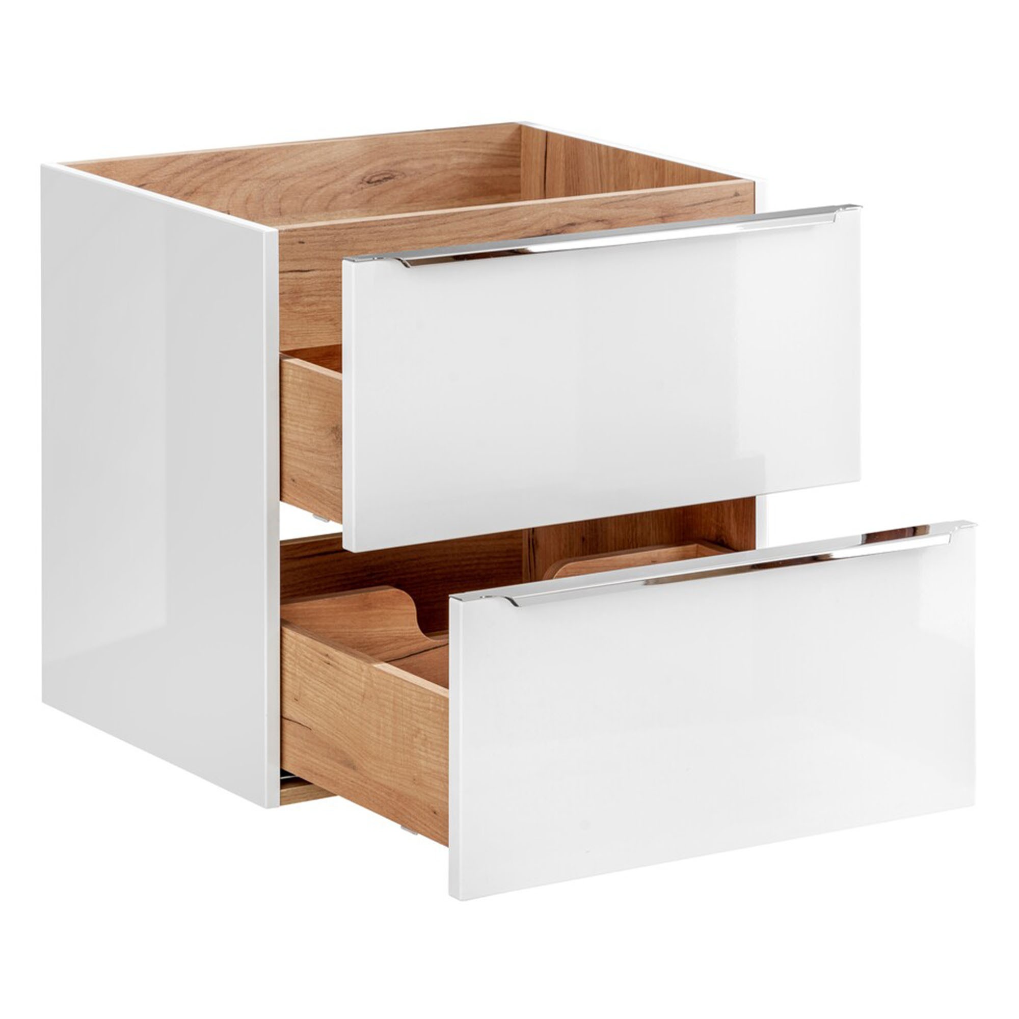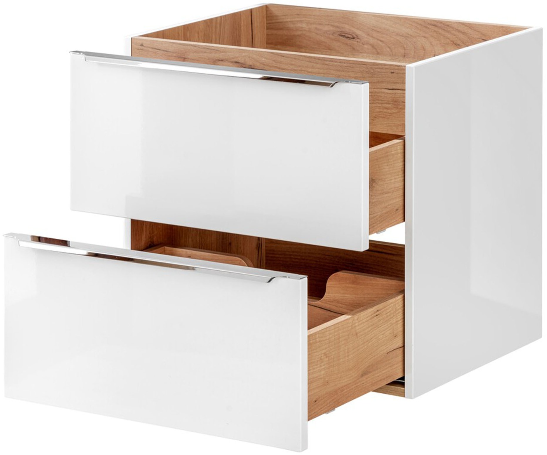 Szafka pod umywalkę 60cm 2 szuflady | Kolekcja Capri White | Biały Połysk, Dąb Złoty Craft