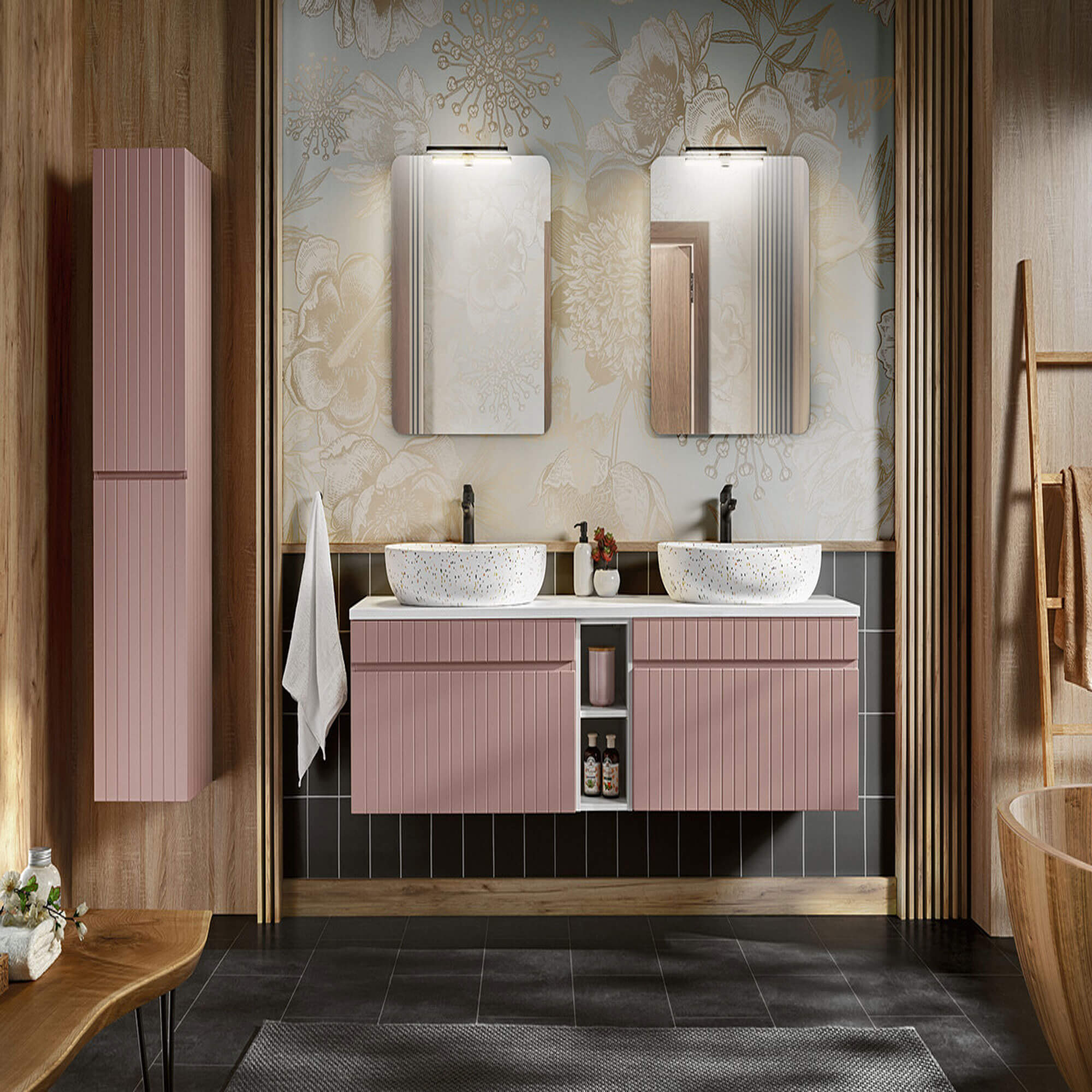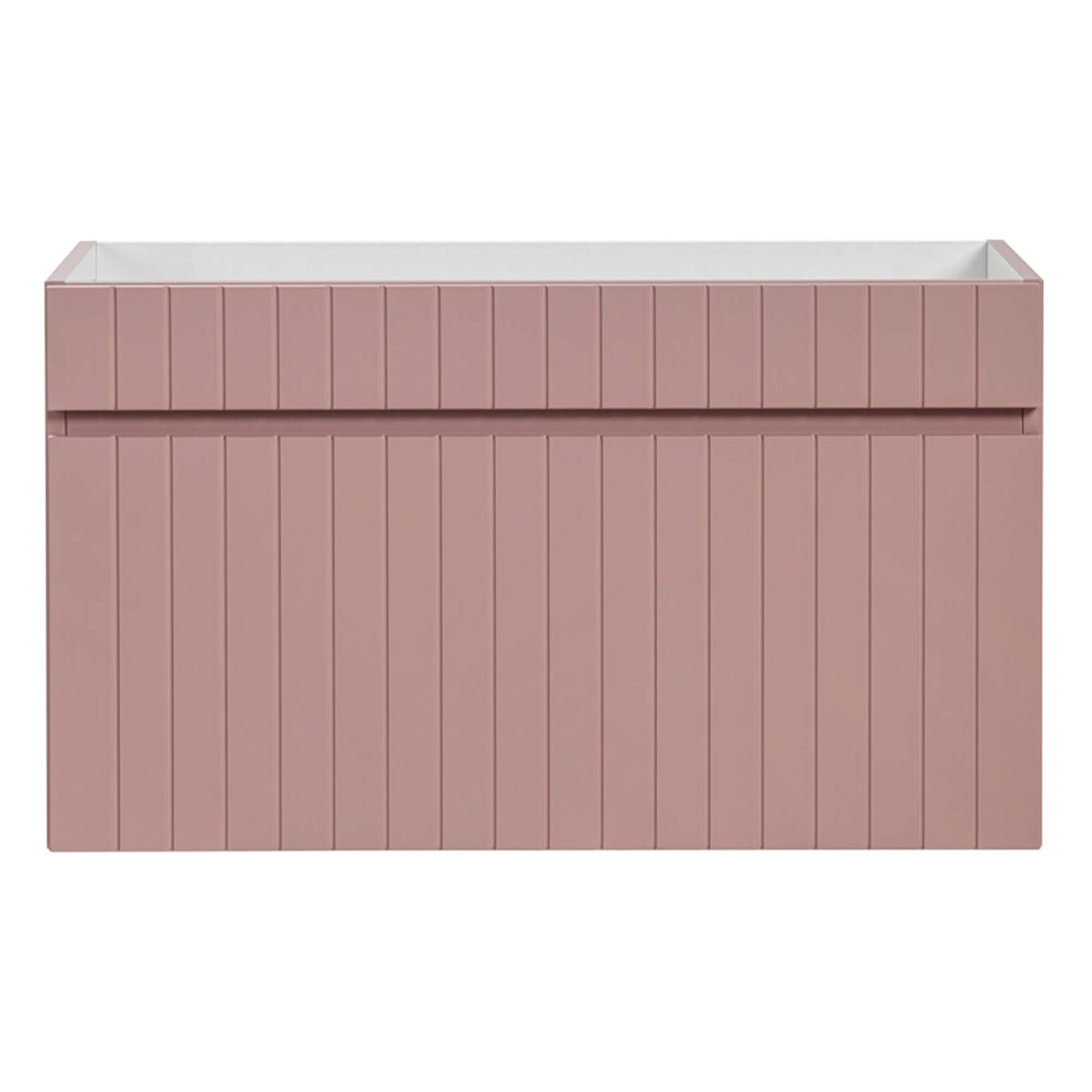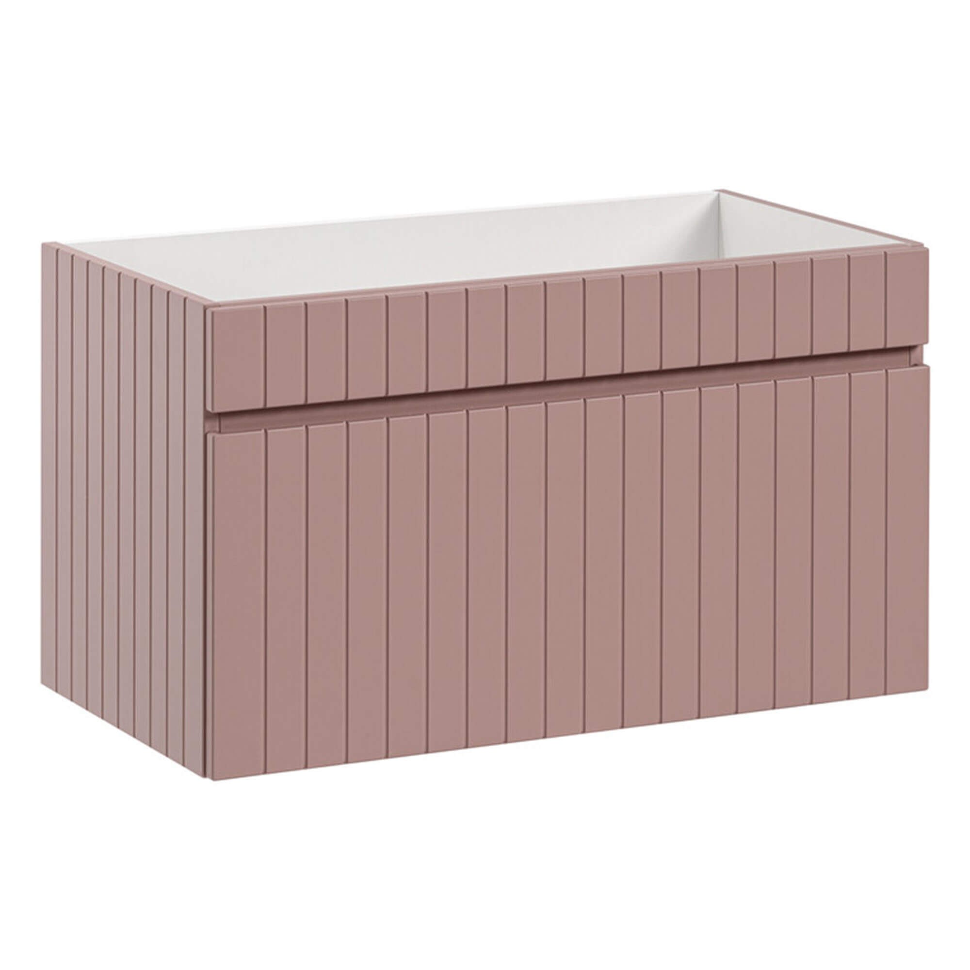 Szafka pod umywalkę 80 cm z jedną szufladą z kolekcji Iconic Rose to propozycja stworzona z myślą o nowoczesnych łazienkach, w których liczy się zarówno styl, jak i funkcjonalność. Jej wyrazisty design przyciąga uwagę dzięki dekoracyjnym frontom z frezowanymi, pionowymi ryflami, które dodają meblowi elegancji i subtelnej dynamiki. Całość utrzymana jest w harmonijnej kolorystyce antycznej róży – ciepłym, przytulnym odcieniu, który wprowadza do wnętrza unikalny klimat i nadaje mu ponadczasowego uroku. Szafka została zaprojektowana z dbałością o każdy detal. Korpus i fronty wykonane są z wysokiej jakości materiałów, co gwarantuje trwałość i solidność przez wiele lat użytkowania. Jednolity kolor bryły zapewnia spójną, estetyczną formę, doskonale wpisującą się w nowoczesne aranżacje łazienkowe. Praktyczna szuflada z pełnym dnem to idealne miejsce na przechowywanie codziennych akcesoriów, utrzymując porządek bez kompromisów w komforcie. Obniżona listwa tylna ułatwia instalację niskiego syfonu ściennego, dzięki czemu montaż staje się szybki i wygodny, a brak syfonu w zestawie pozwala na elastyczne dopasowanie rozwiązania do indywidualnych potrzeb. To mebel, który nie tylko dopełnia wygląd łazienki, ale także podnosi jej funkcjonalność. Starannie dopracowane wykończenie, nowoczesna forma i elegancki kolor sprawiają, że szafka z kolekcji Iconic Rose to doskonały wybór dla osób poszukujących luksusu w codziennym użytkowaniu. Wybierz szafkę pod umywalkę w kolorze antycznej róży i wprowadź do swojej łazienki wyjątkowy styl i ponadczasową klasę.